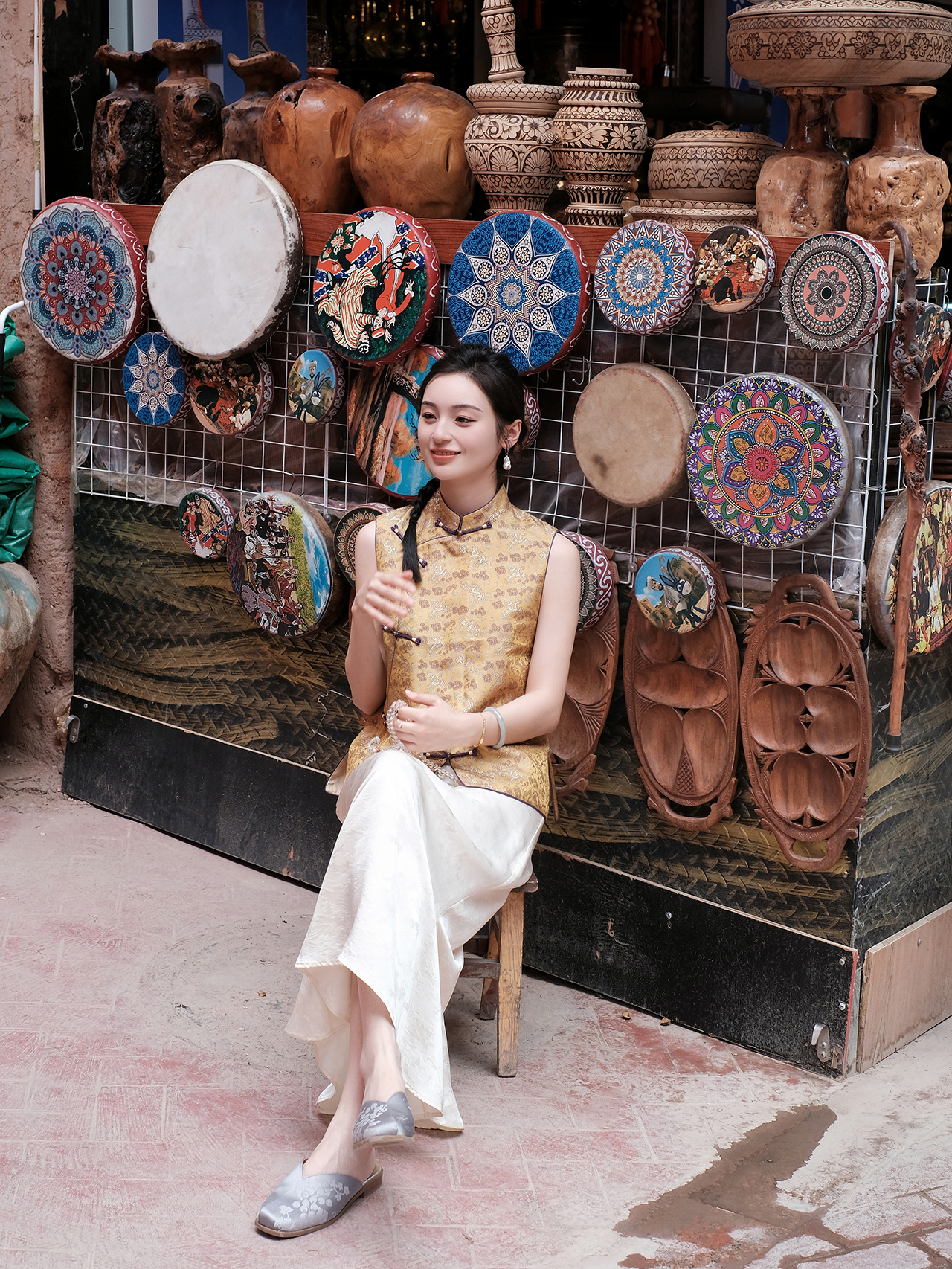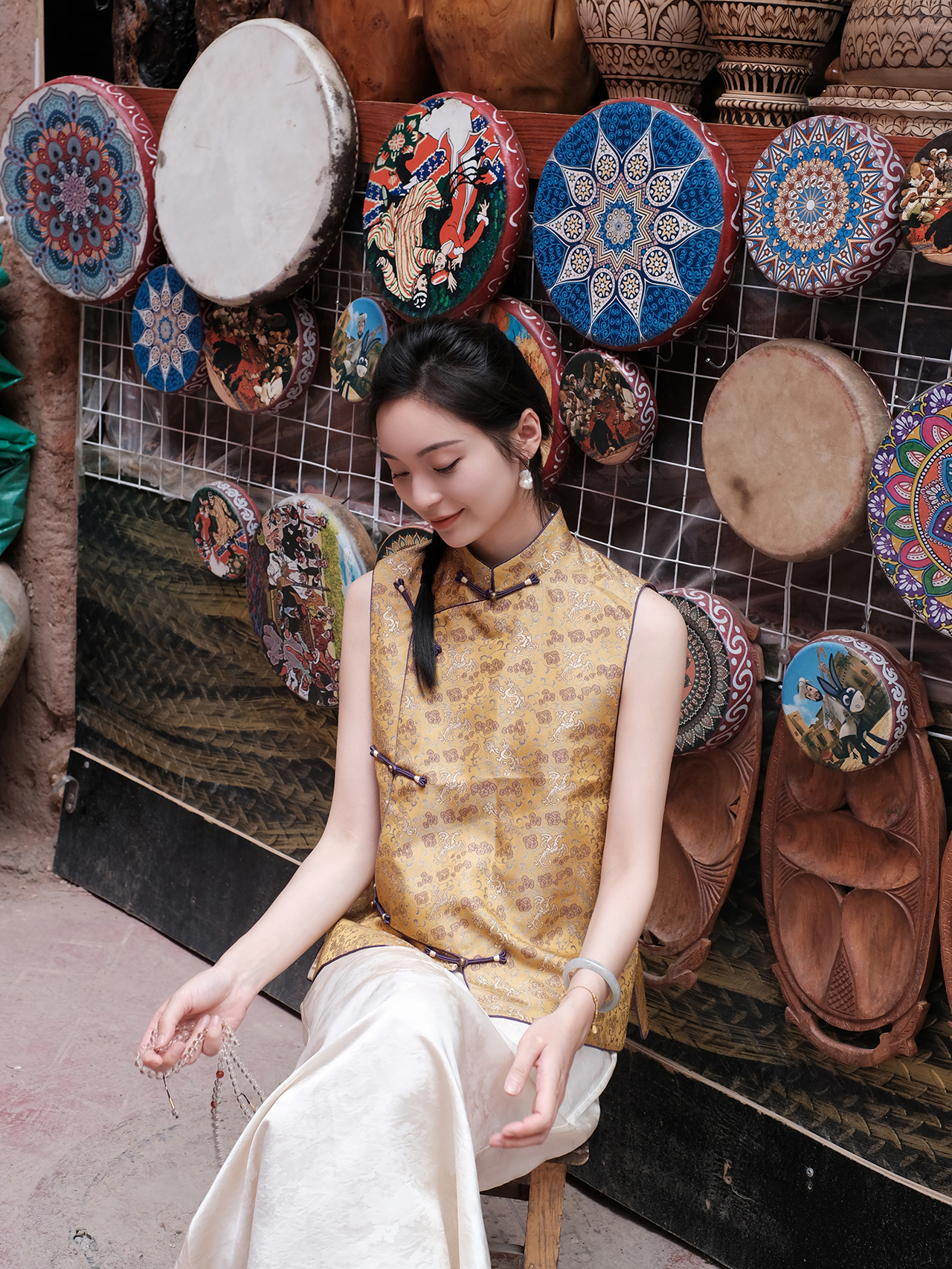 盛唐牡丹盛奢系列| 限量款| 高货-宋锦祥云龙纹偏襟坎肩(特殊商品不退不换)