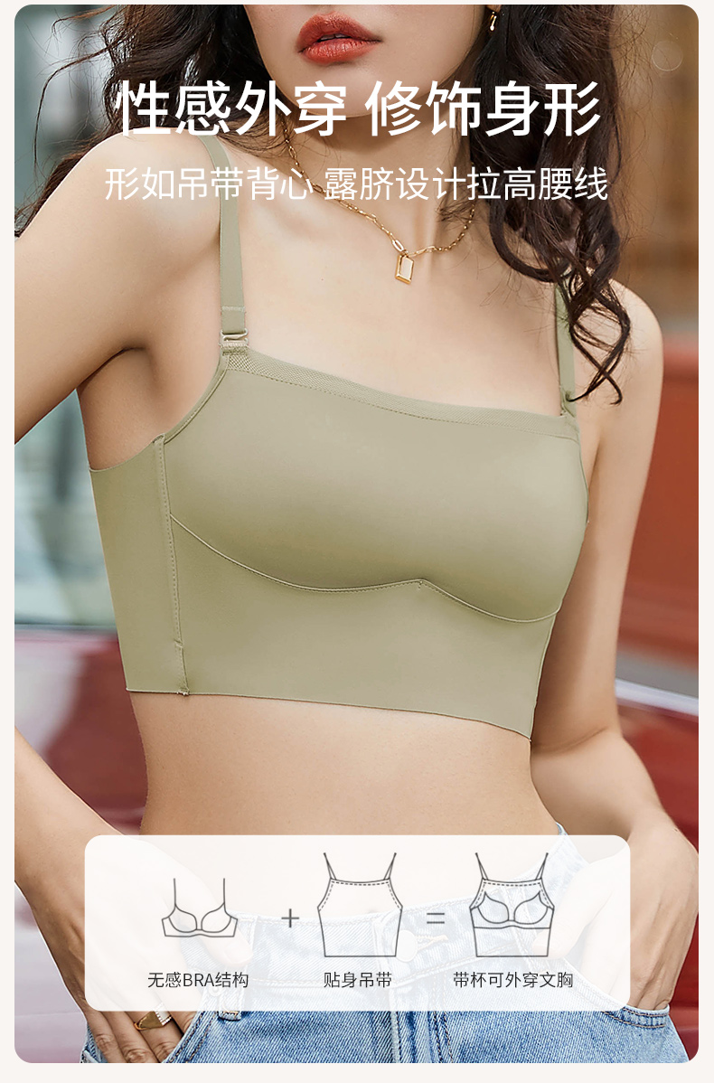 雅黛丽内衣女小胸聚拢抹胸式美背背心文胸一体无钢圈夏季薄款胸罩