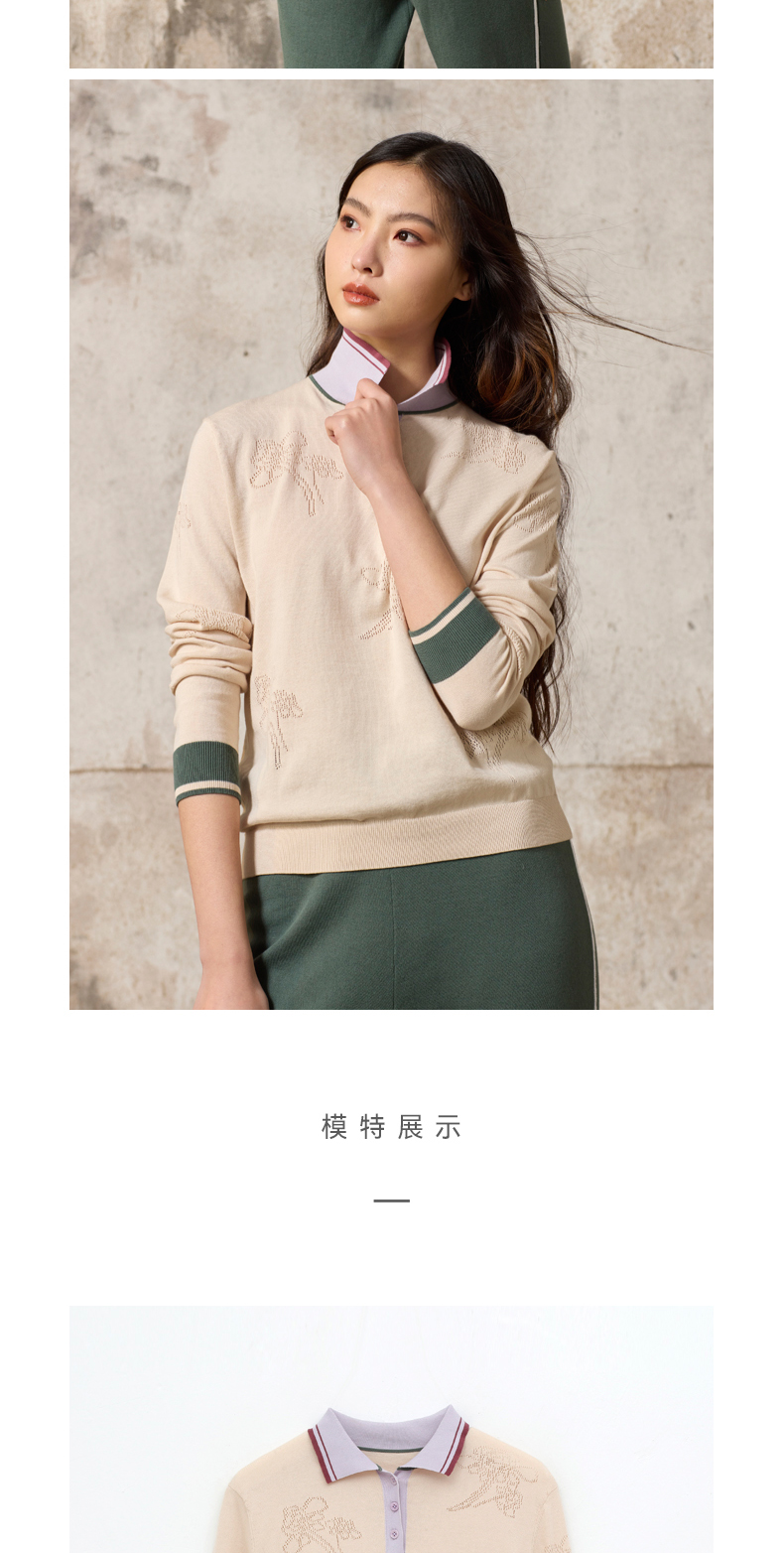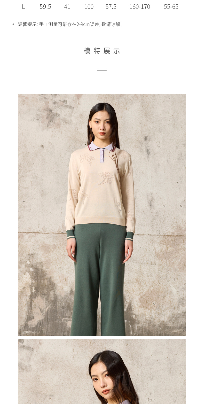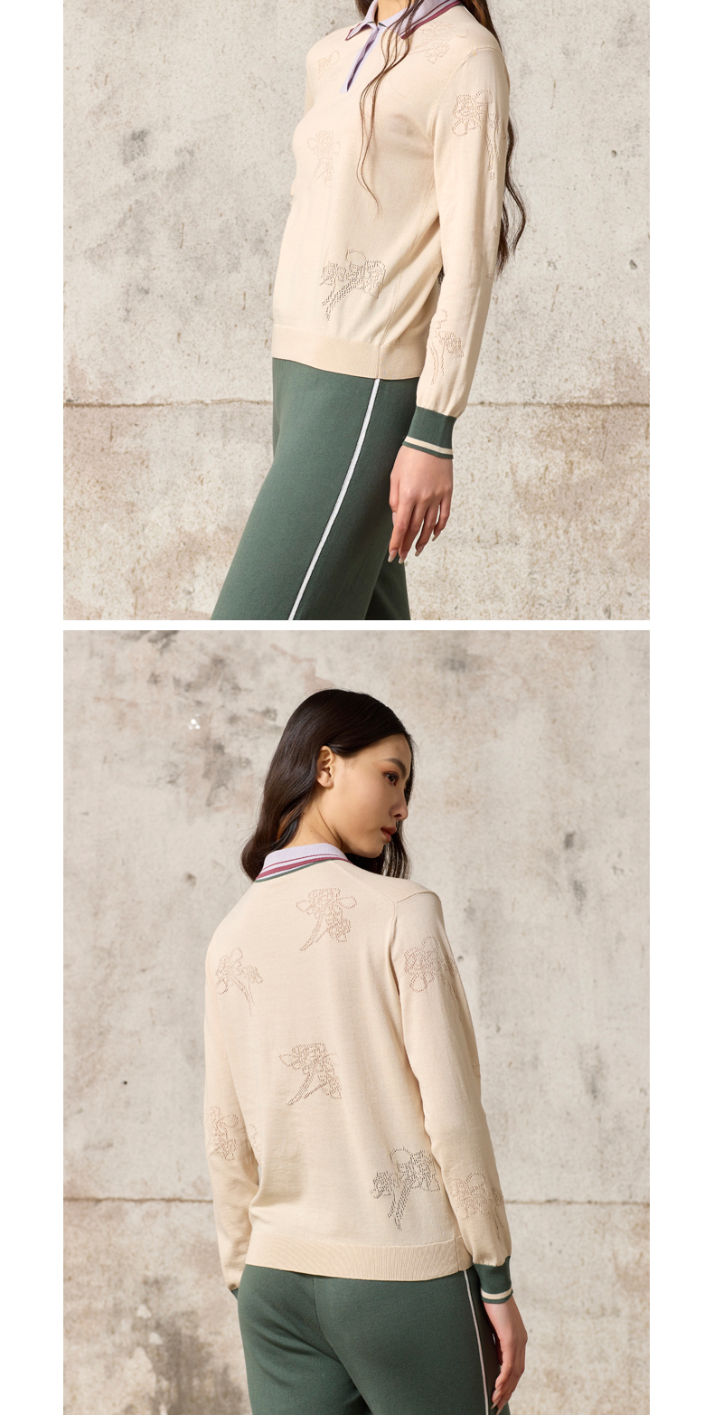 双翻领手工绣花羊绒女套衫 SJF93W419N