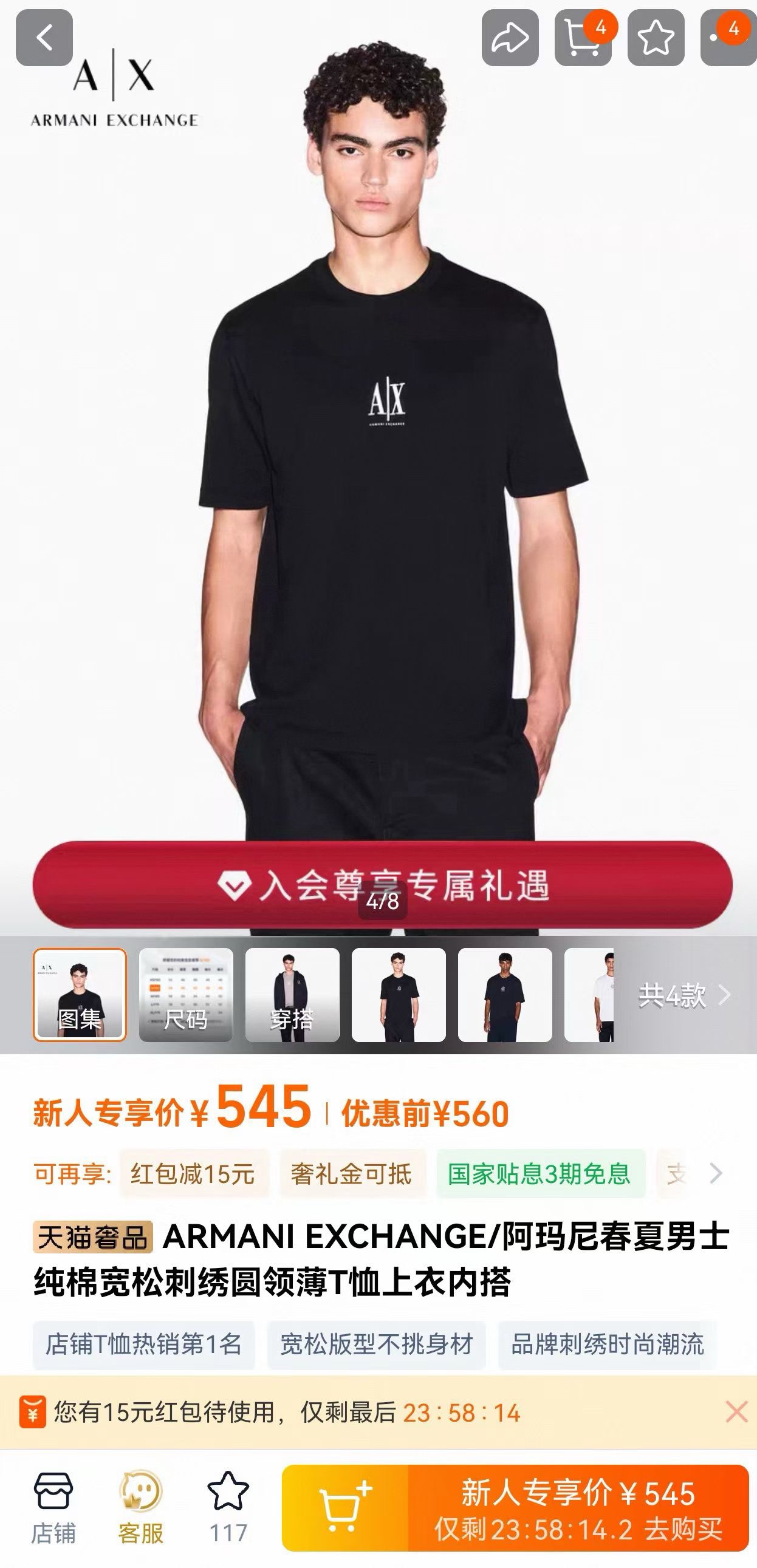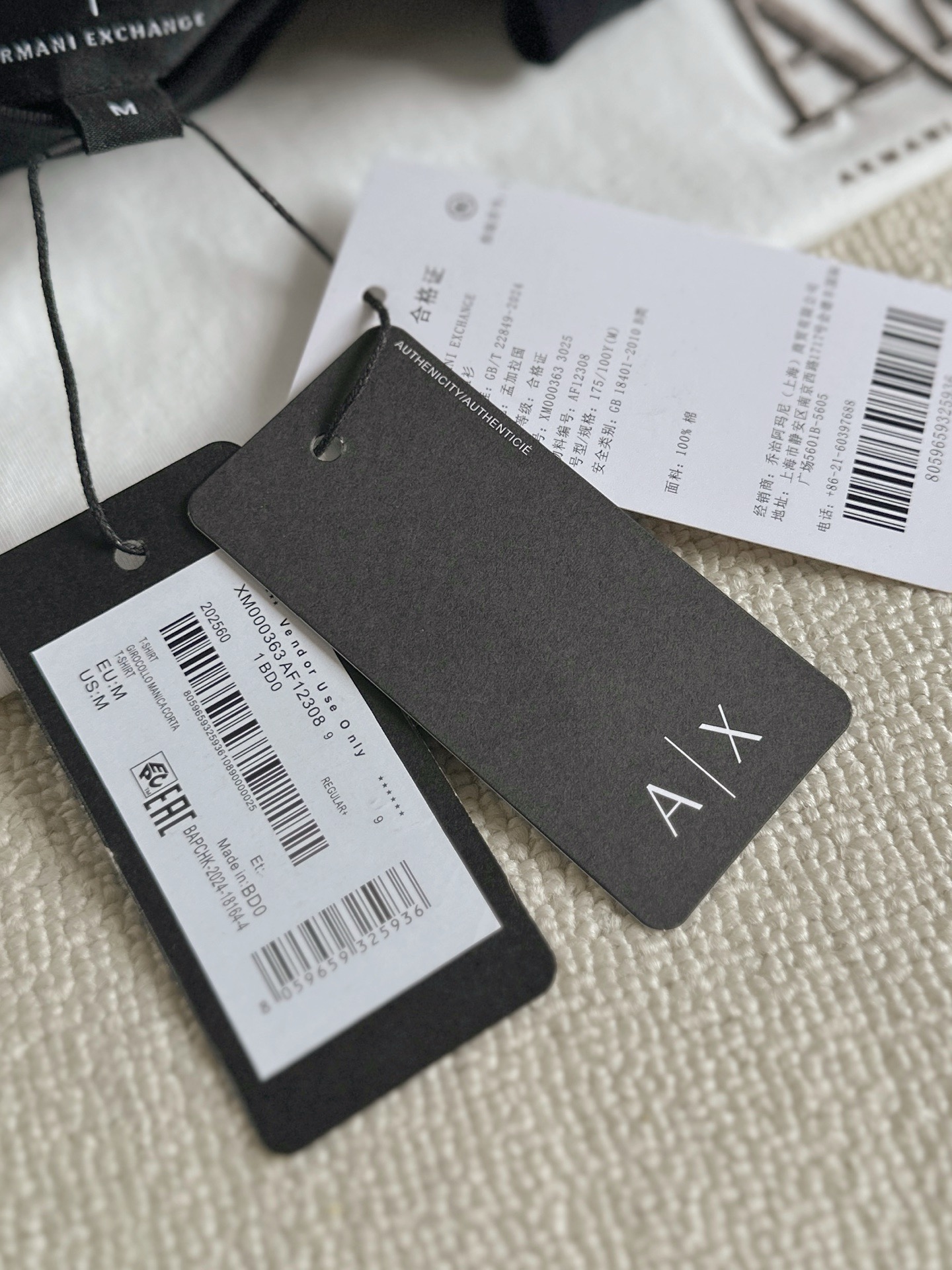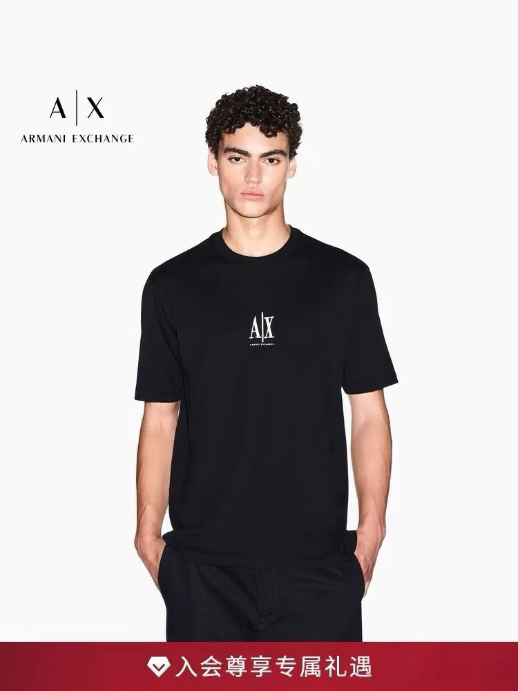 爆款来袭,2026专柜限定礼盒装!ARMANI EXCHANGE/系列阿玛尼春夏男士纯棉宽松刺绣圆领薄T恤上衣内搭。