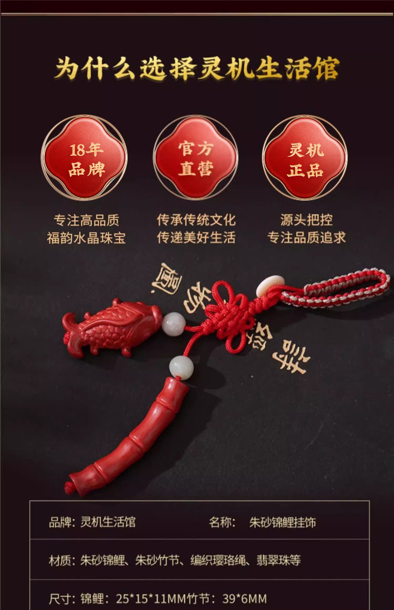 【祈愿吉品】马年文昌锦鲤朱砂挂件