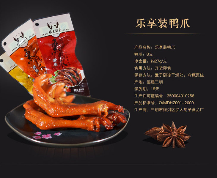 福建罗大胡子熏鸭爪现做现发特产小吃零食