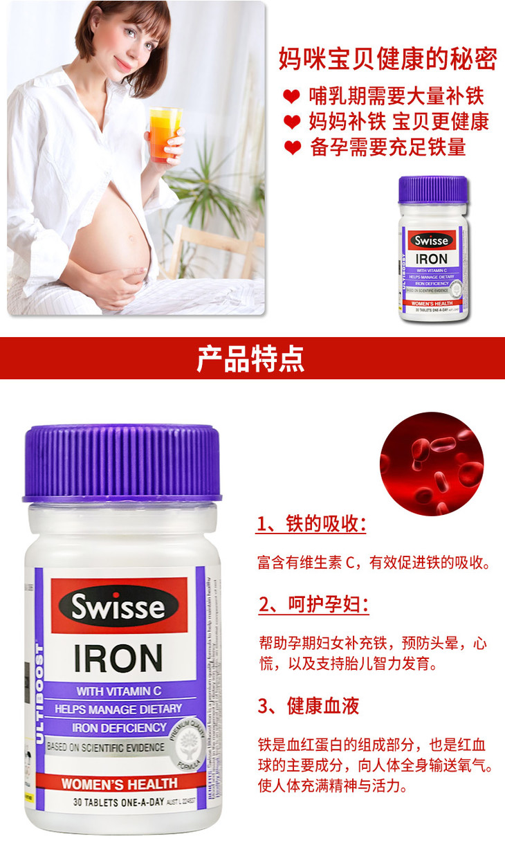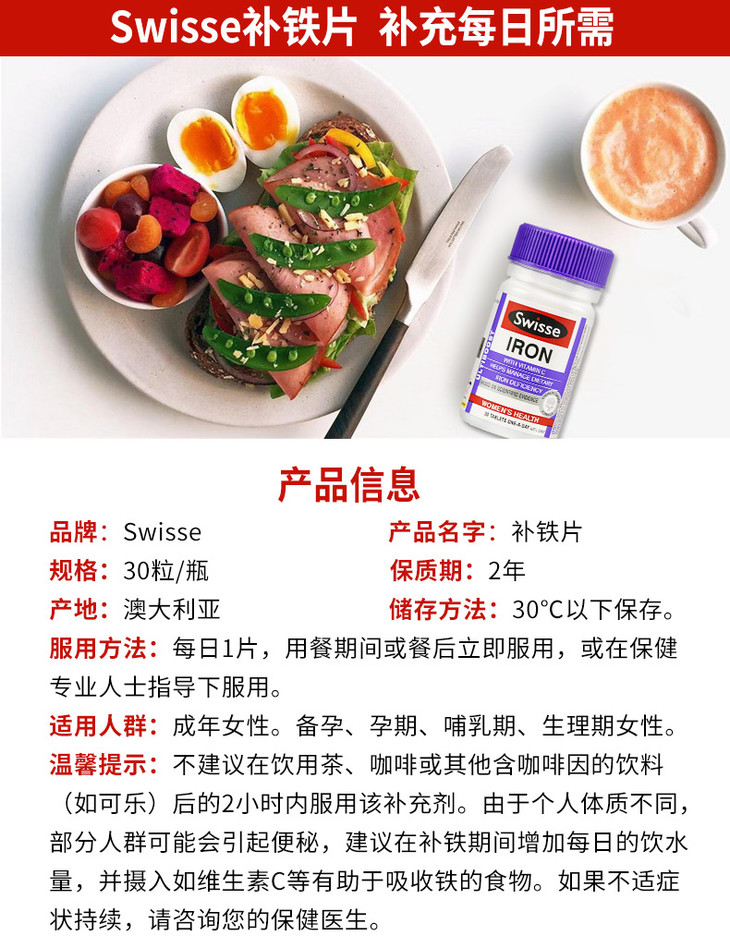 澳洲 Swisse 补铁片 30片