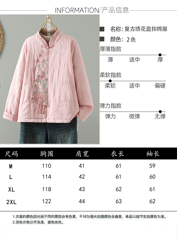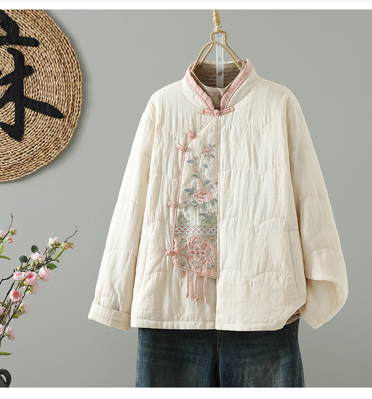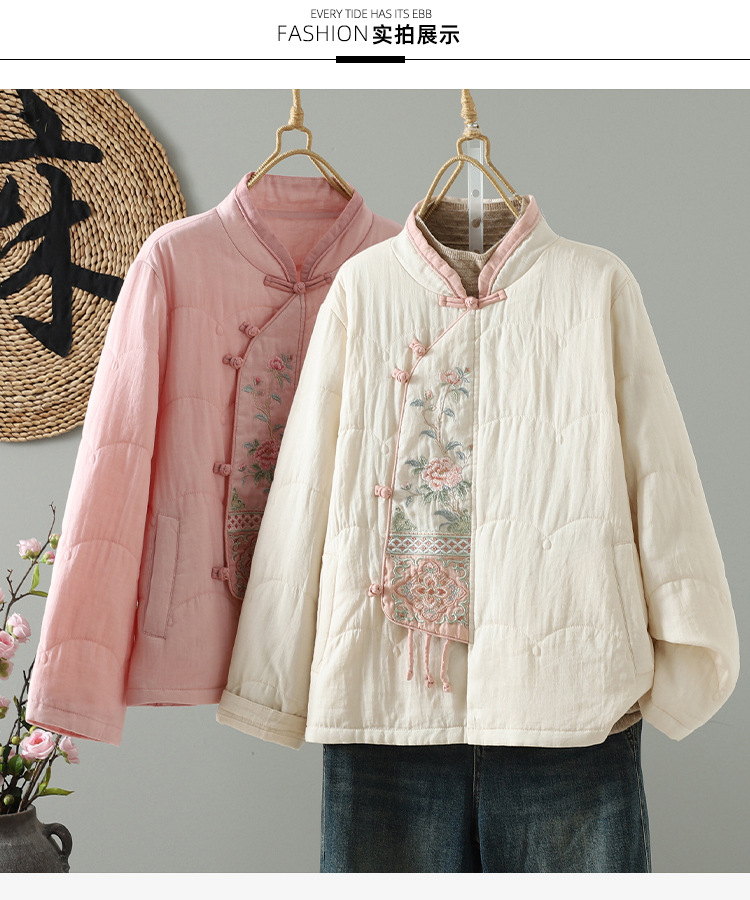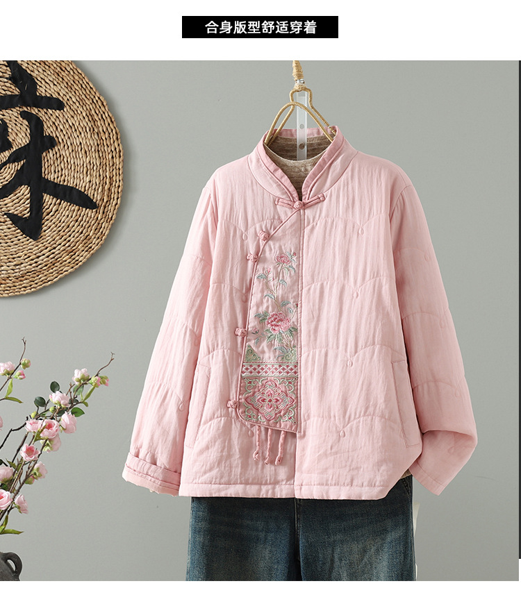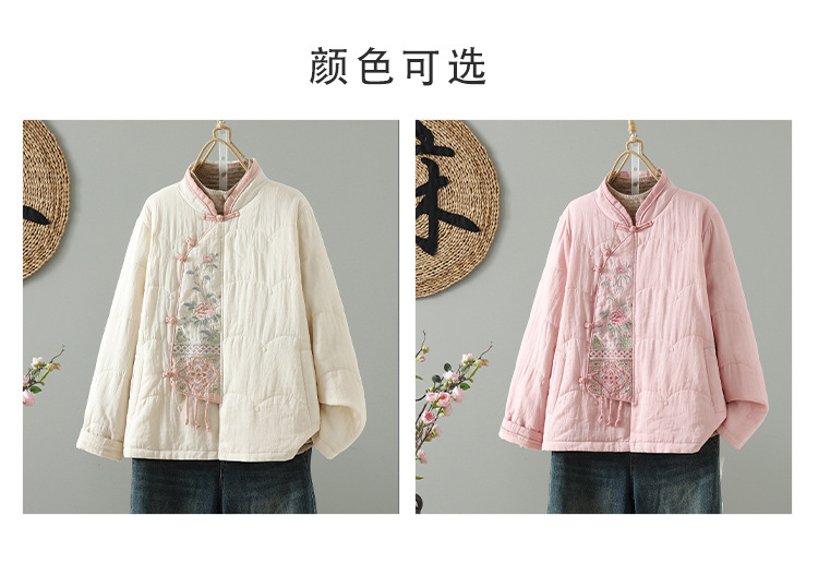 GYH 5616新中式立领斜襟盘扣复古刺绣简约加棉民族风棉服
