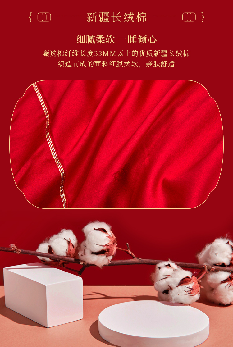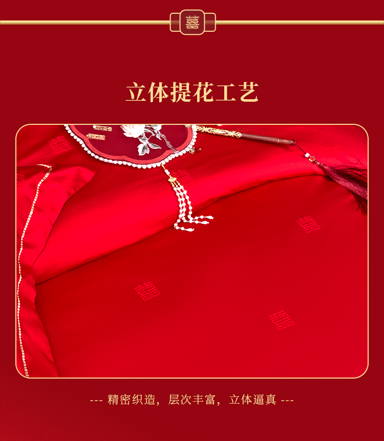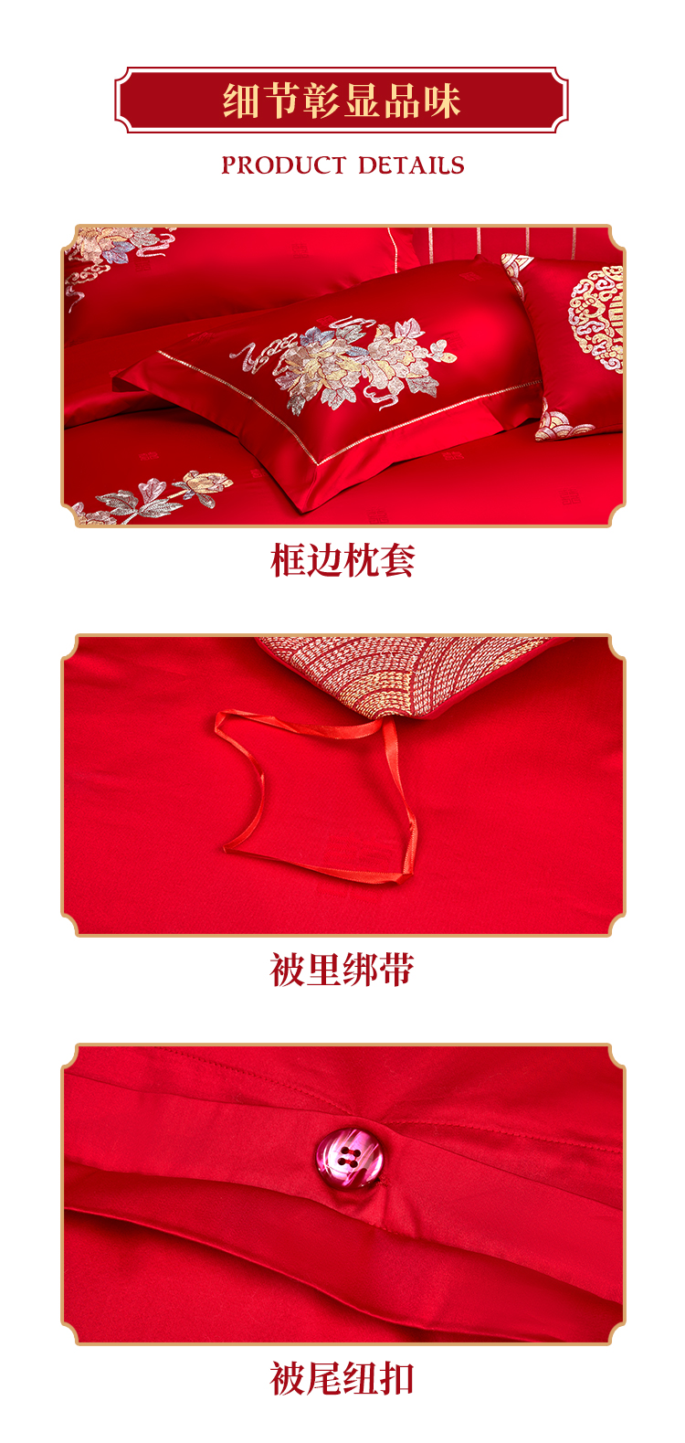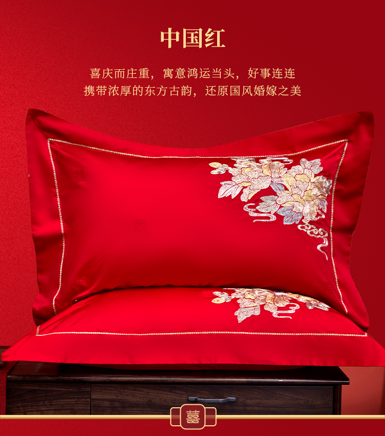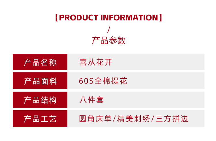 多喜爱 60S全棉提花刺绣八件套 喜从花开【拉杆行李箱包装】【60S全棉提花】【盘金刺绣】【立体提花工艺】高支高密 国风婚嫁 中式美学 色泽亮丽 手感细腻 织物柔软