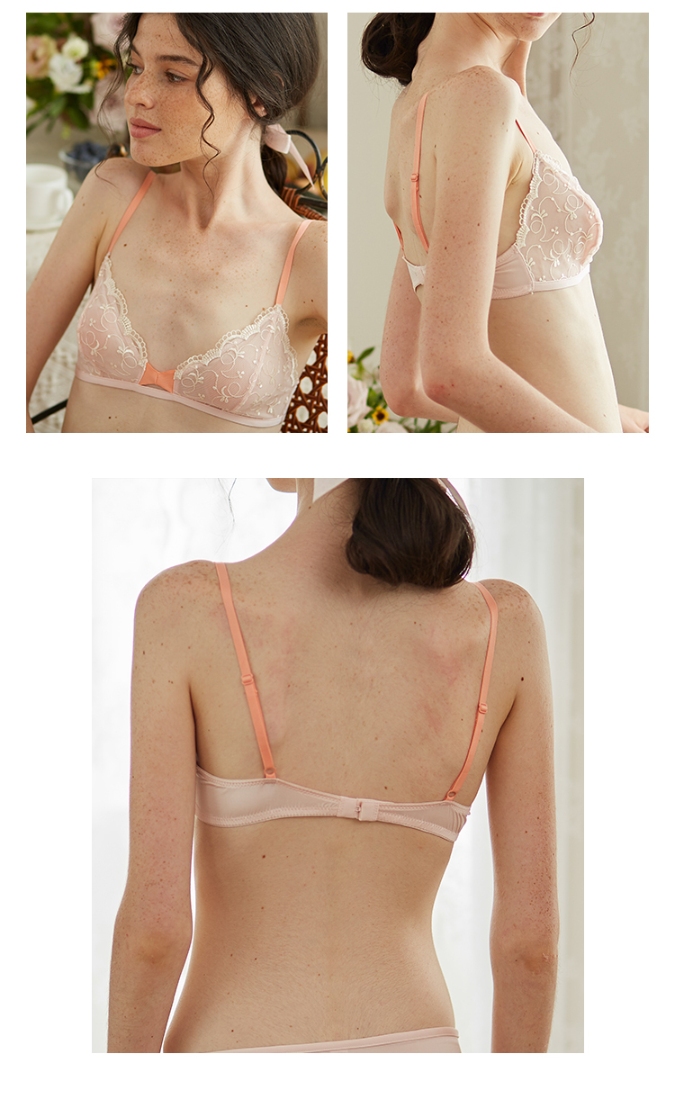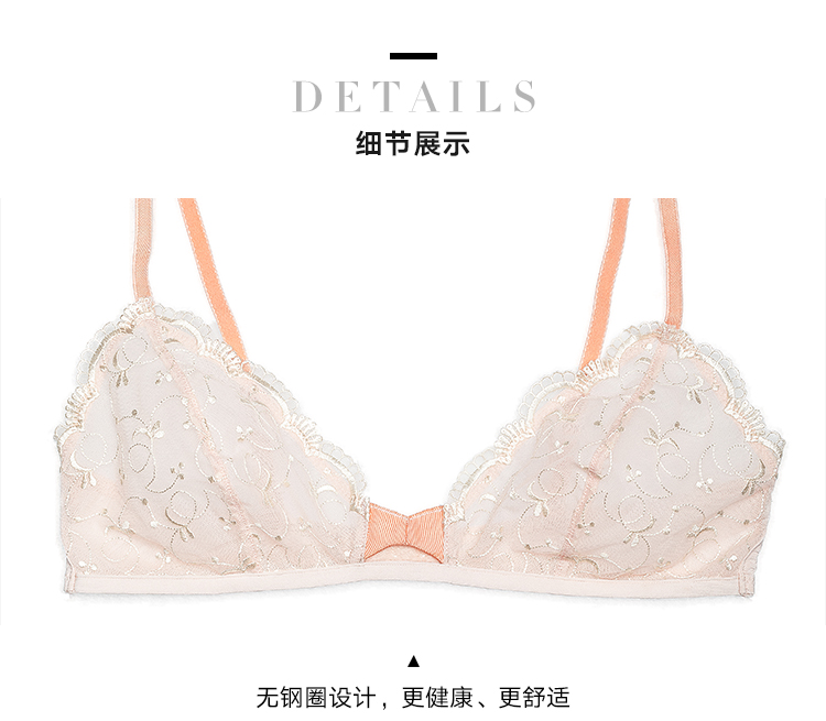 FREELASS弗利少女桔粉色刺绣小胸内衣法式超薄无钢圈平胸文胸