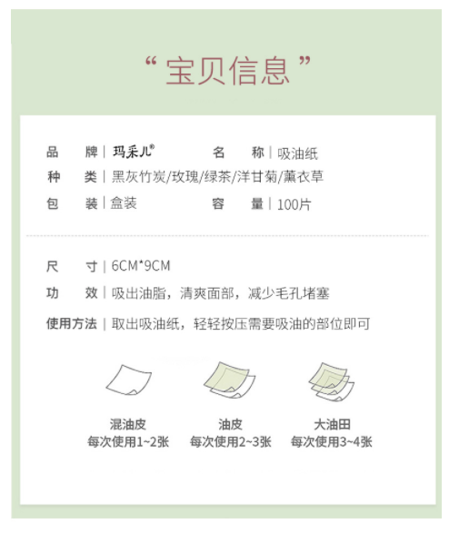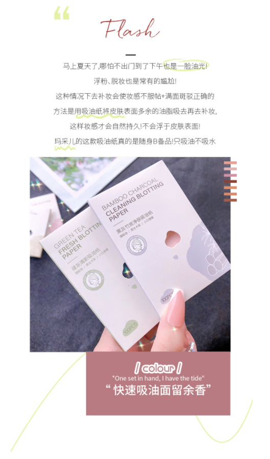 【品牌直发】【吸油纸】玛采儿亚麻木浆颗粒绒面香氛吸油纸油绿茶竹炭玫瑰100片
