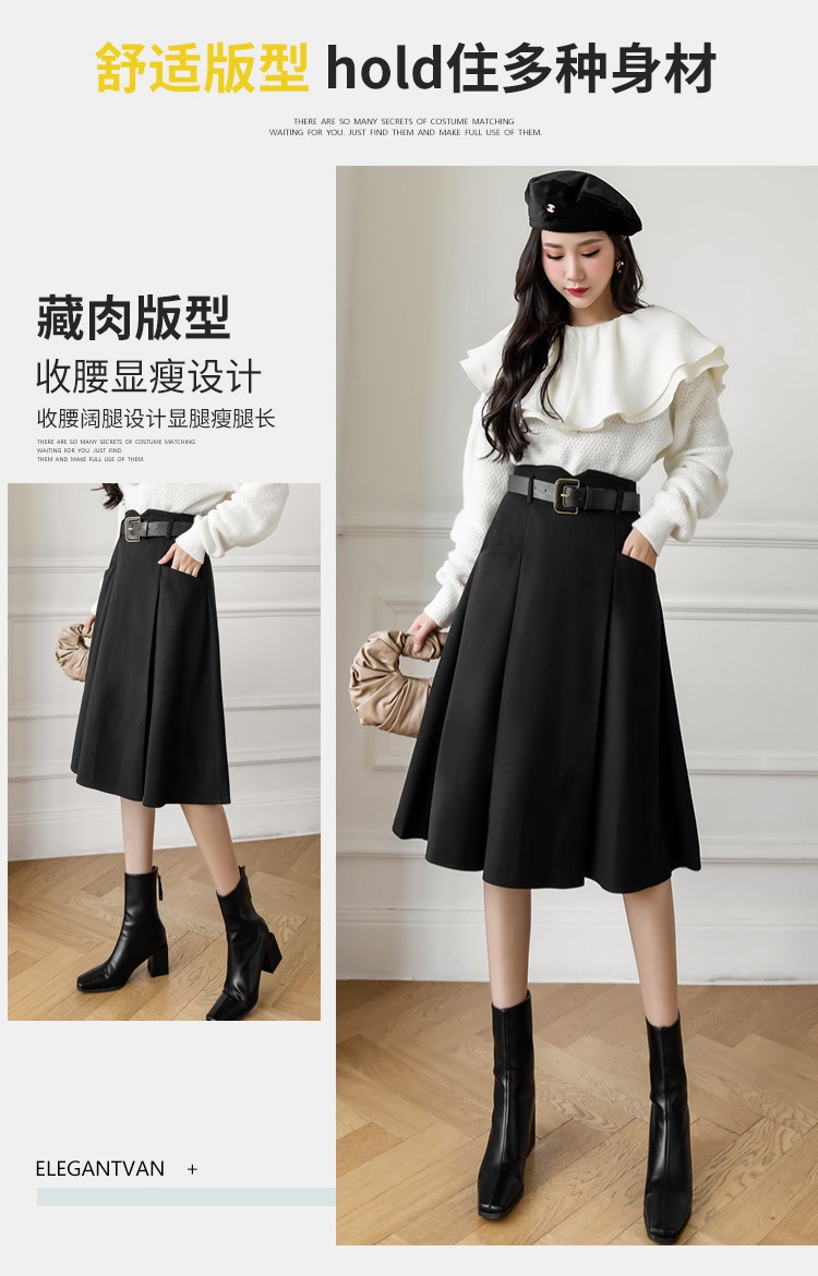 MZ10910 爆款半身裙子女士装春秋冬2022年新款高腰百褶a字中长伞裙