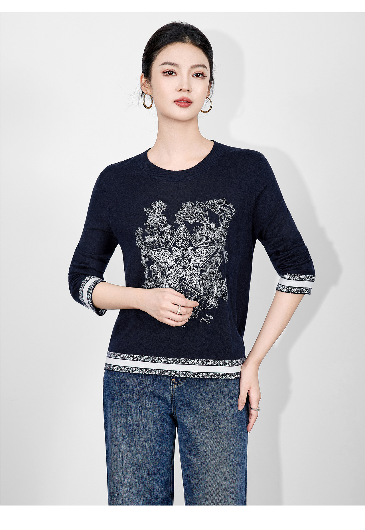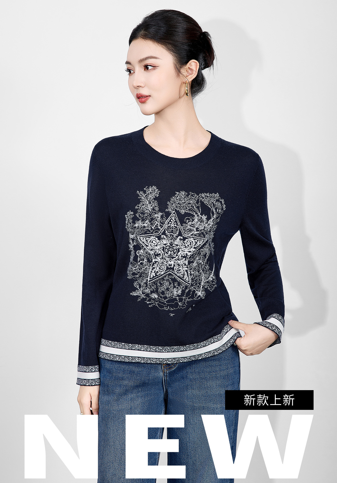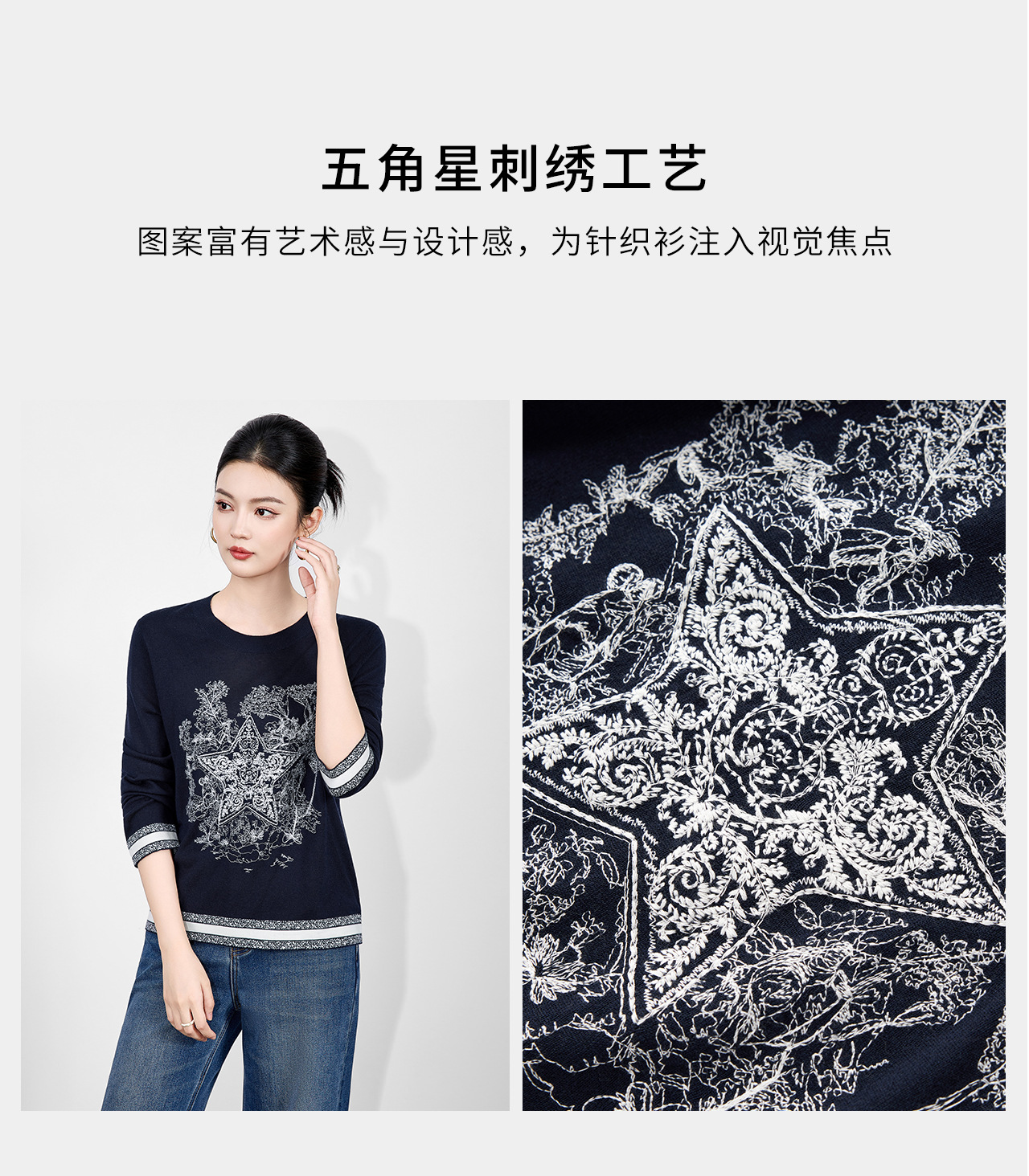 「高货wl」全新升级【铂金会员238/天猫319/差价81】(95529)洛诗琳暖毛星辰刺绣羊毛衫2025冬季气质慵懒感针织上衣女
