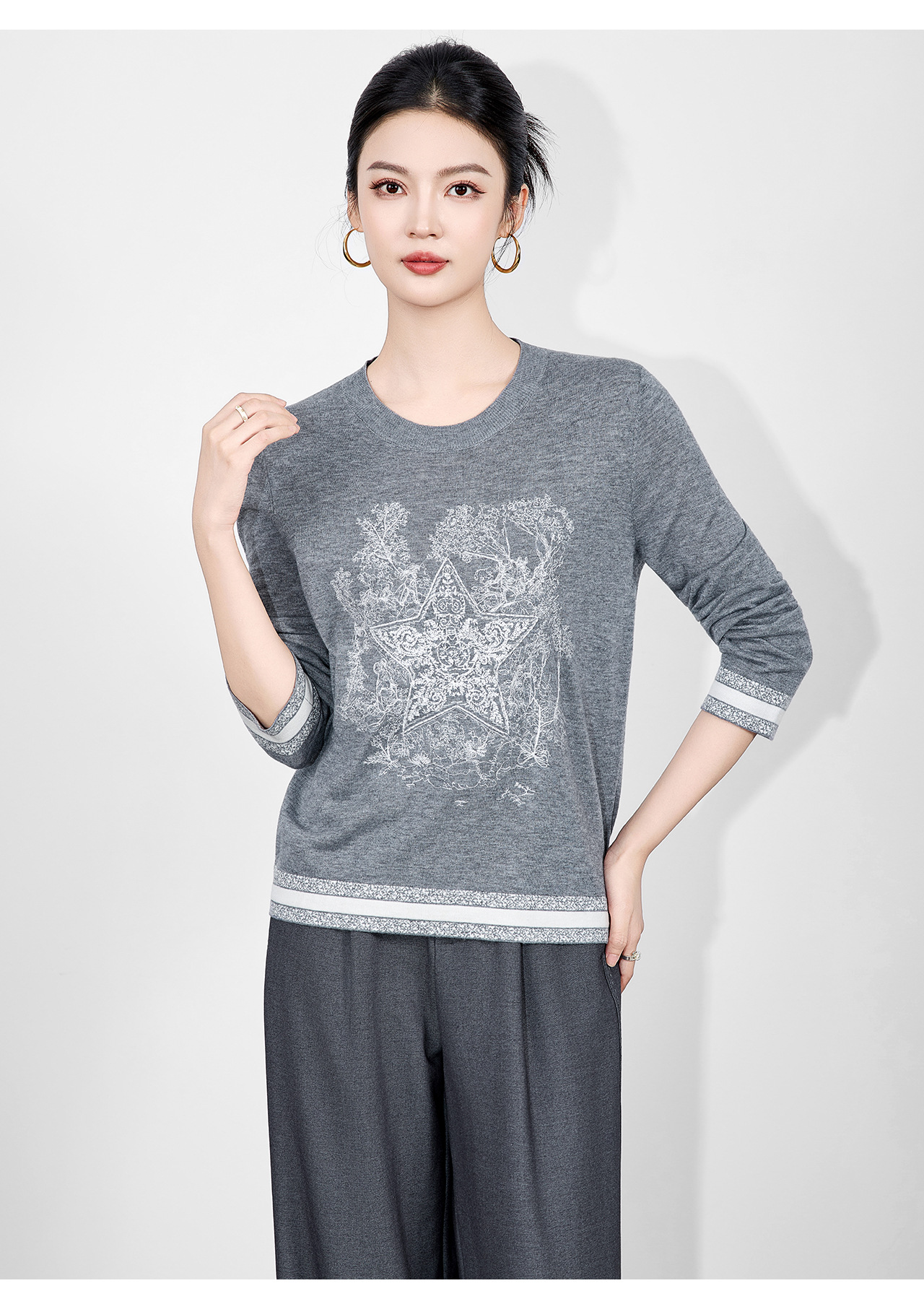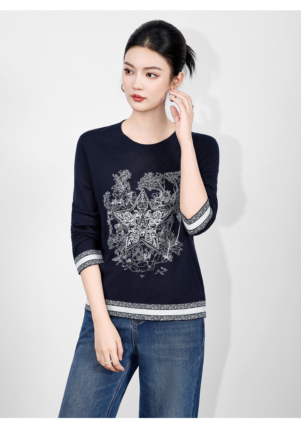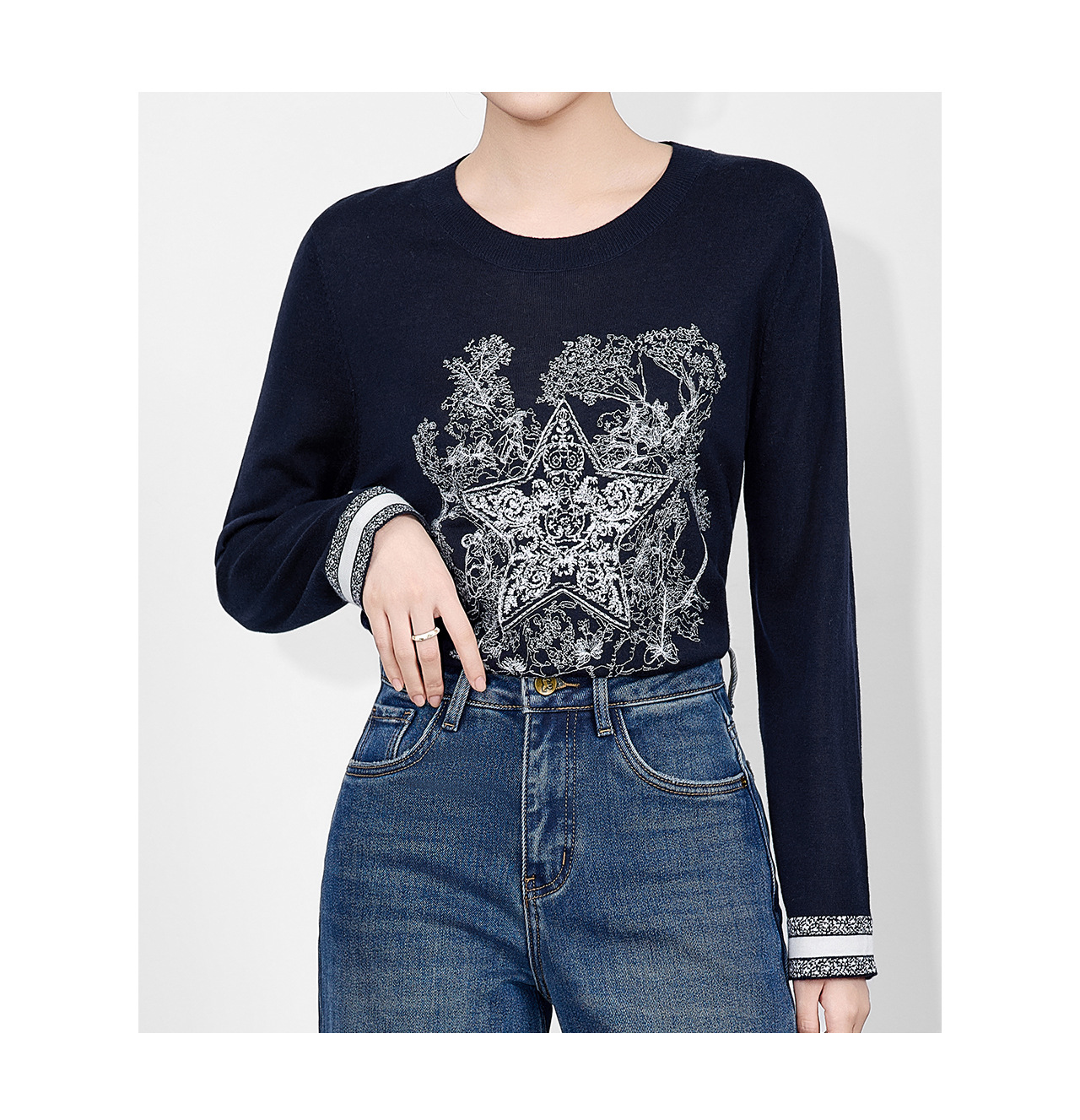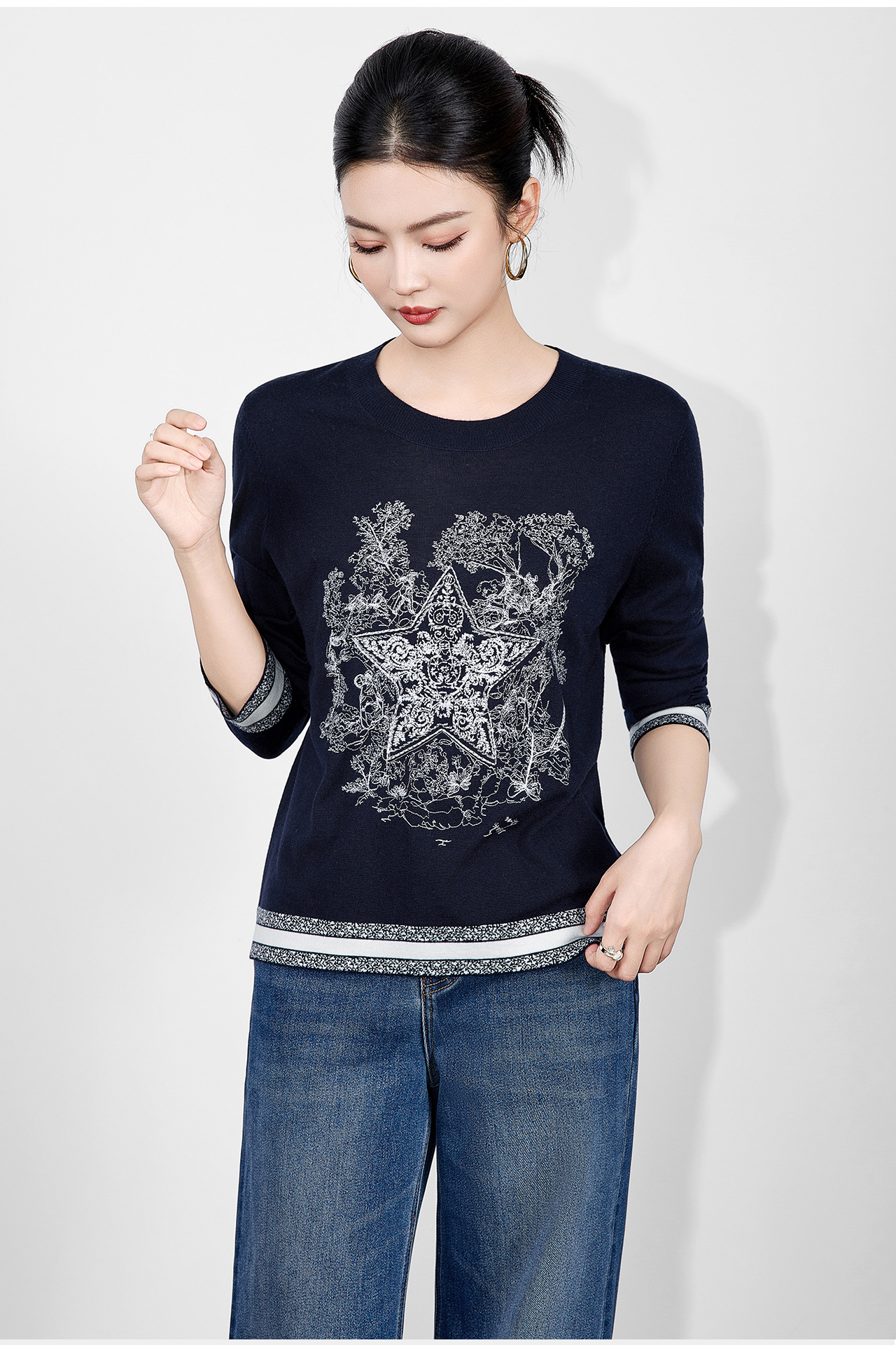 「高货wl」全新升级【铂金会员238/天猫319/差价81】(95529)洛诗琳暖毛星辰刺绣羊毛衫2025冬季气质慵懒感针织上衣女