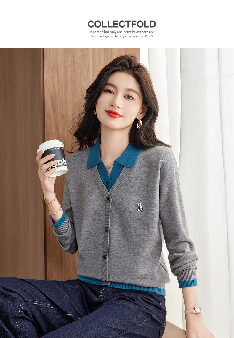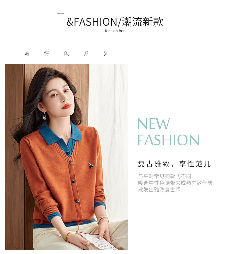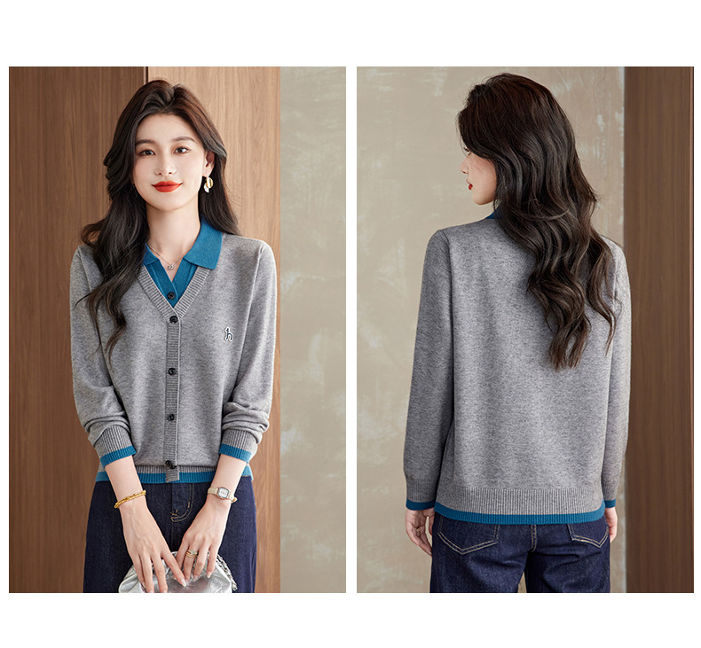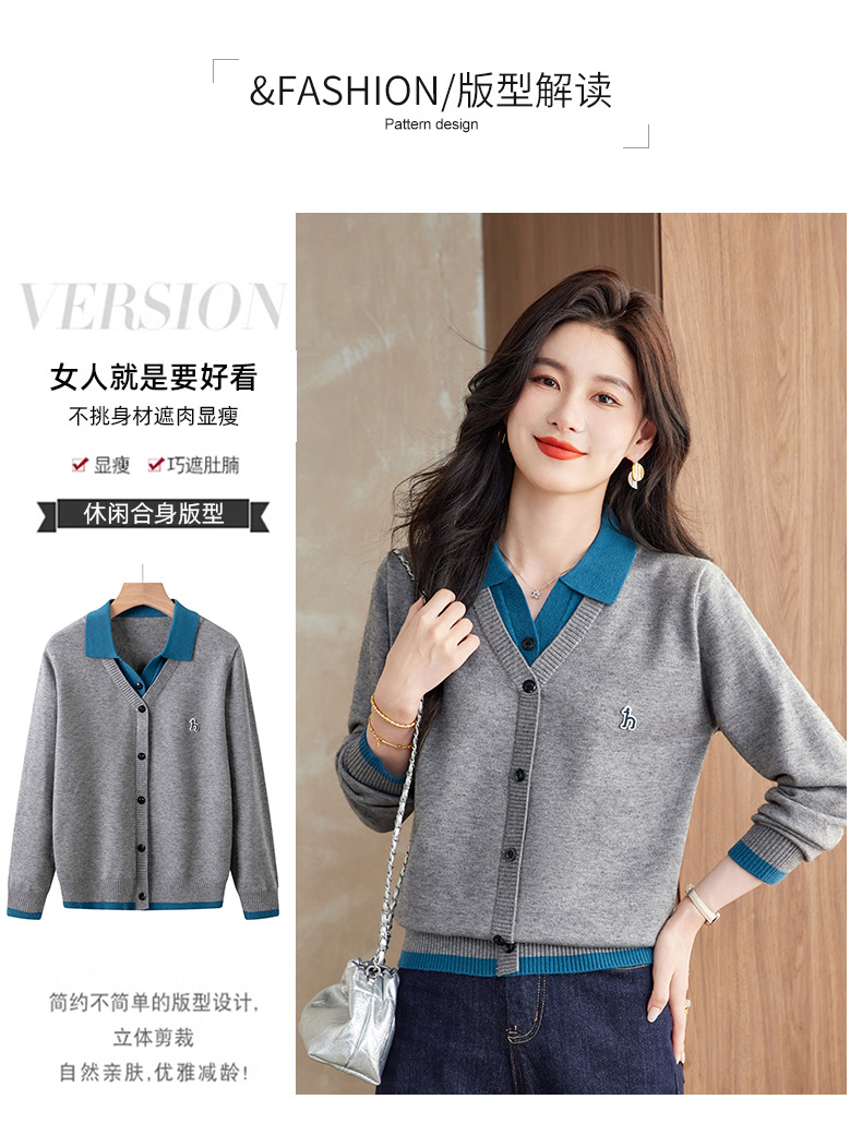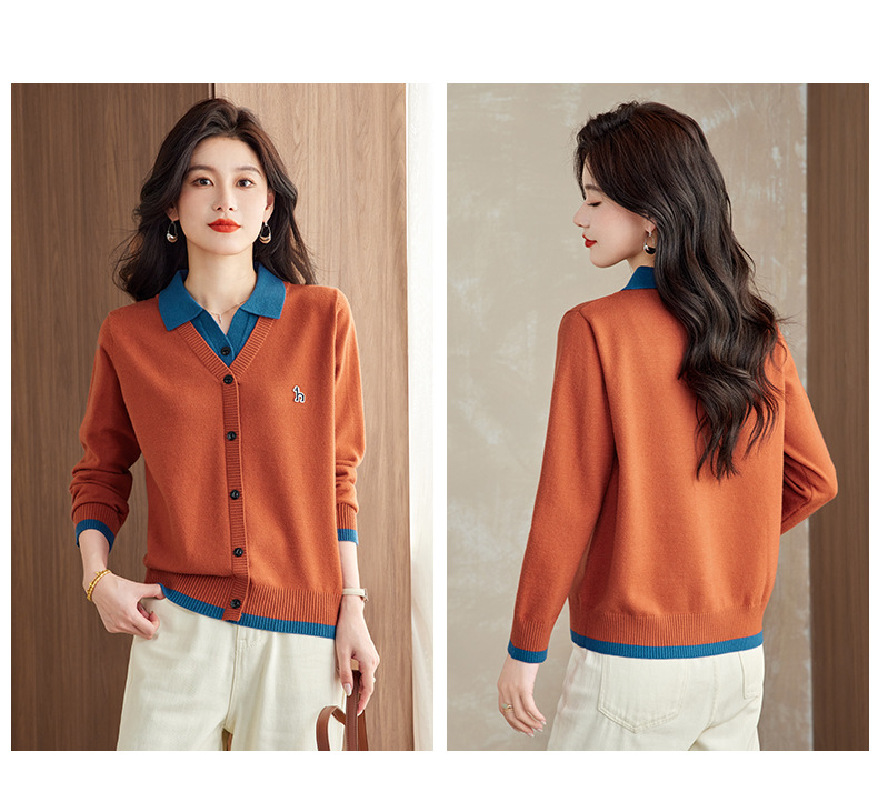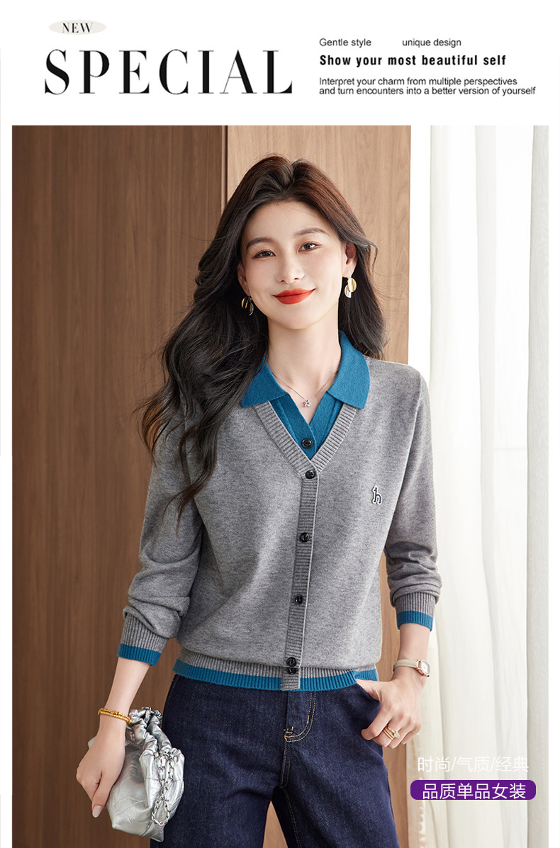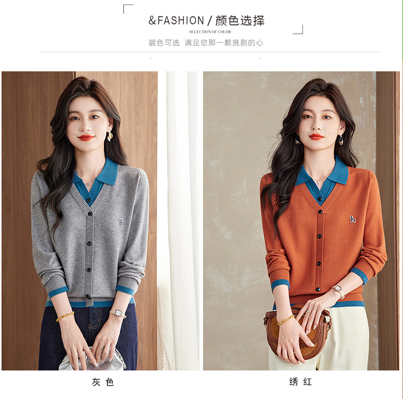CC假两件上衣女衬衫领毛衣2025春秋新款时尚洋气翻领针织打底衫批发