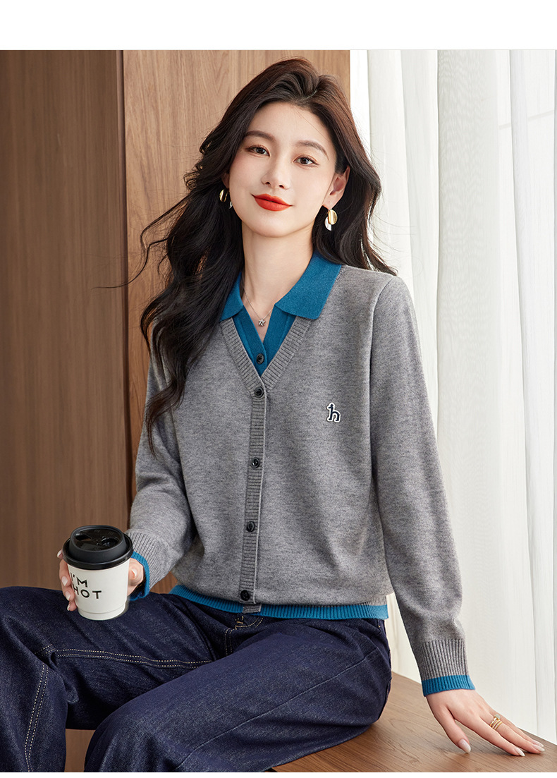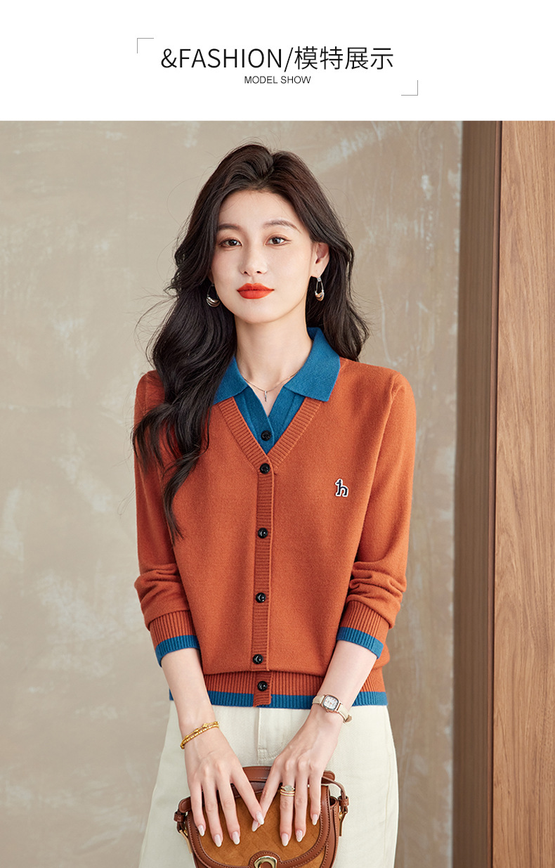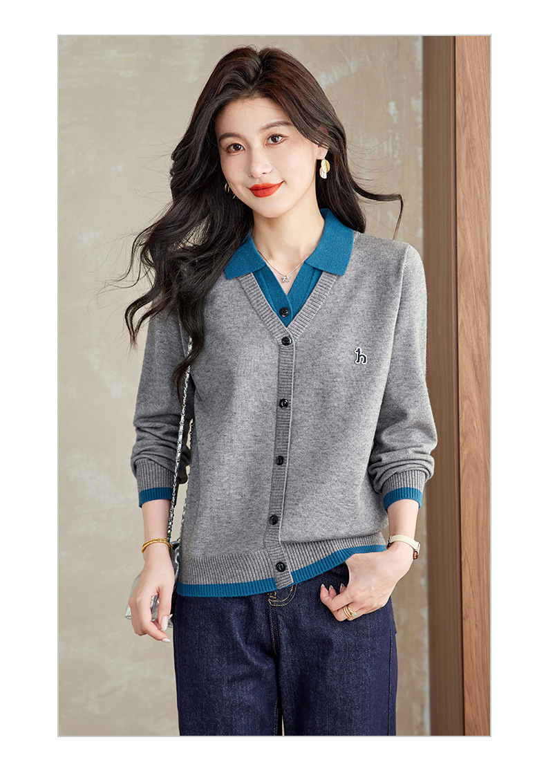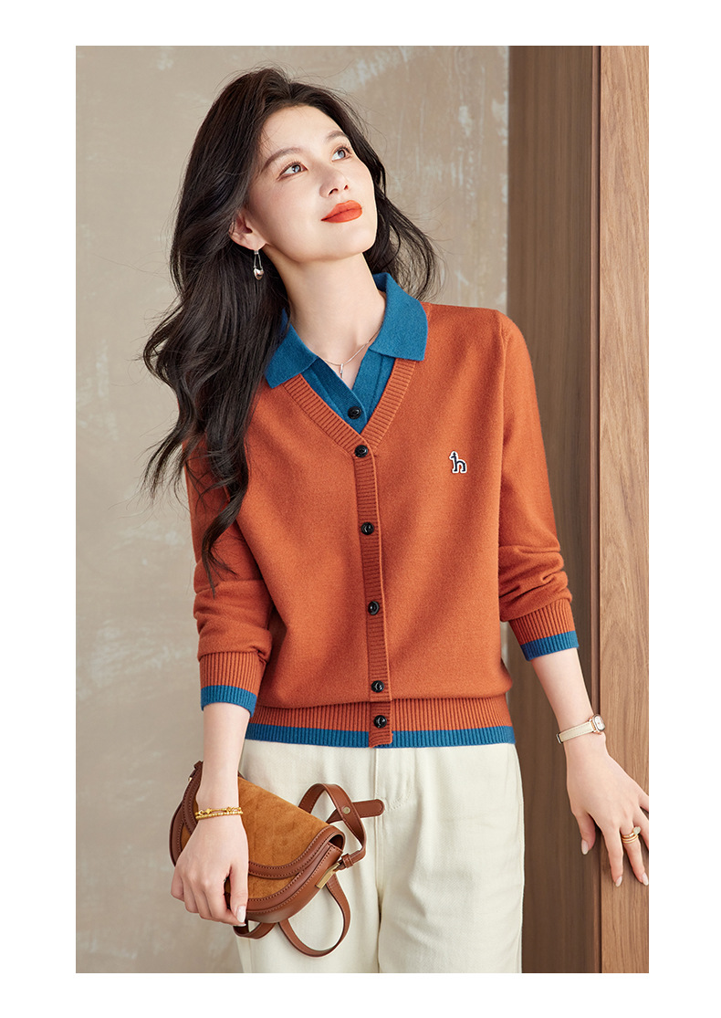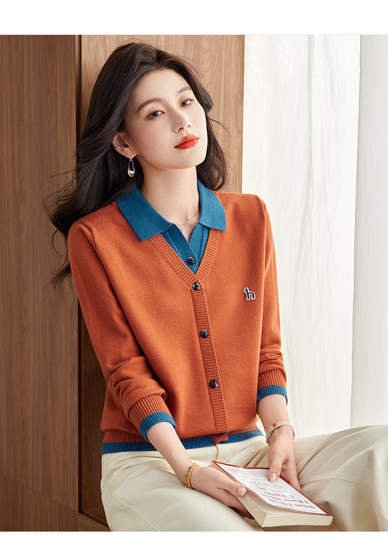 CC假两件上衣女衬衫领毛衣2025春秋新款时尚洋气翻领针织打底衫批发