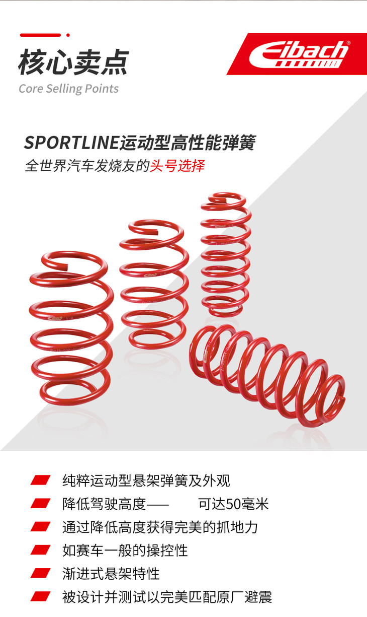艾巴赫高性能弹簧 Eibach SPORTLINE 红簧 | 赛车感受 原厂替换 降低车身高度 完美匹配 艾巴赫 x 酷乐汽车