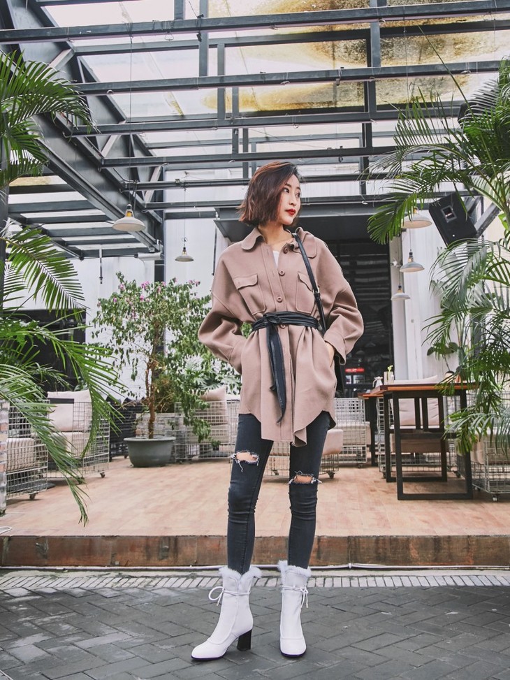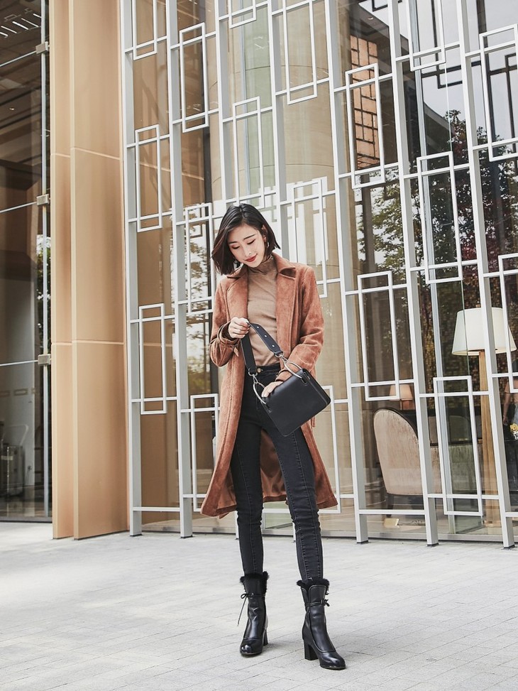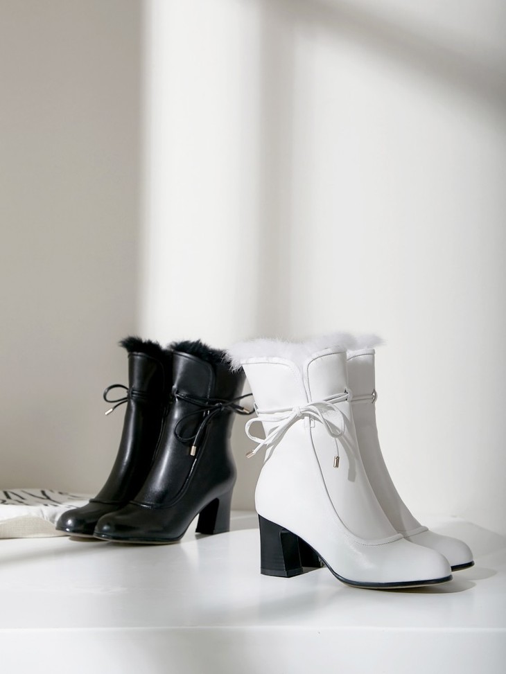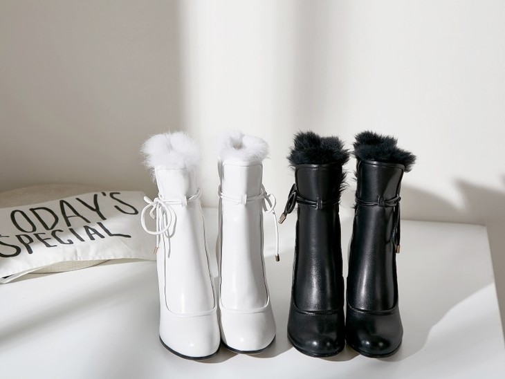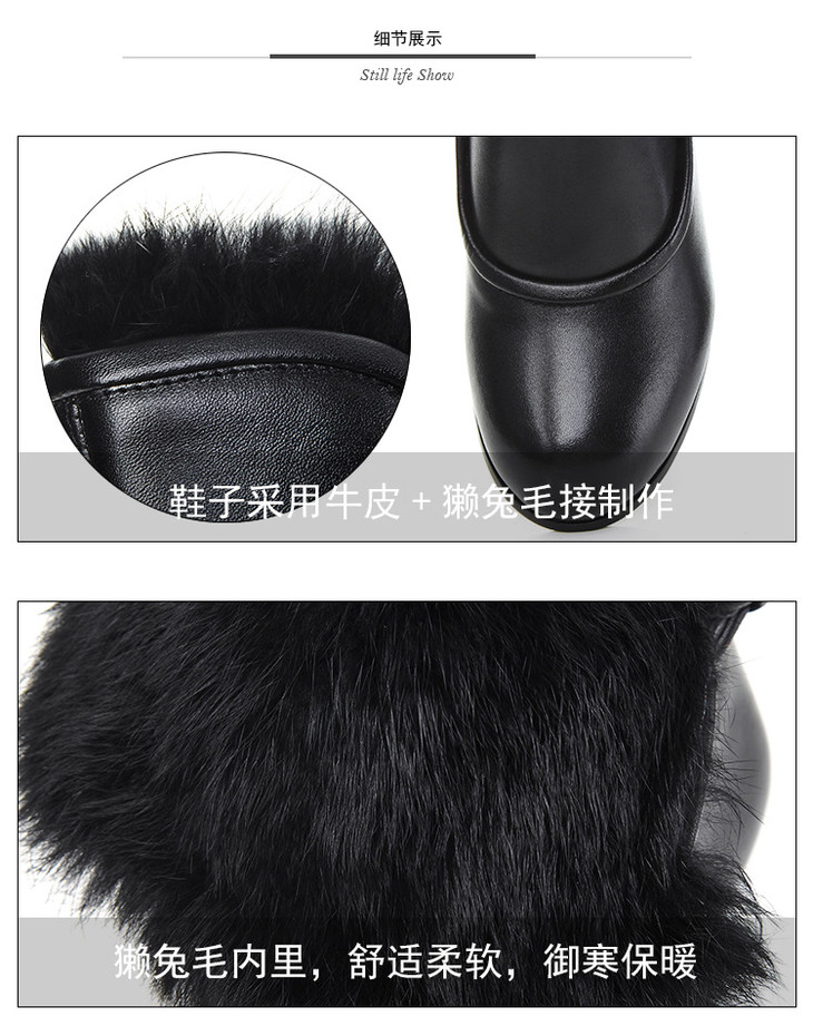 CEXY-d99211 秋冬季时尚真皮圆头粗跟女单靴保暖兔毛加绒中筒女皮靴