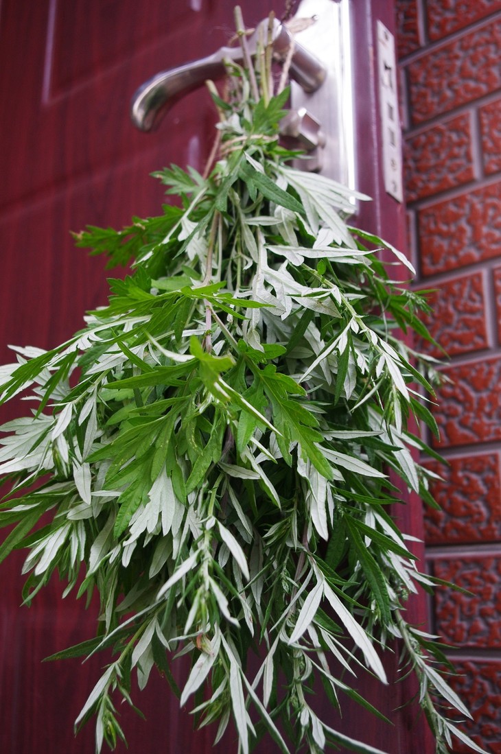端午是入夏后第一个节日,气温上升,正是疾病多发的时期。民间有悬挂艾叶及燃烧艾叶的习俗,可以杀菌消毒、防蚊、预防瘟疫流行。所以每到这时节人们会在家门口挂几株艾草与菖蒲。艾叶是一味芳香化浊的中药,有较强的驱毒除瘟作用。