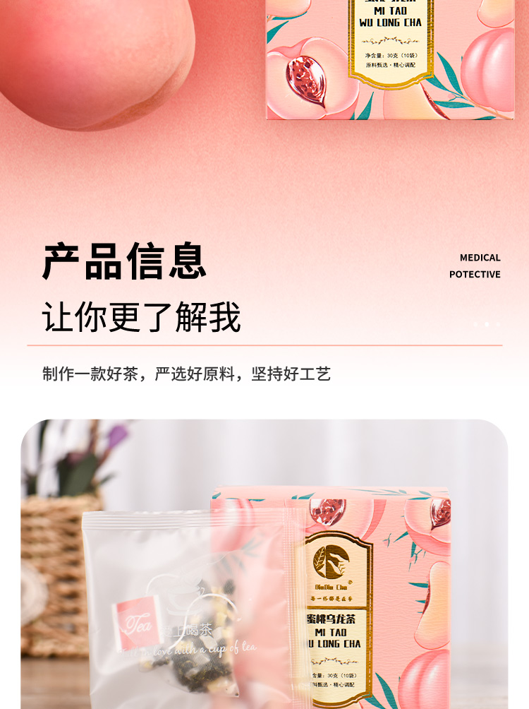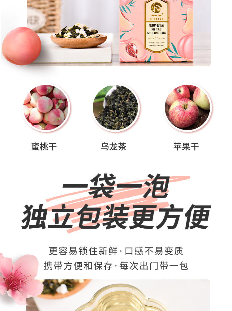 【蜜桃苹果乌龙茶 3g*10袋/盒】蜜桃干+苹果干+乌龙茶3种好料,装满果味茶香