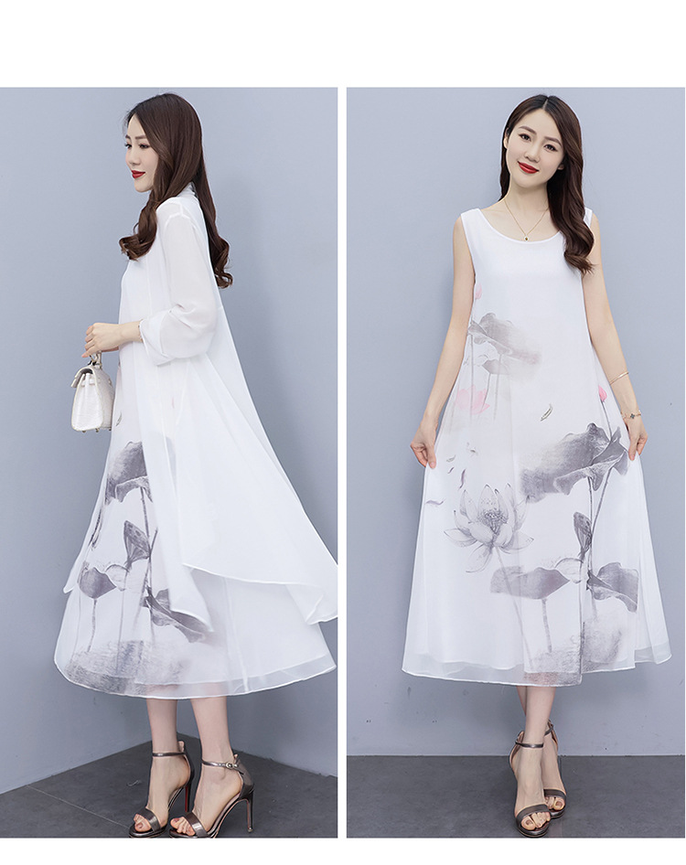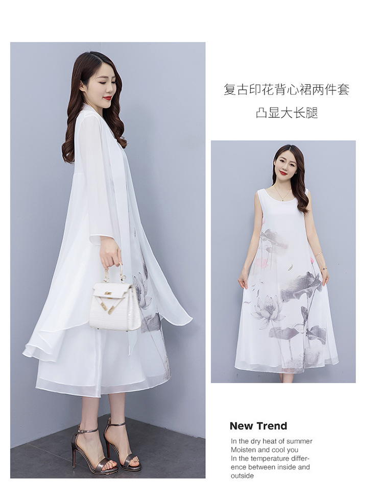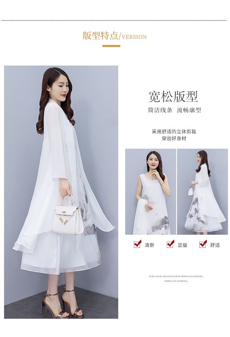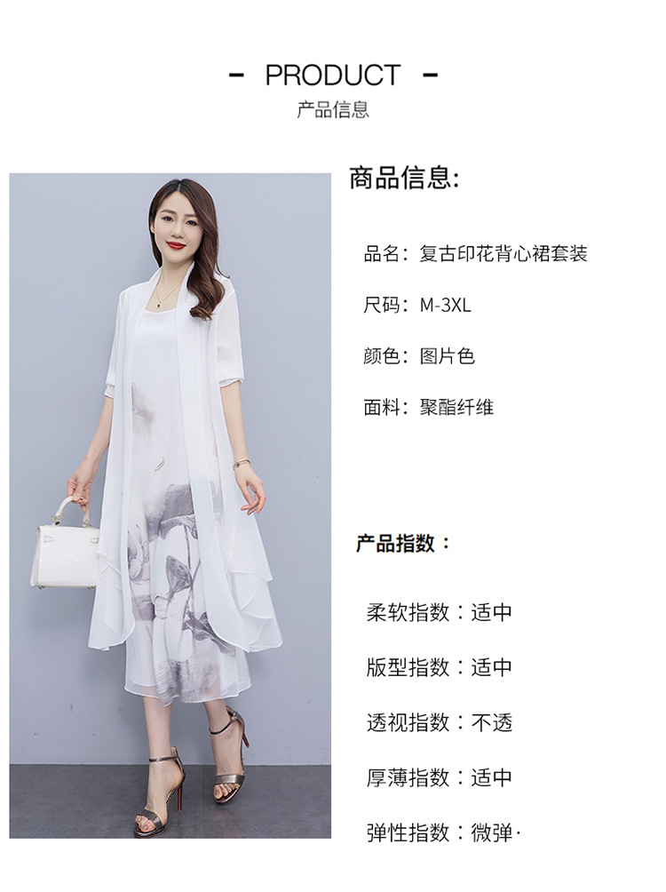国风复古长款吊带,宽松大码两件套外搭开衫HR-WX23159