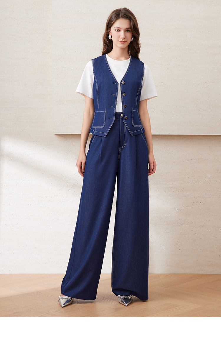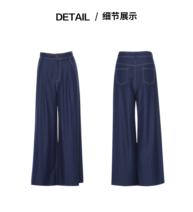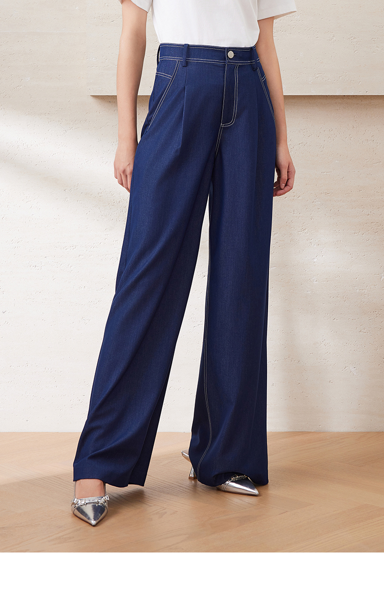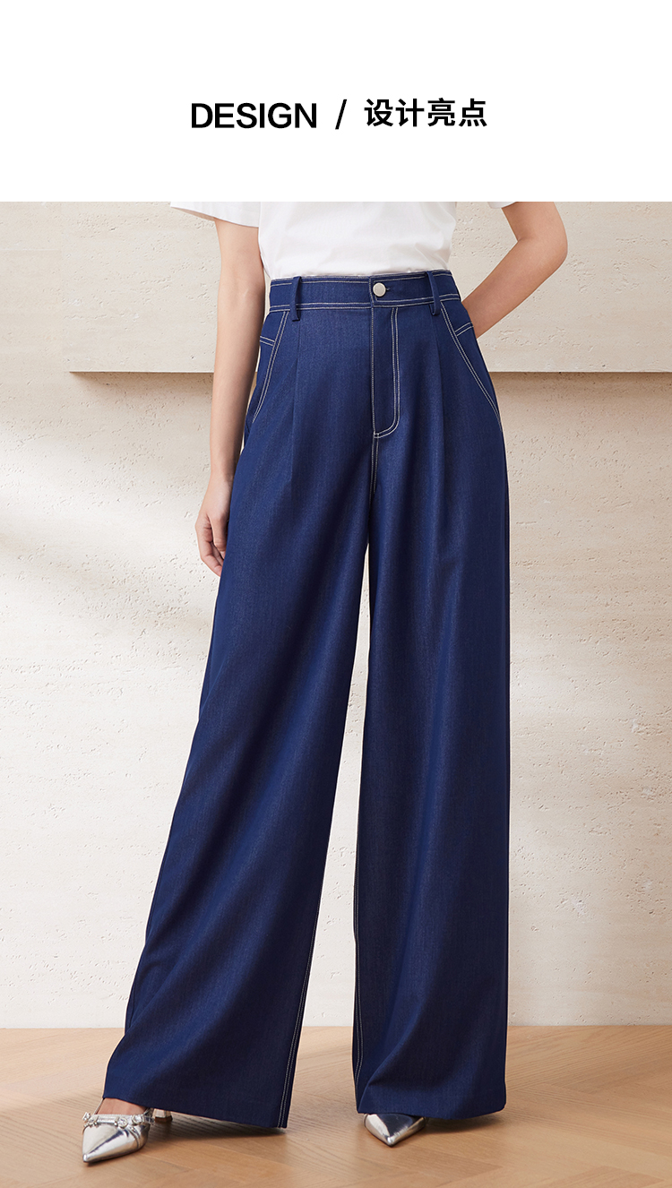 EITIE爱特爱时尚复古撞色走线高腰利落阔腿牛仔裤2025夏季新款B2505606