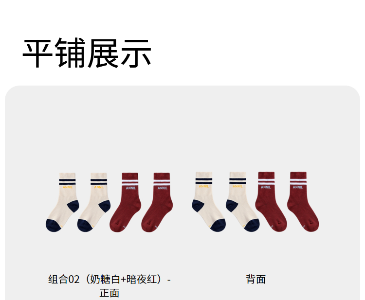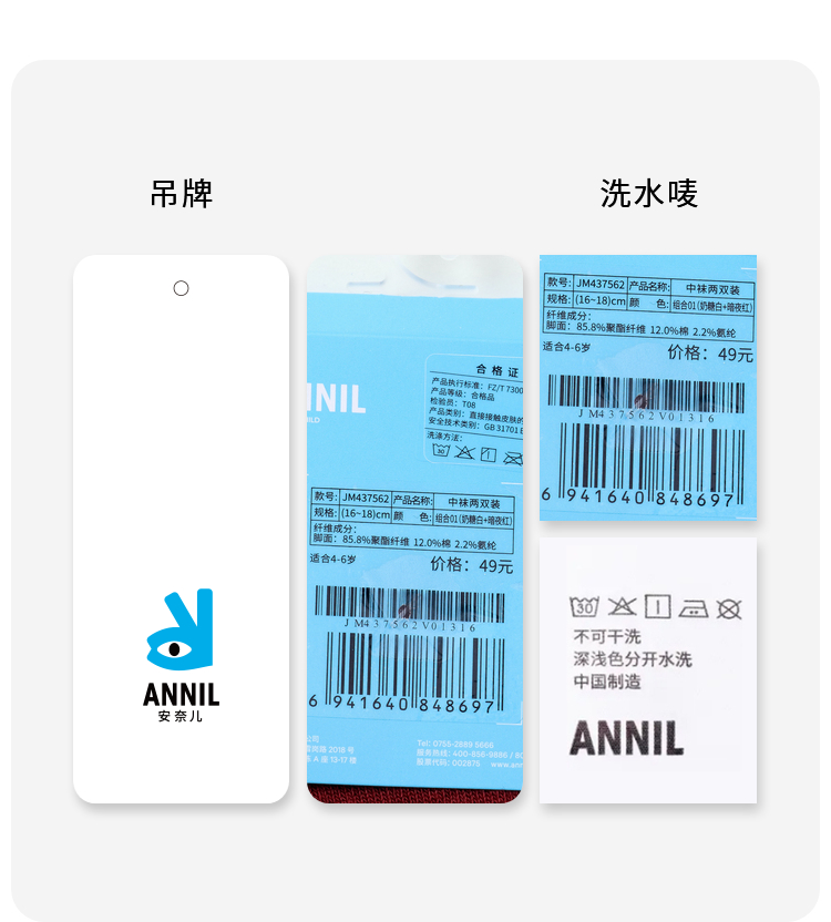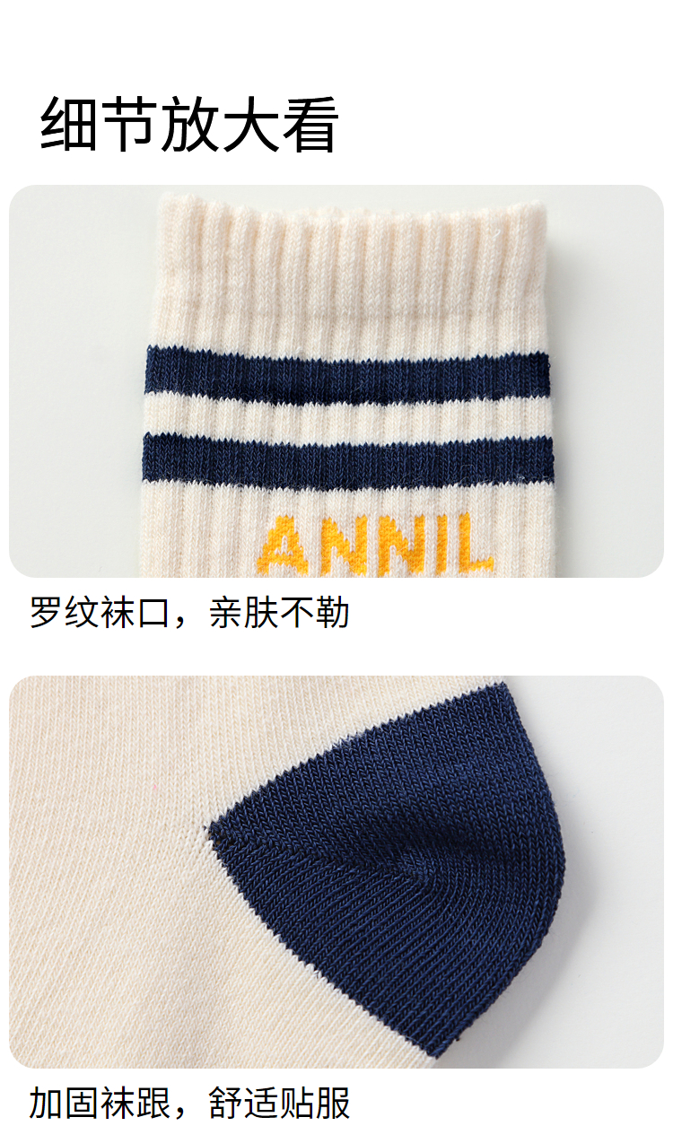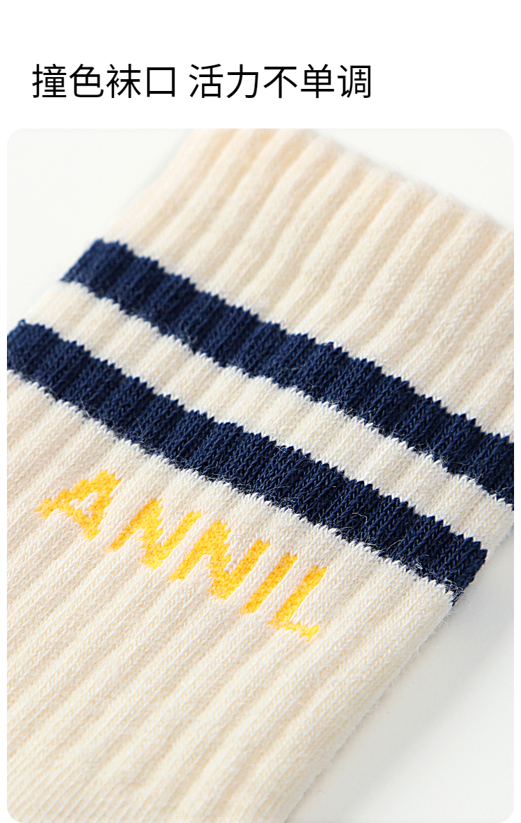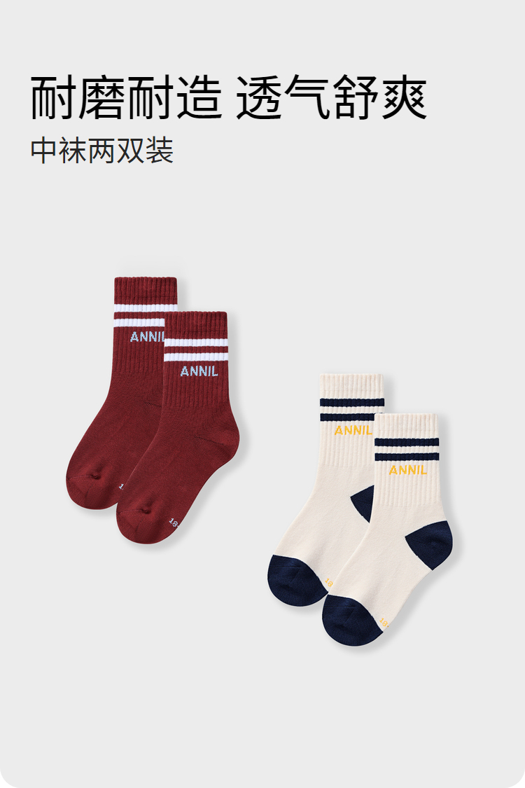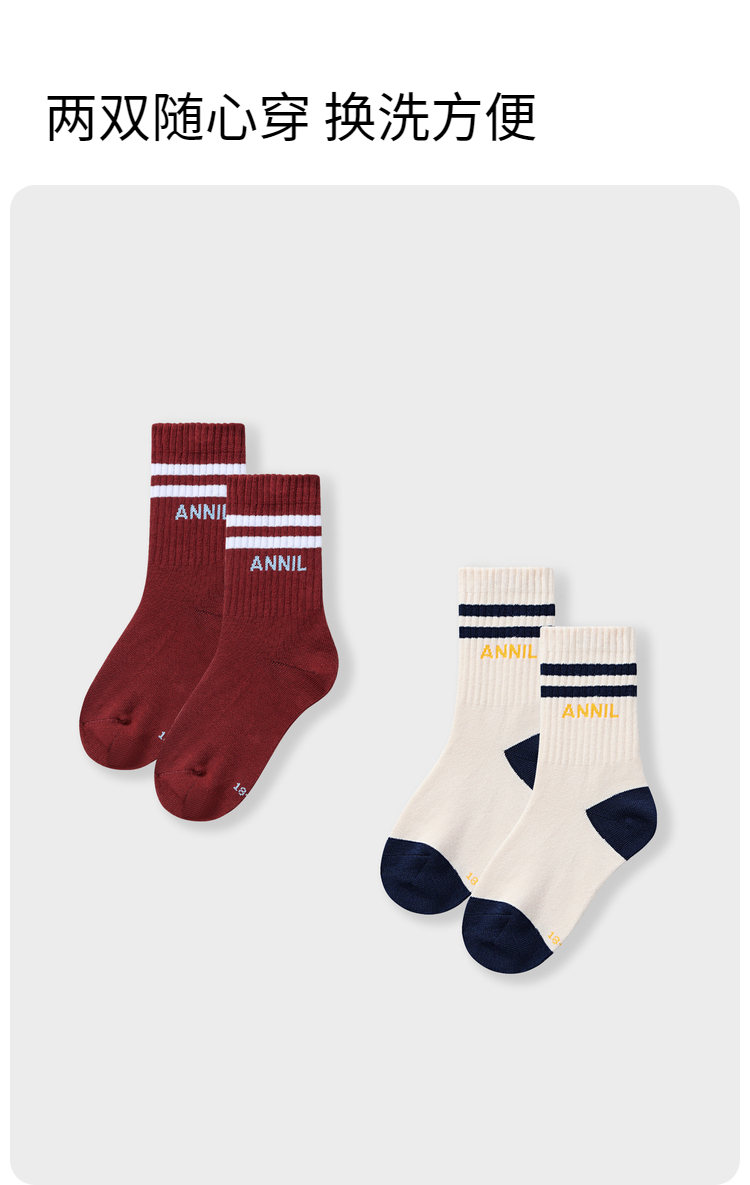 【5A抗菌家居】男女童中袜两双装学生袜子新款安奈儿童装实体店同款JM437562