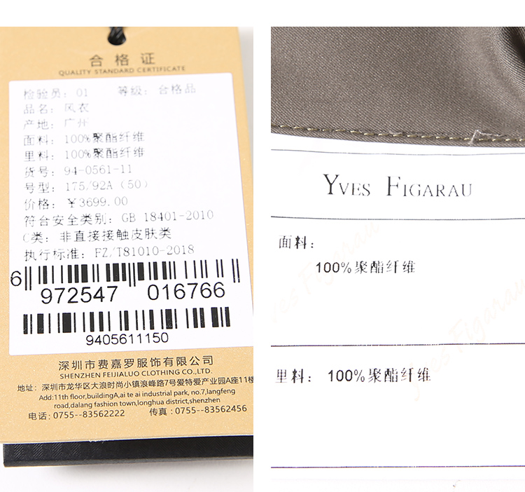 YvesFigarau伊夫·费嘉罗秋冬新款休闲时尚舒适风衣外套940561