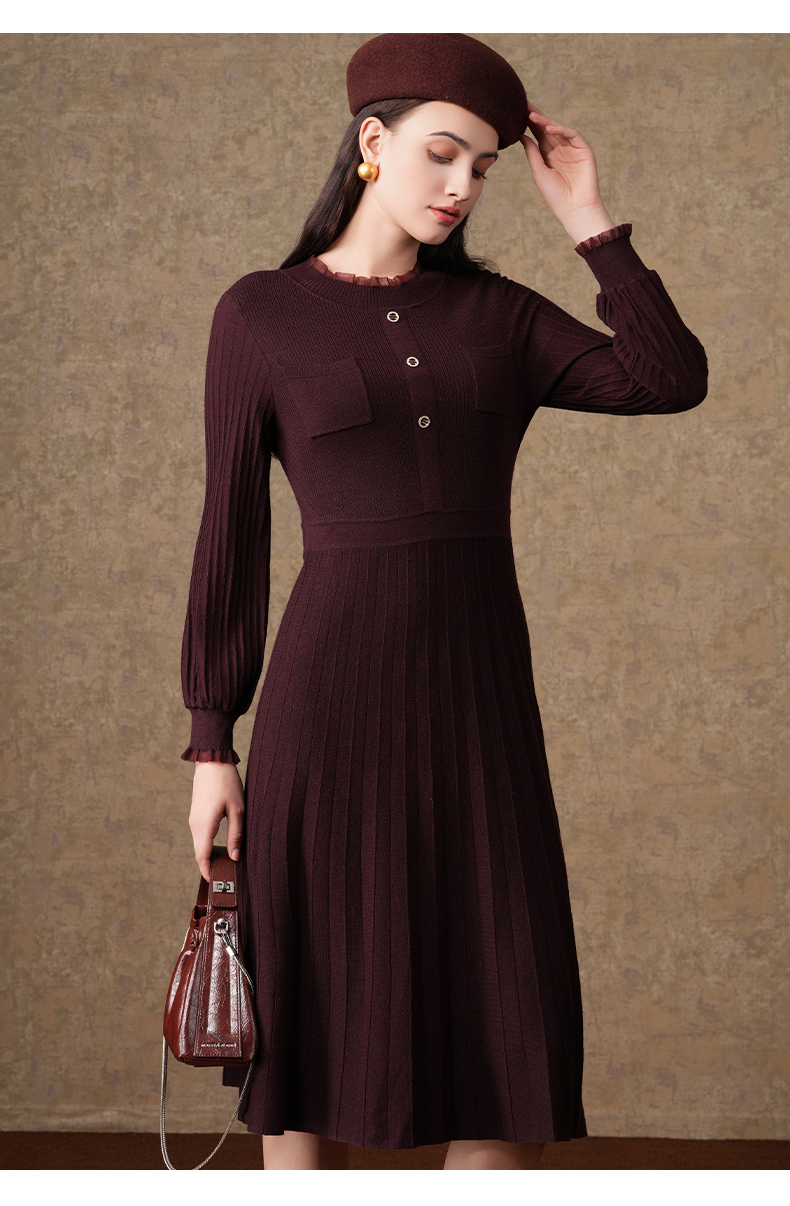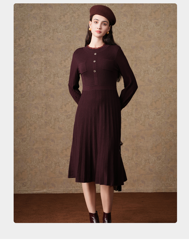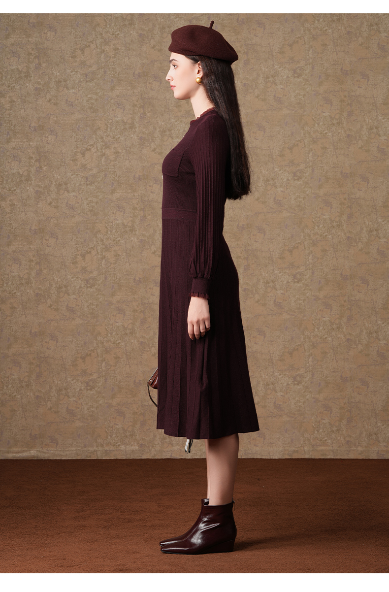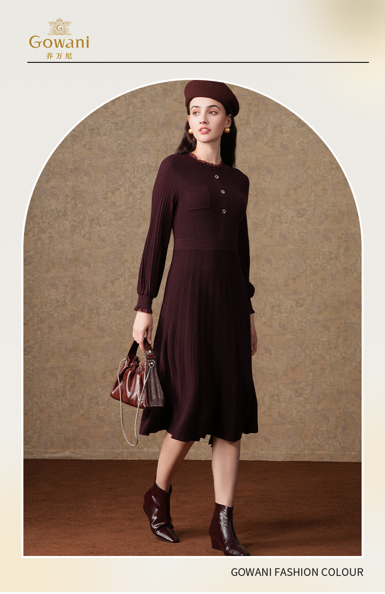 乔万尼复古收腰木耳领显瘦针织打底羊毛长裙EI4M621
