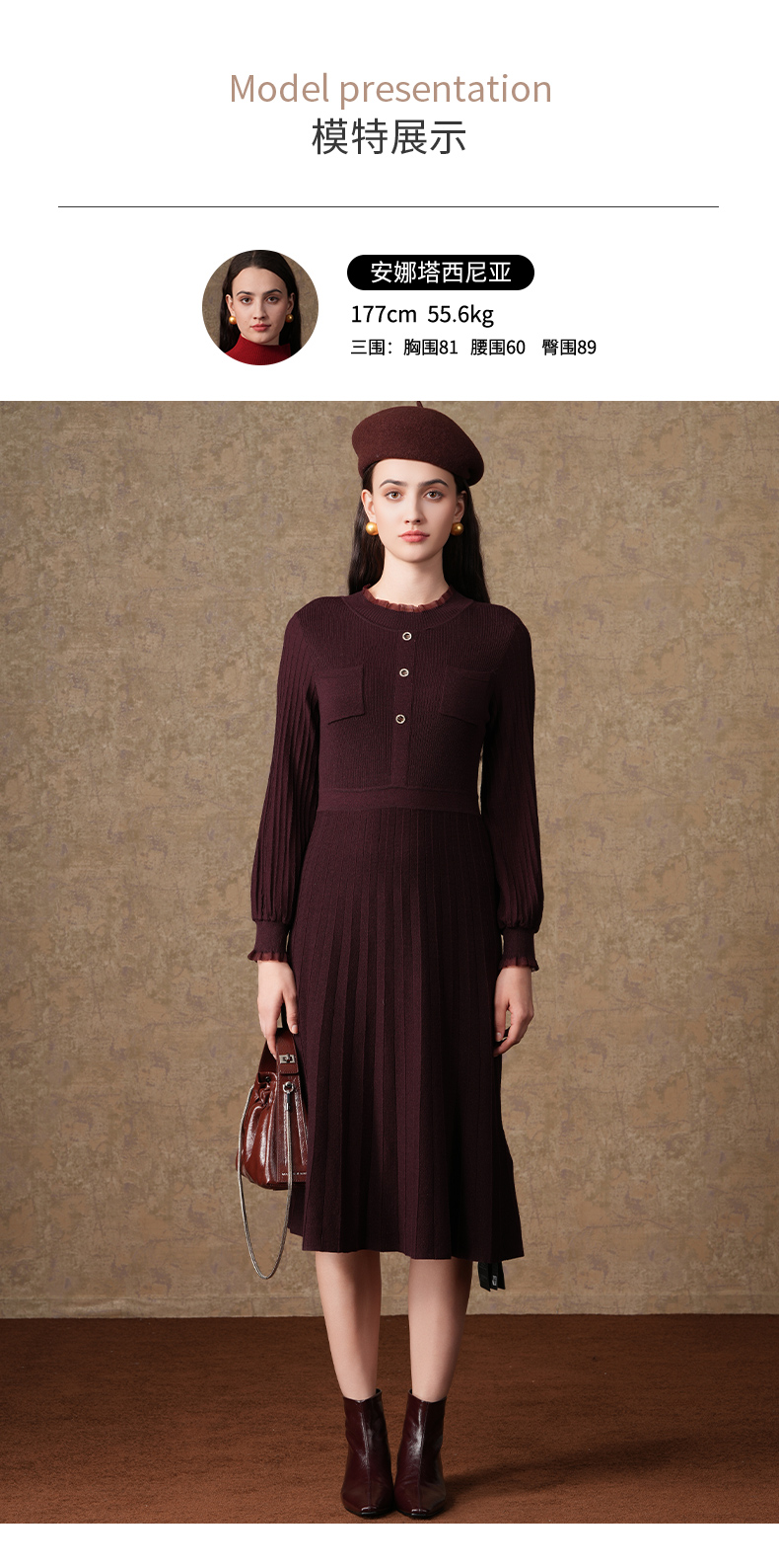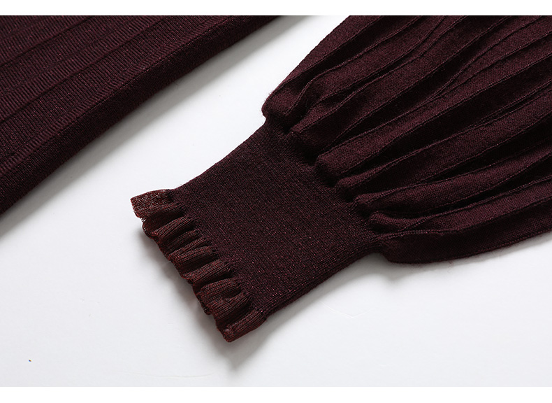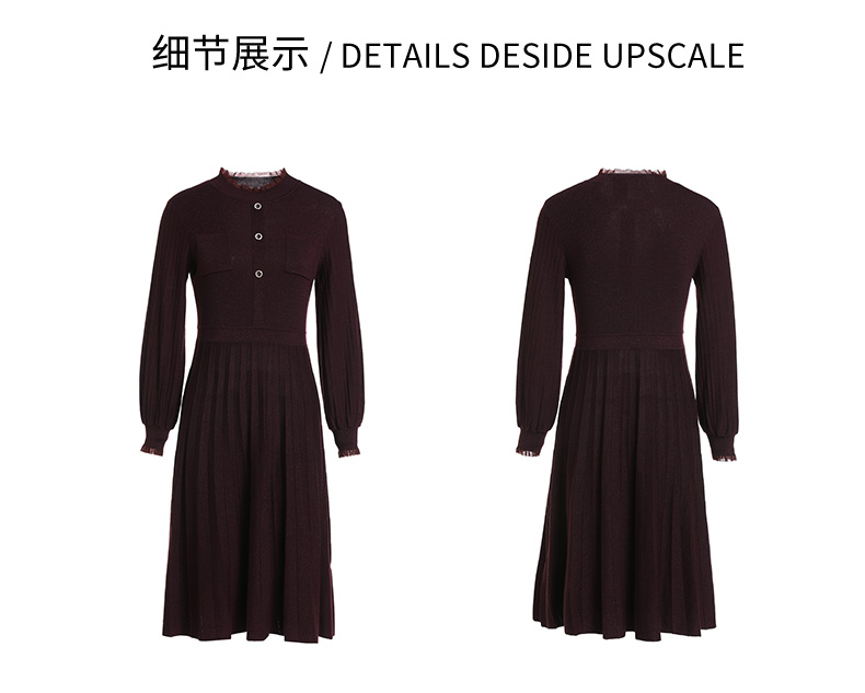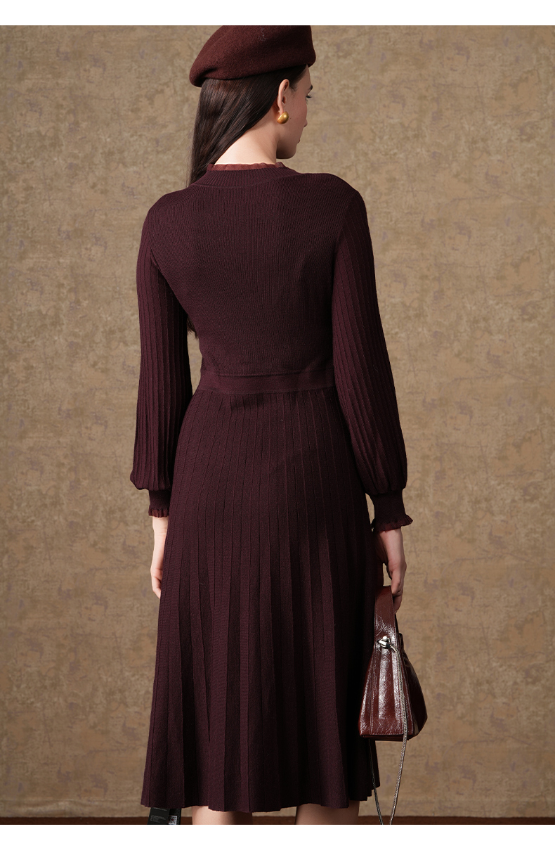 乔万尼复古收腰木耳领显瘦针织打底羊毛长裙EI4M621