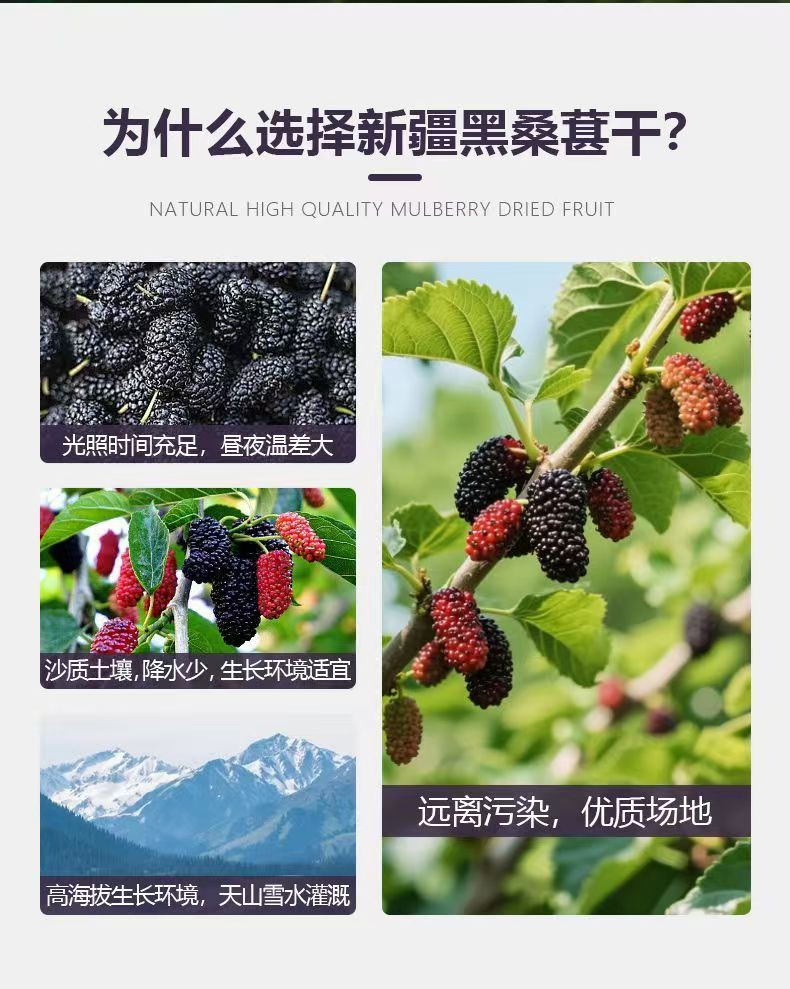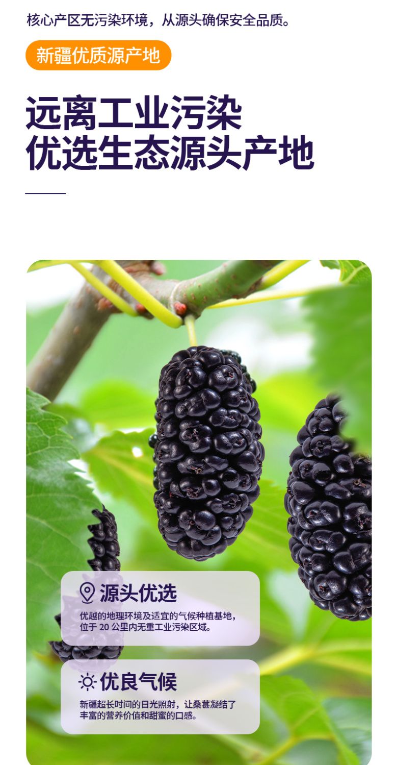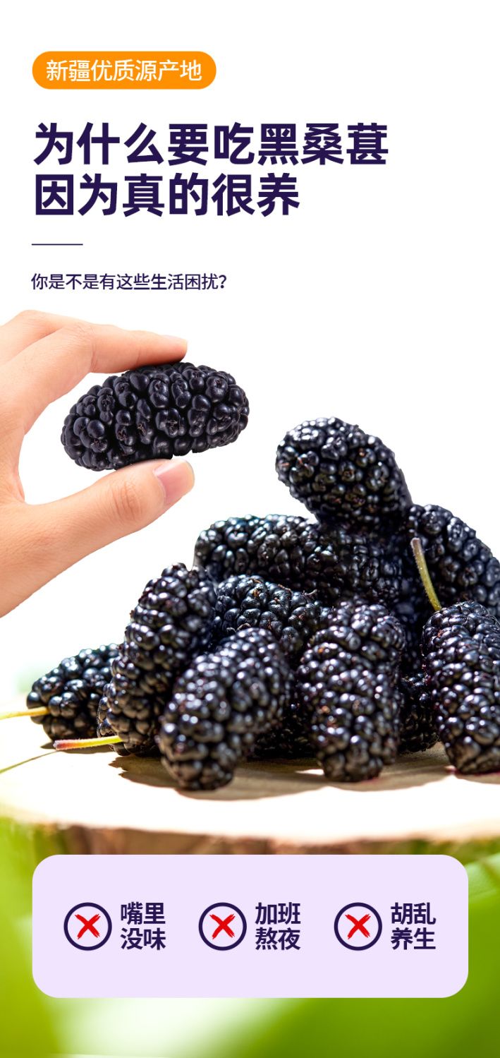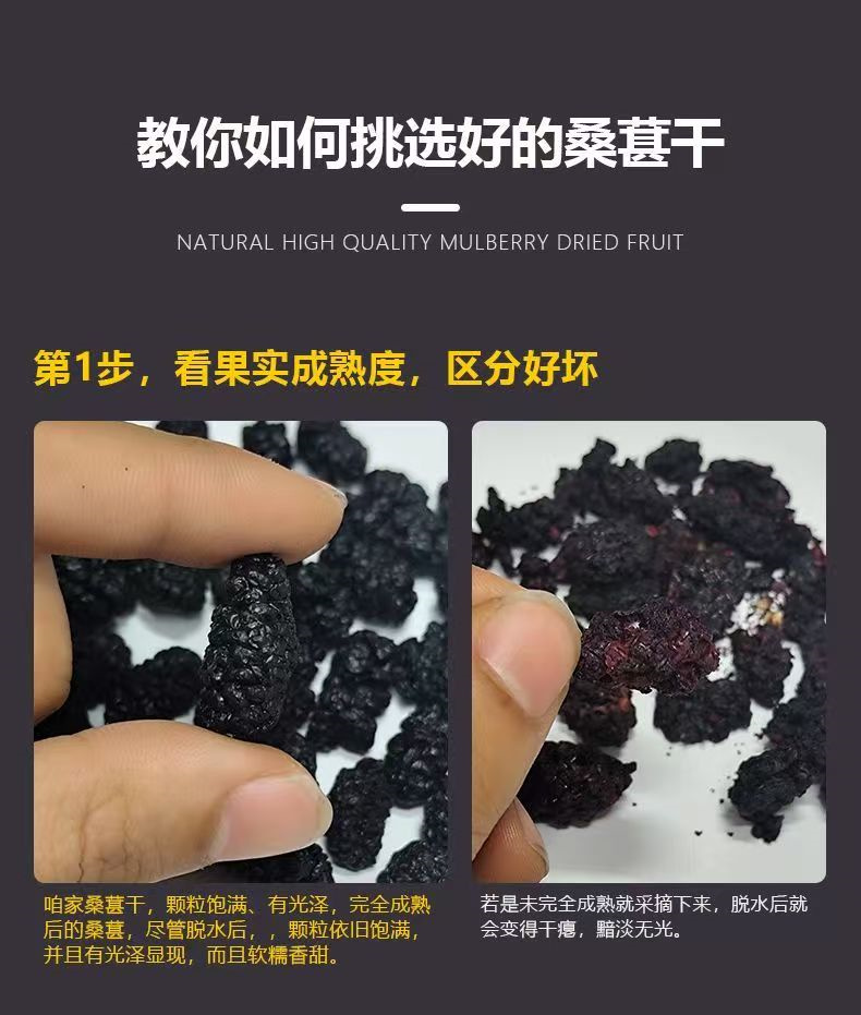 桑葚干新疆免洗无沙黑桑葚干桑椹子头茬大果 手工选择 直接嚼着吃
