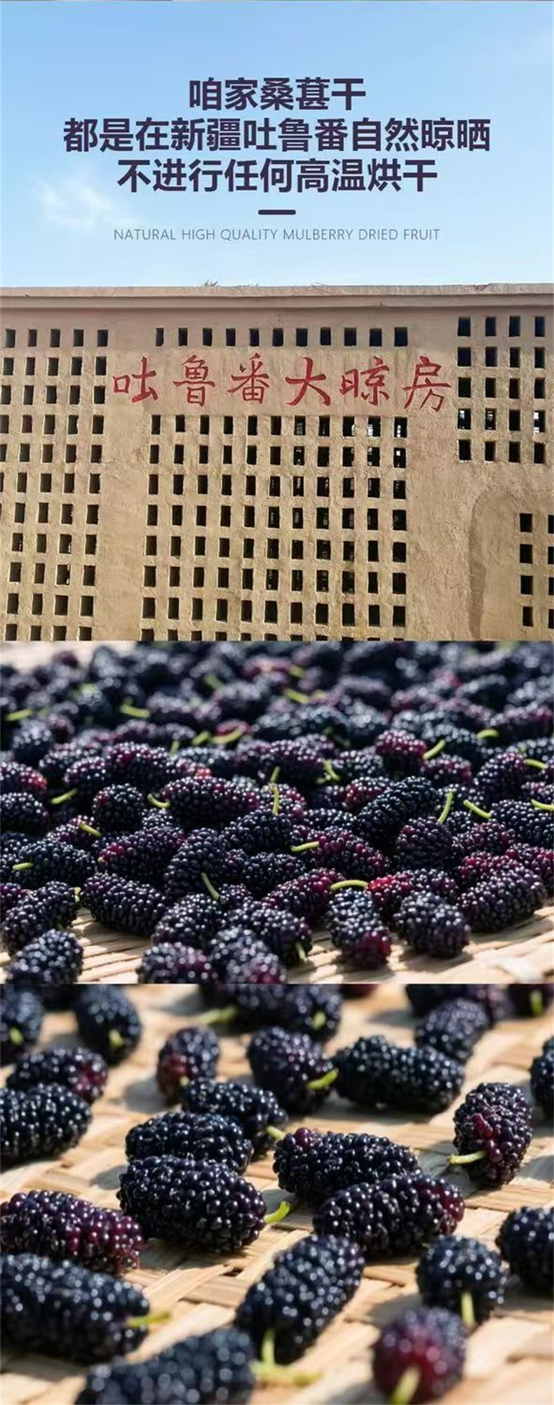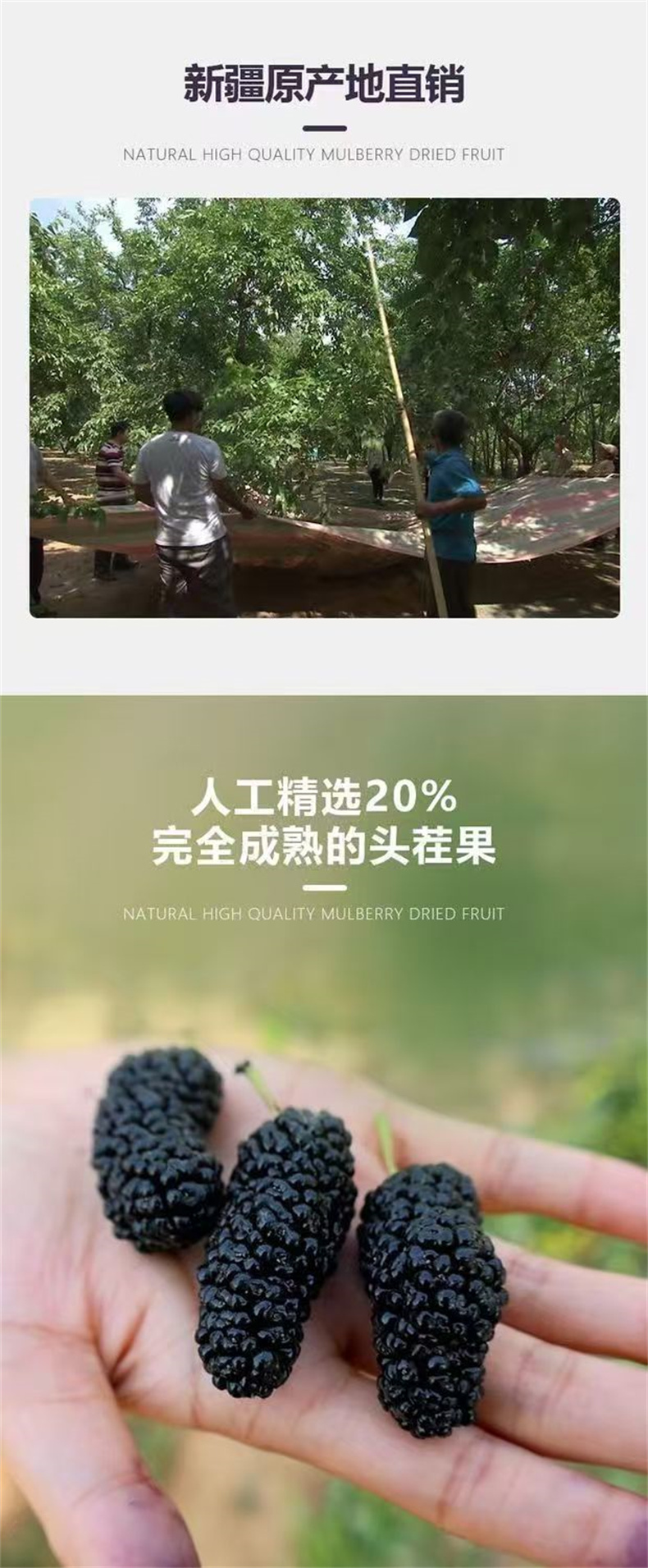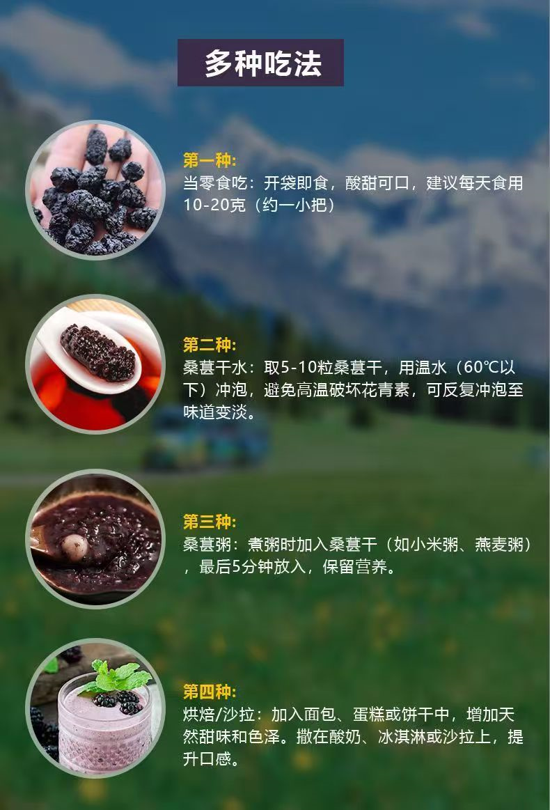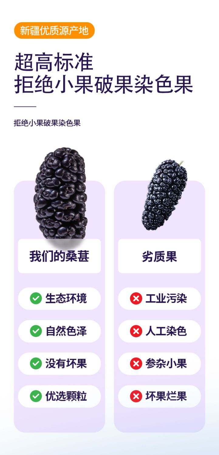 桑葚干新疆免洗无沙黑桑葚干桑椹子头茬大果 手工选择 直接嚼着吃