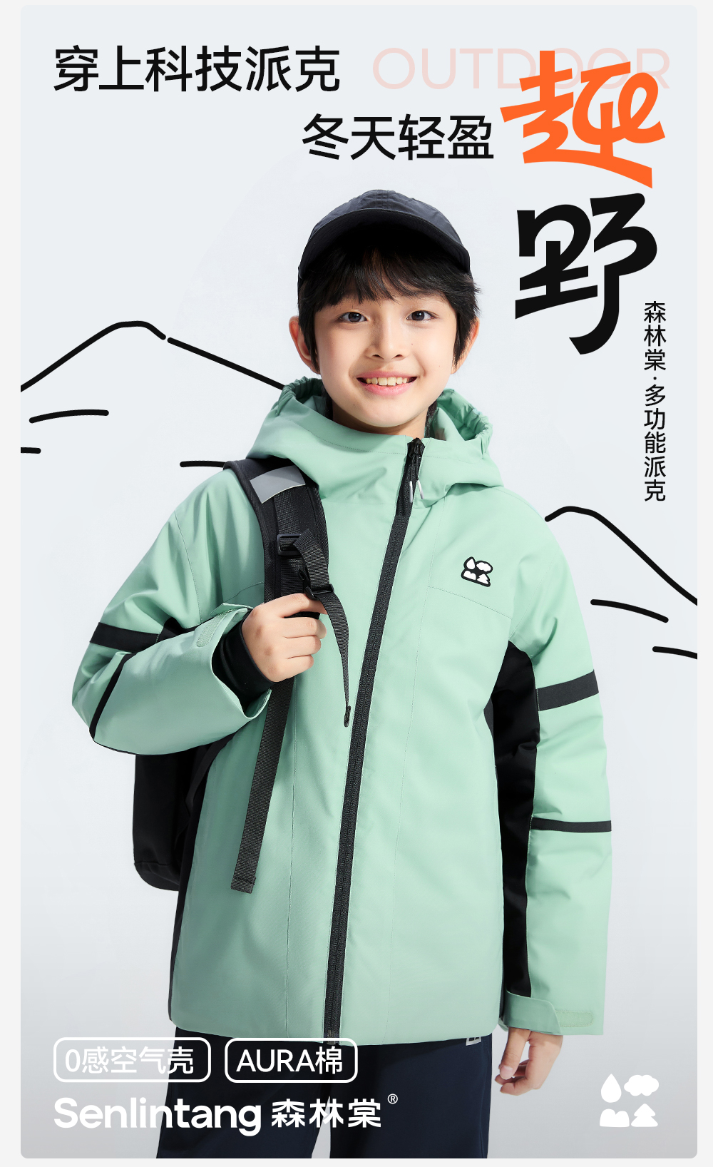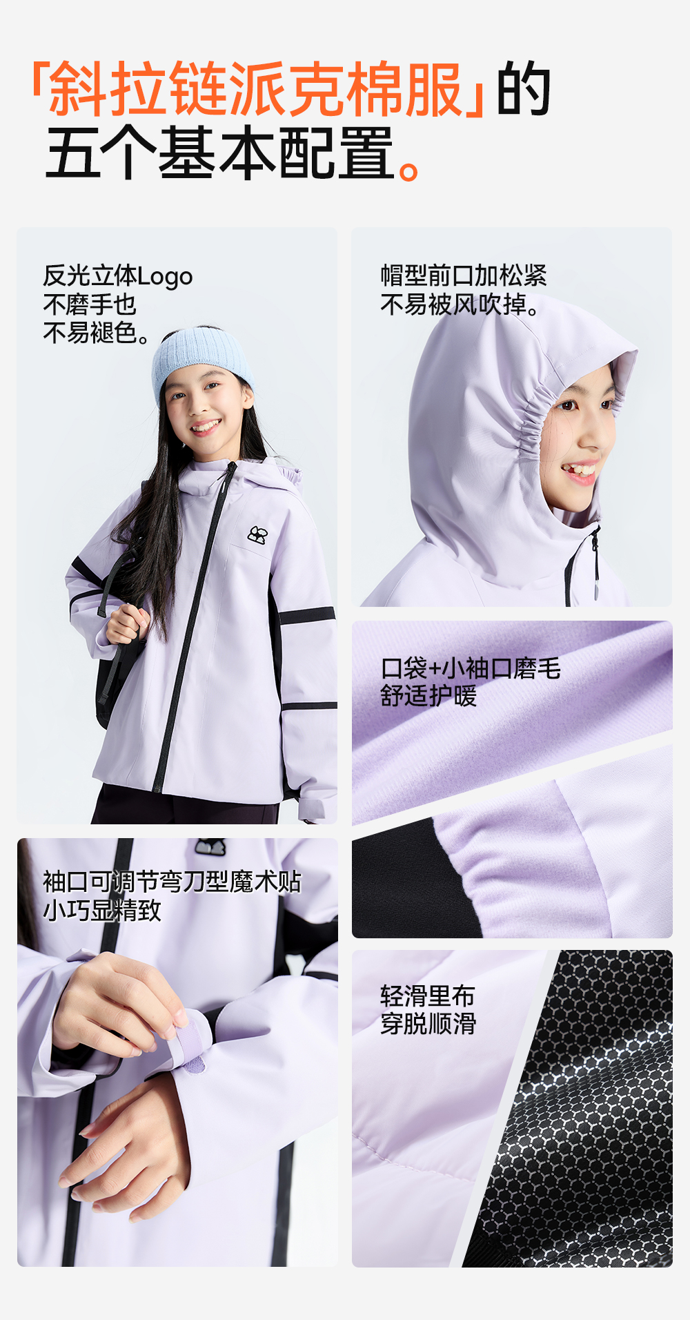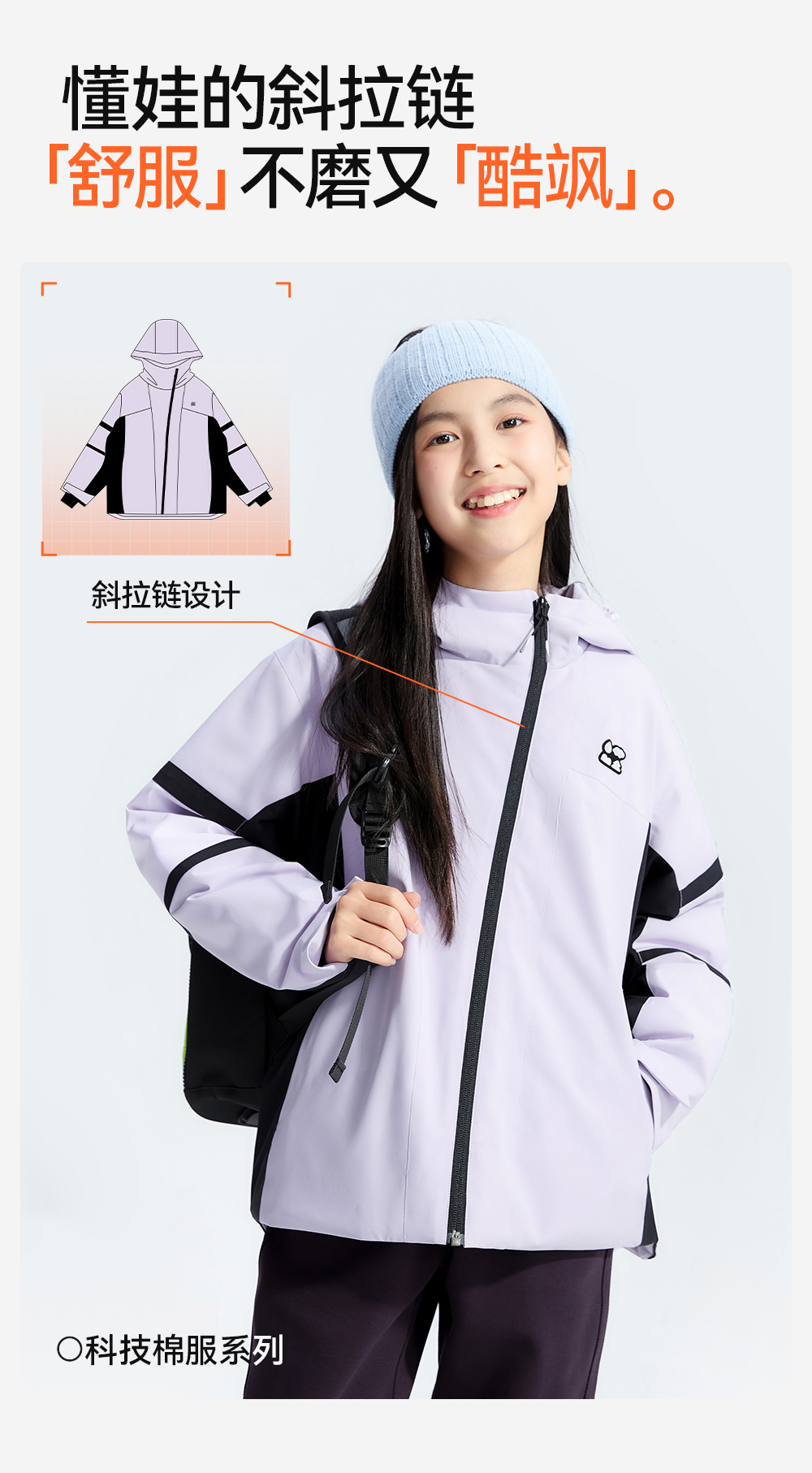 【斜拉链派克棉服外套】森林棠25冬季新款儿童户外轻盈保暖拼色连帽棉服81453011