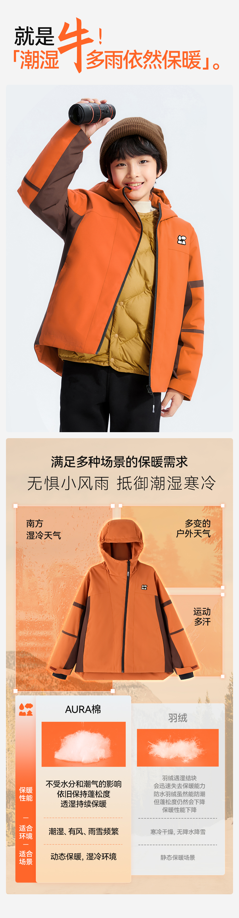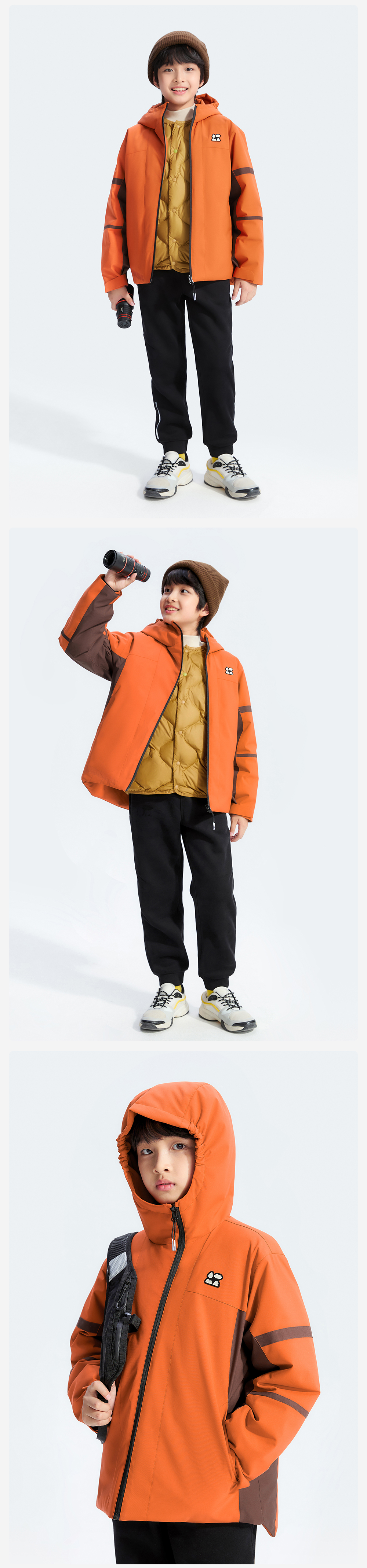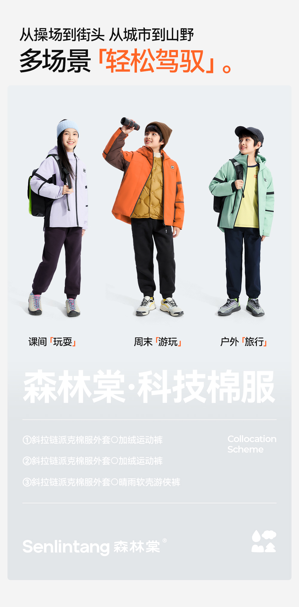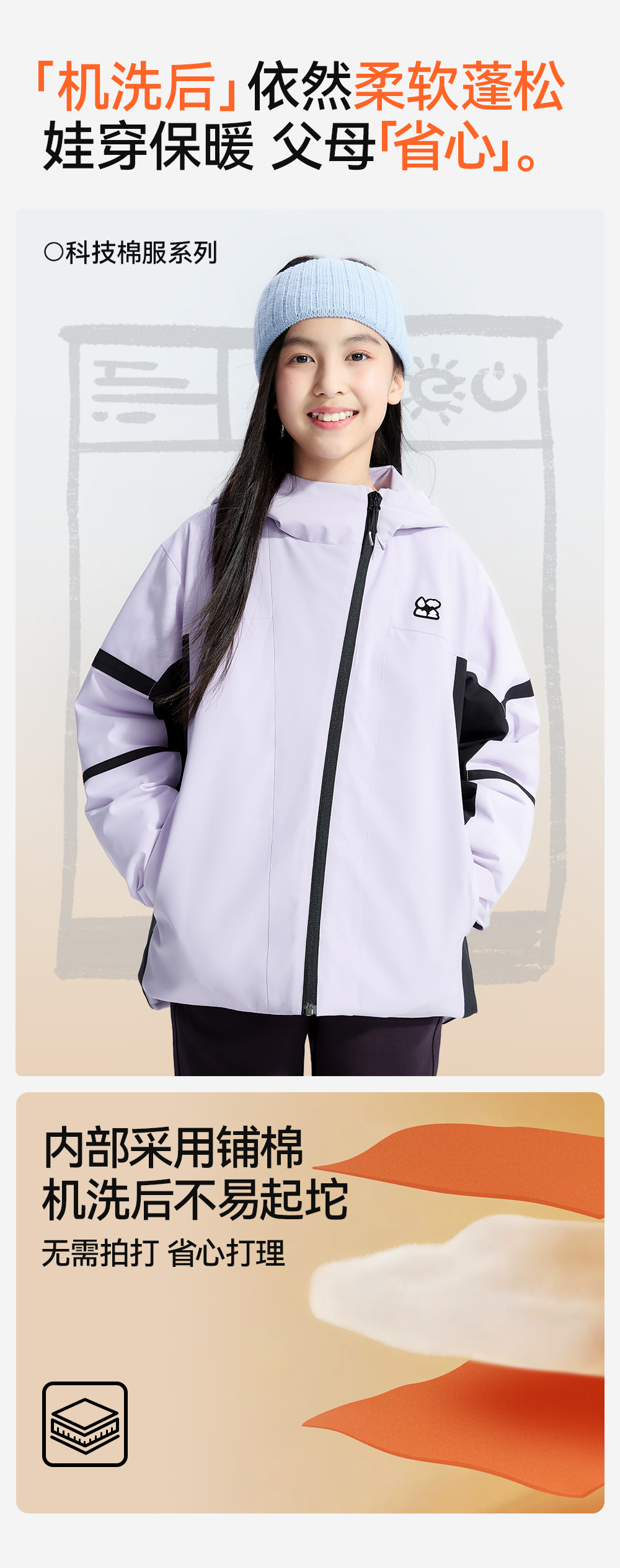 【斜拉链派克棉服外套】森林棠25冬季新款儿童户外轻盈保暖拼色连帽棉服81453011