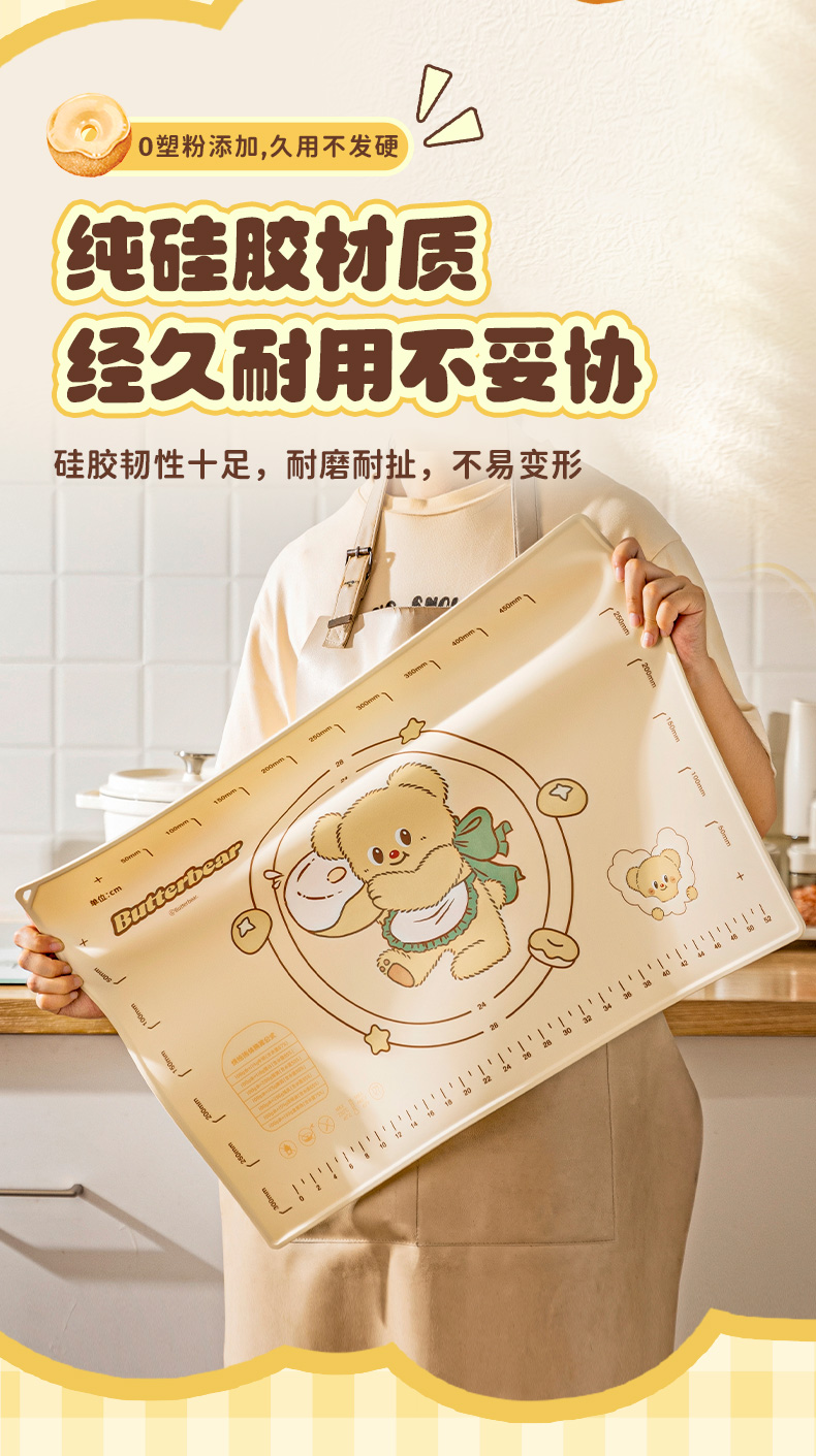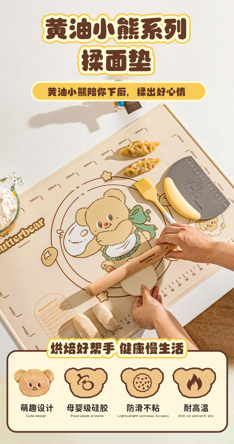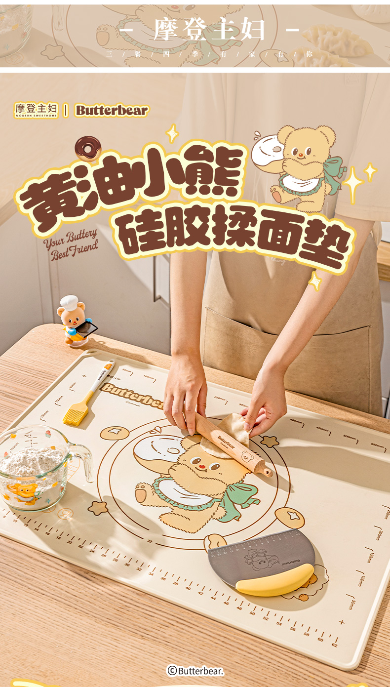 摩登主妇黄油小熊硅胶揉面垫食品级面板烘焙工具加厚擀面垫