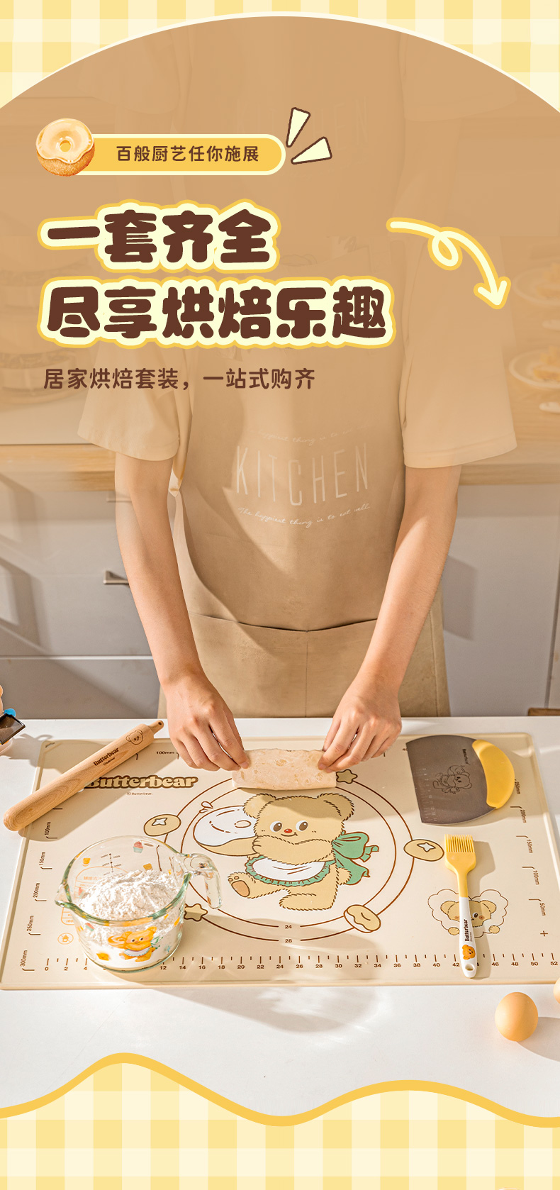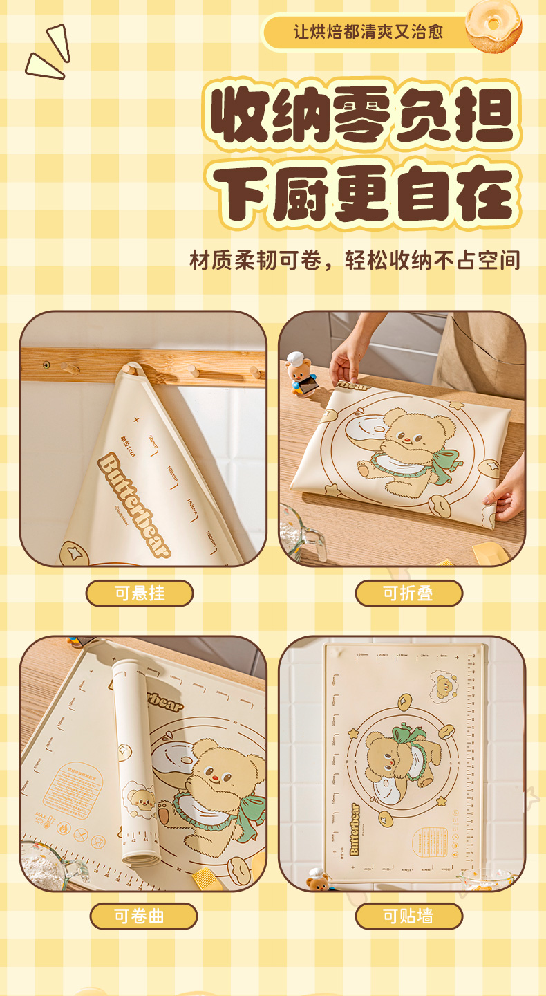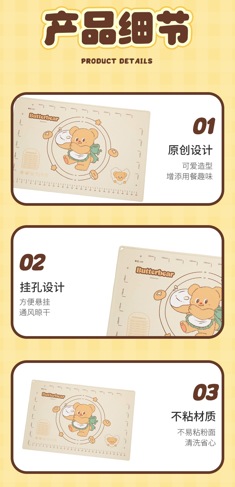 摩登主妇黄油小熊硅胶揉面垫食品级面板烘焙工具加厚擀面垫