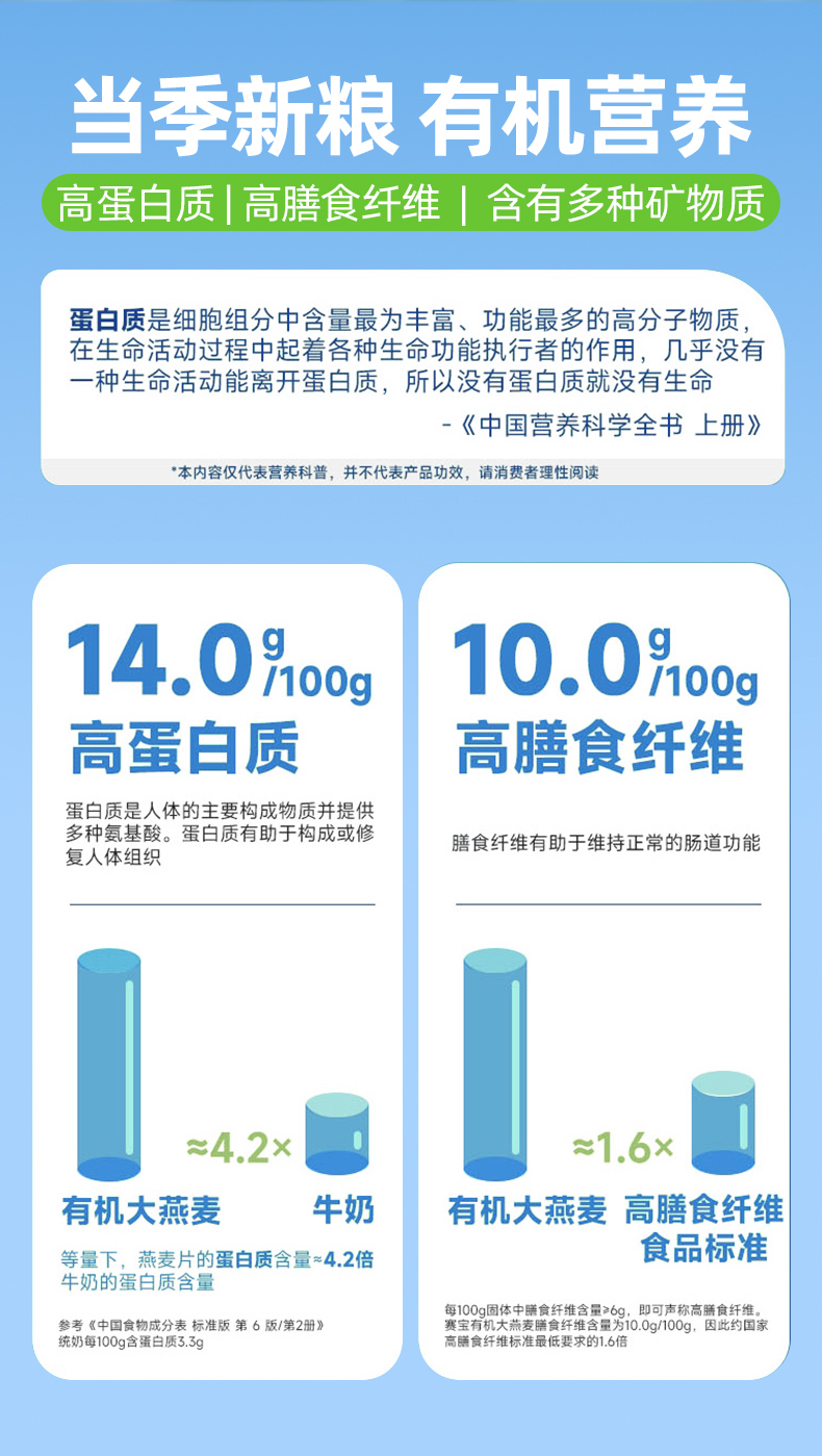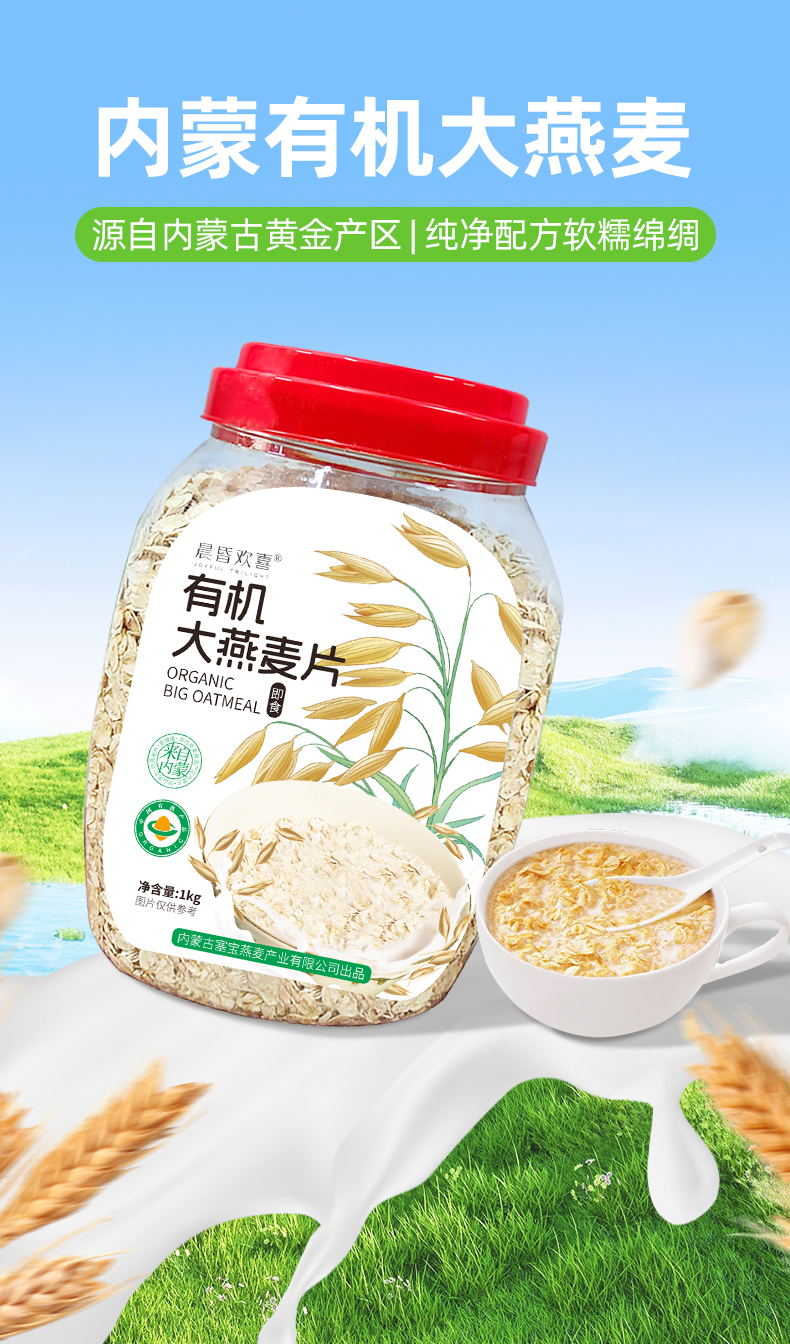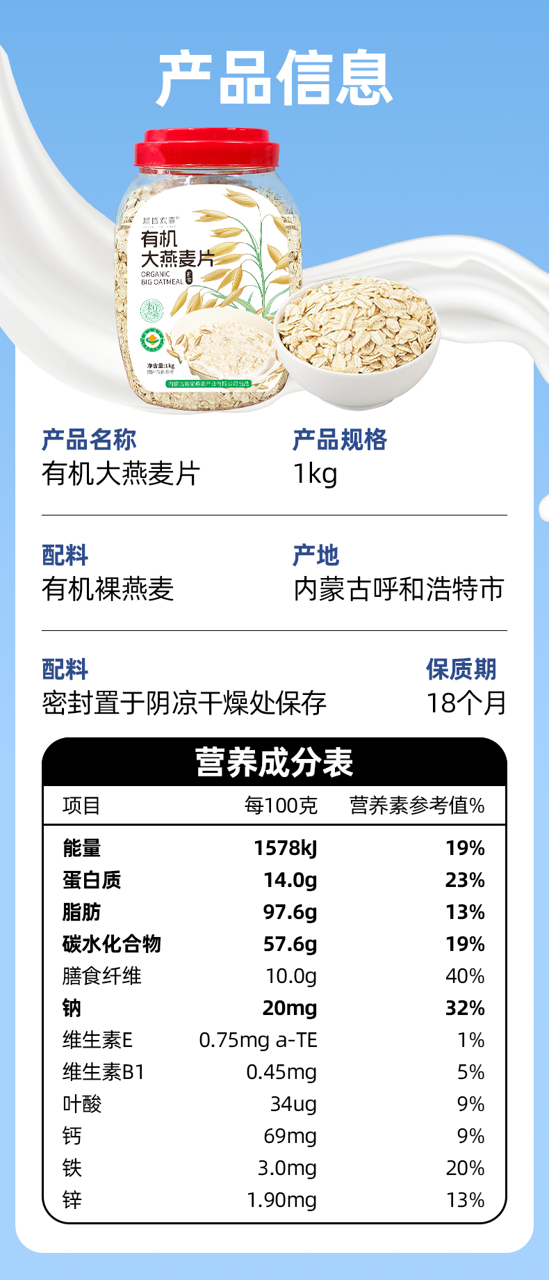 【塞宝有机大燕麦片1kg/桶】绿色有机双认证,全程有机种植,配料干净0添加
