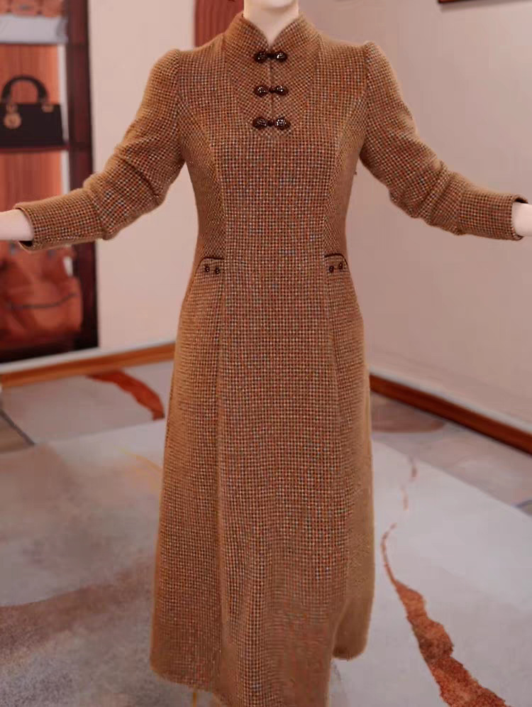 QYM C538雪花绒复古新中式改良版旗袍裙加厚保暖显瘦连衣裙 商品图3