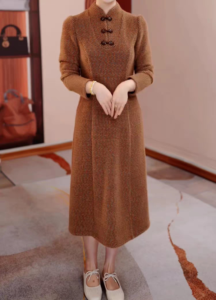 QYM C538雪花绒复古新中式改良版旗袍裙加厚保暖显瘦连衣裙 商品图1