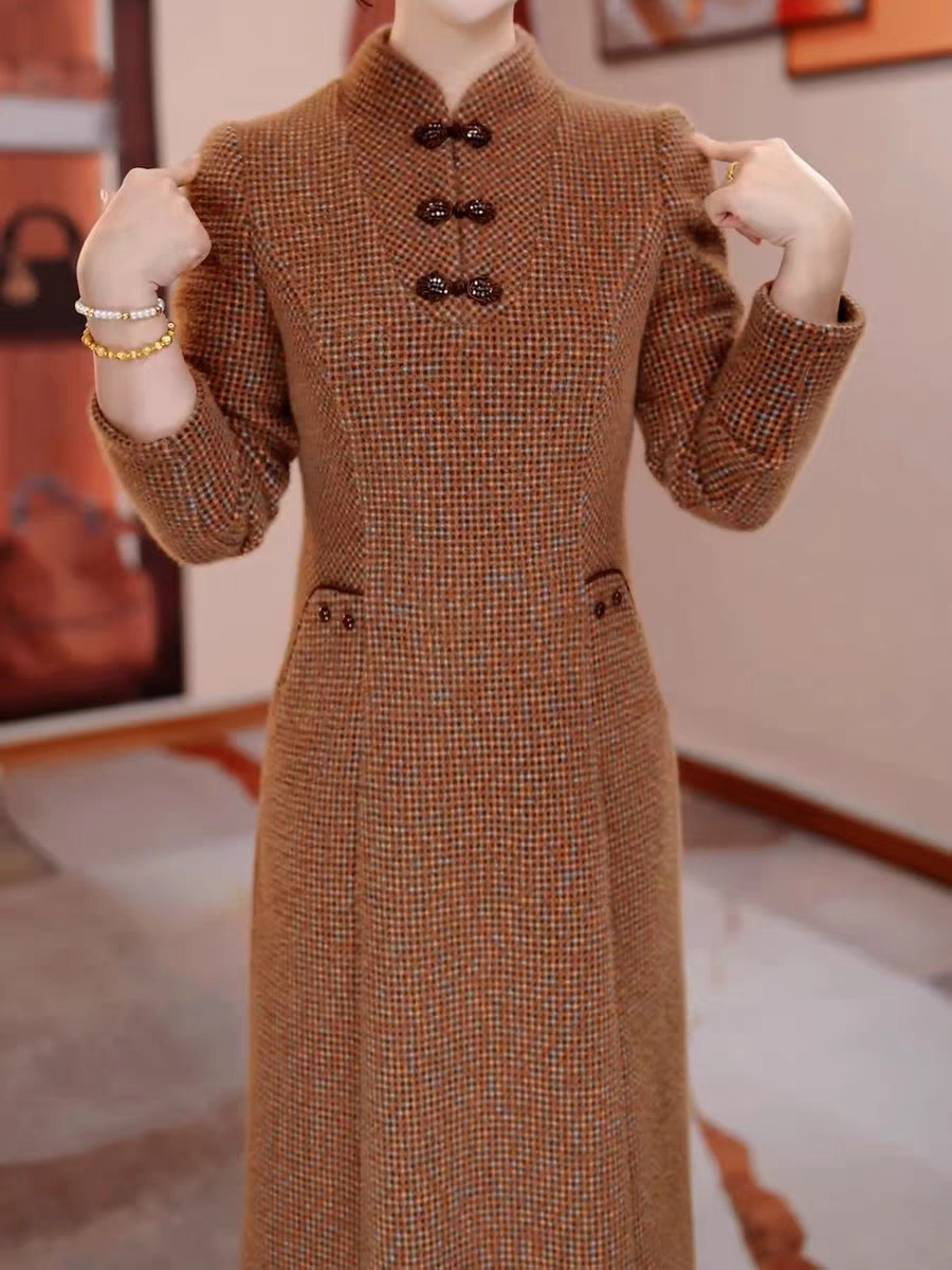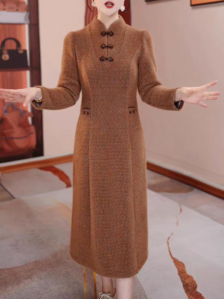 QYM C538雪花绒复古新中式改良版旗袍裙加厚保暖显瘦连衣裙 商品图0