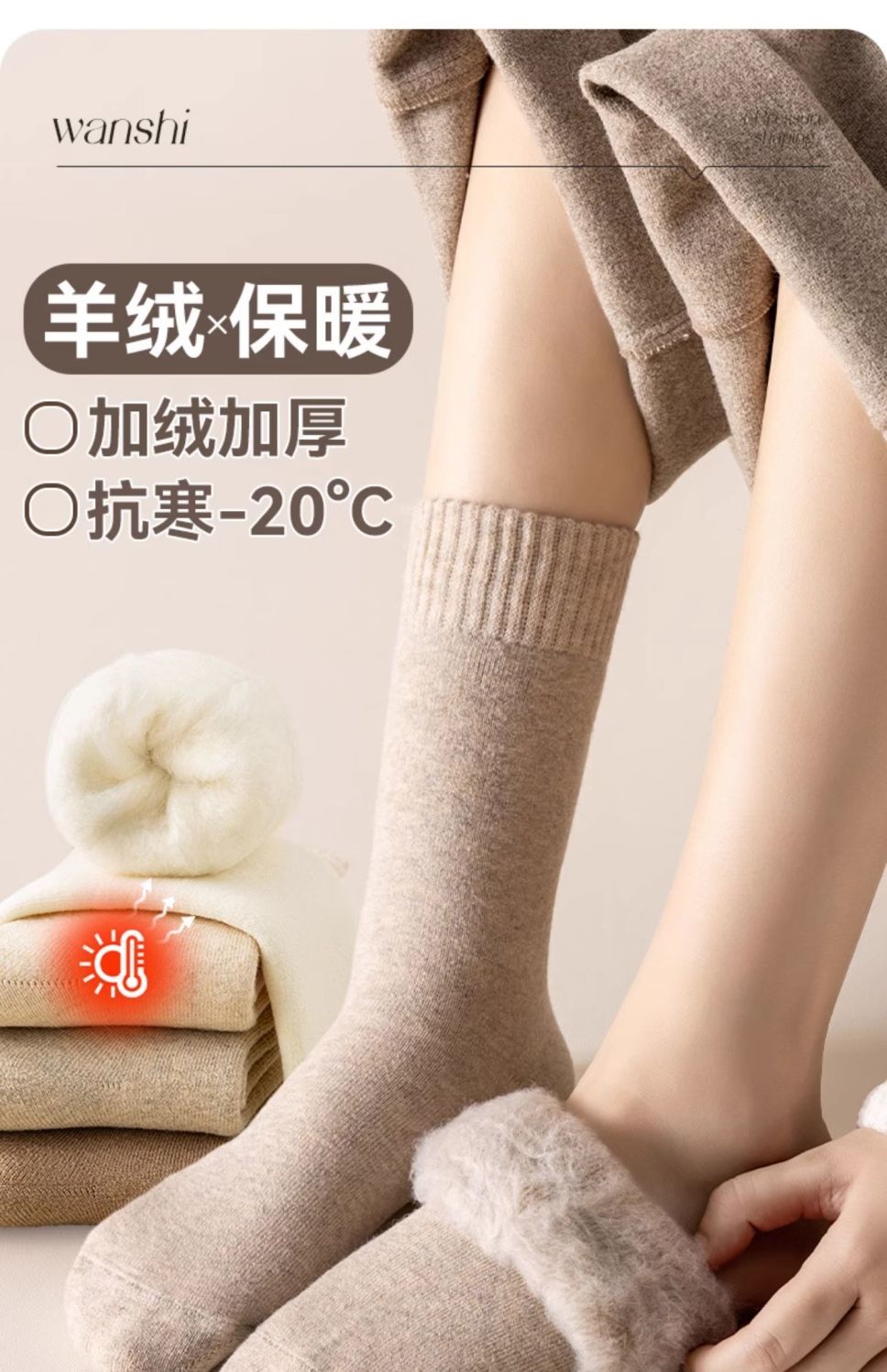 抗寒-20℃ 羊绒×保暖『BANHE板禾美利奴羊毛袜』羊绒保暖 耐磨棉纱 细腻柔软 加宽螺口 腿不勒