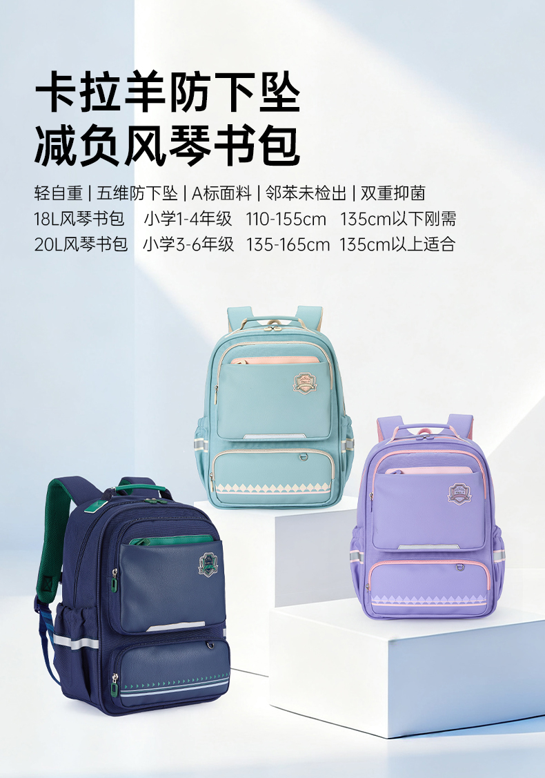 卡拉羊小学生5维减负防下坠风琴书包抑菌大容量双肩背包绘梦系列CX2279+2547