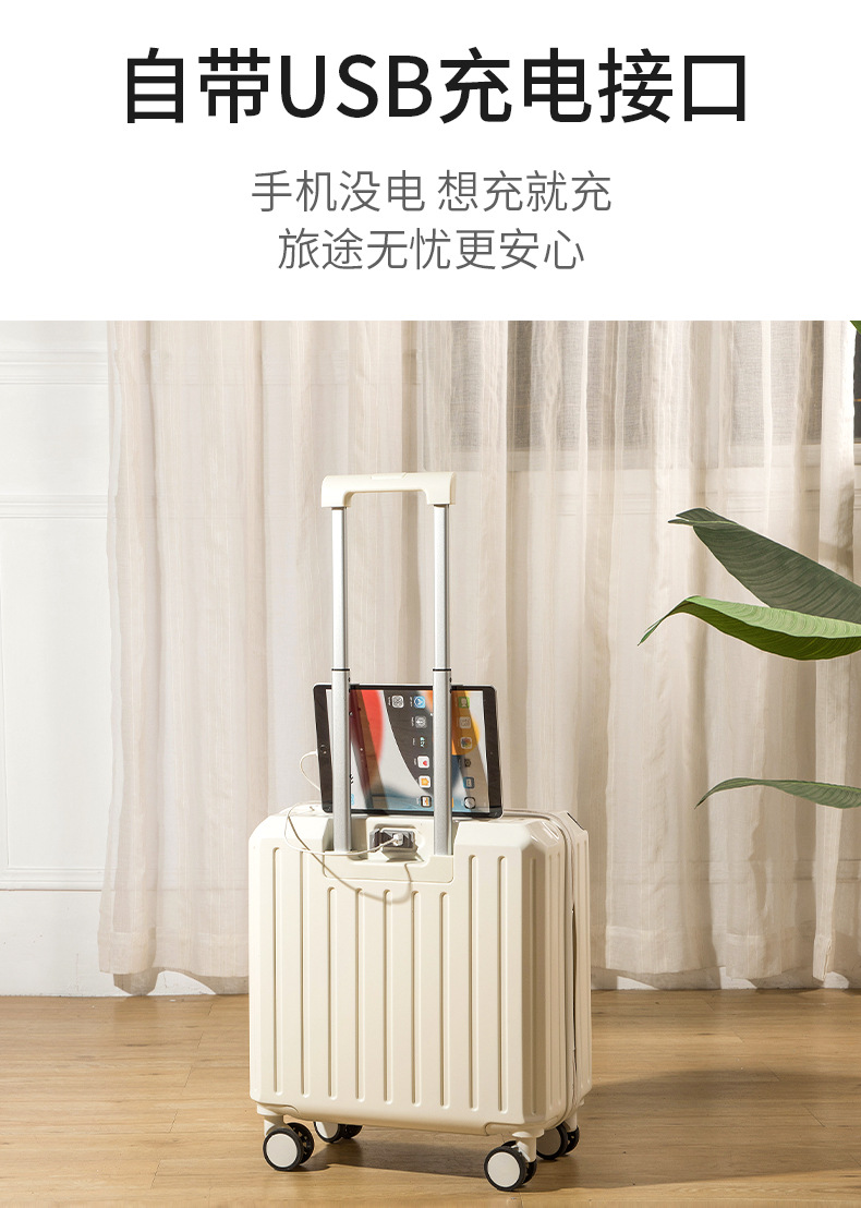 【全新升级,轻盈小巧,专注短途出行】行李箱拉杆箱 18寸可充电登机箱 小型轻便旅行箱 密码箱皮箱子-QQ