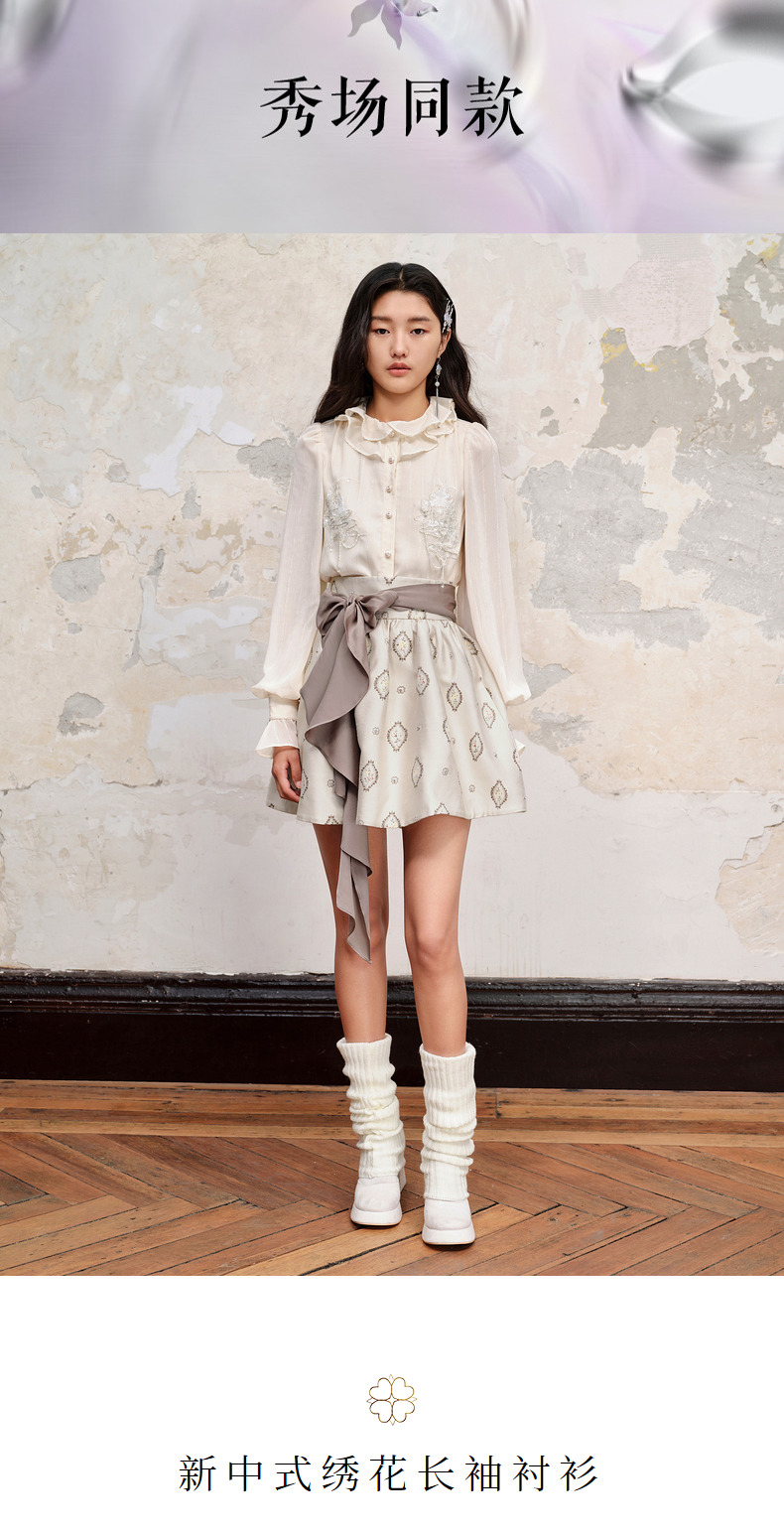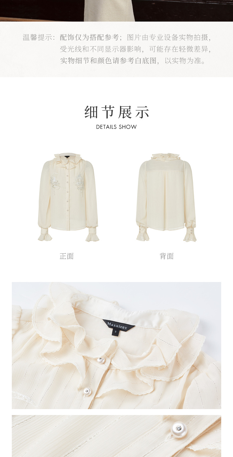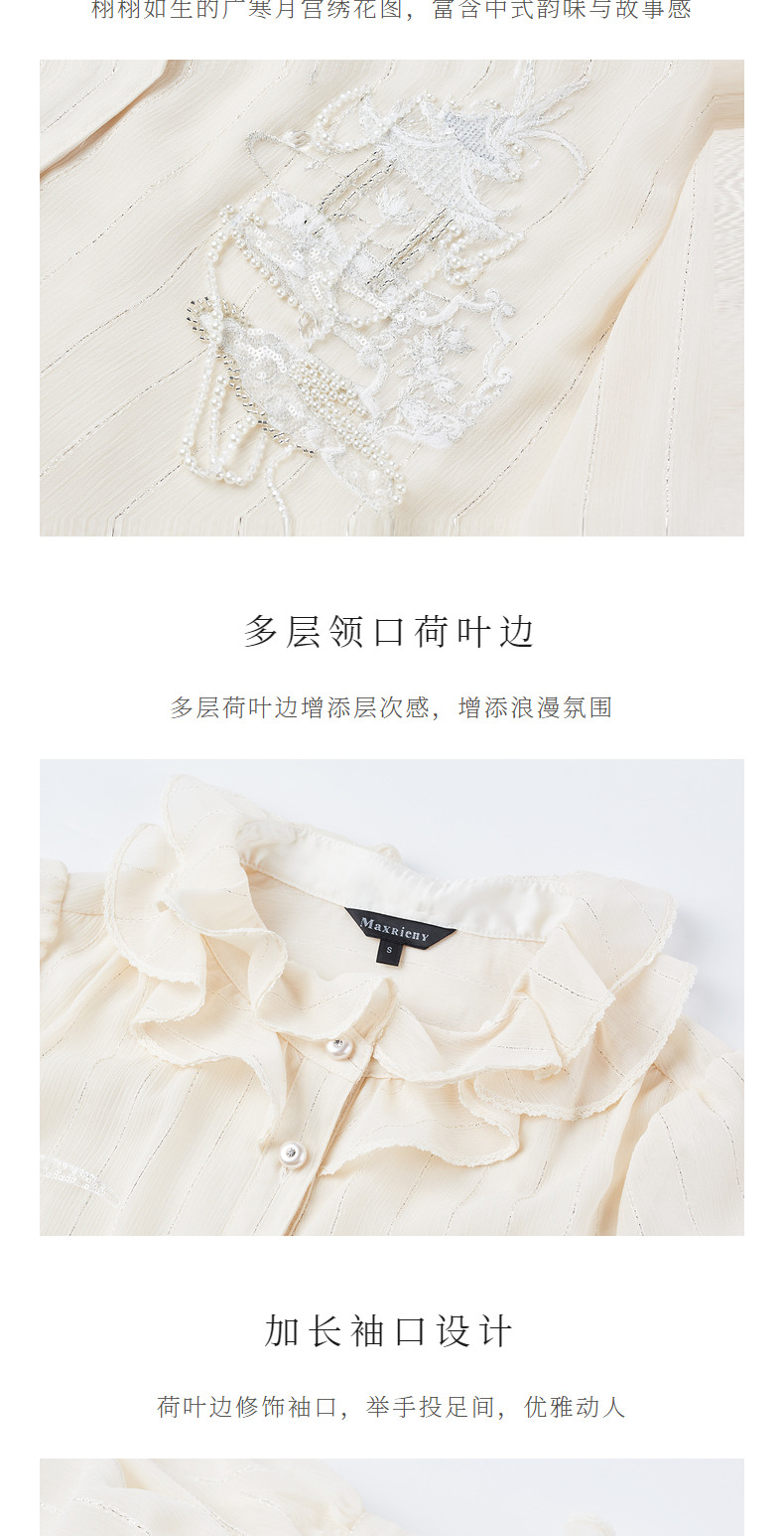 【商场同款】MAXRIENY新中式绣花长袖衬衫精致肌理感雪纺衫上衣女(货号:MC88TP515)