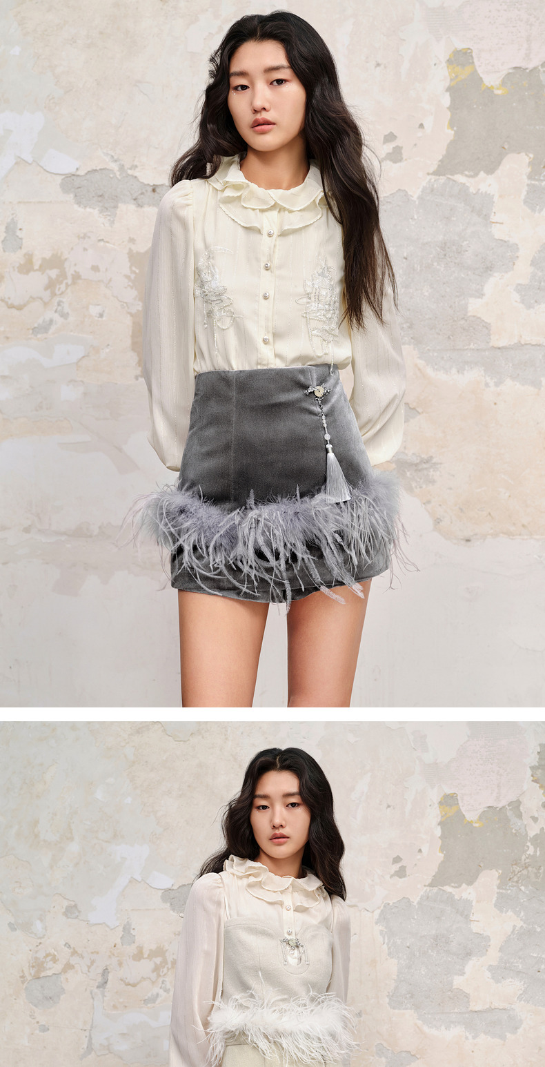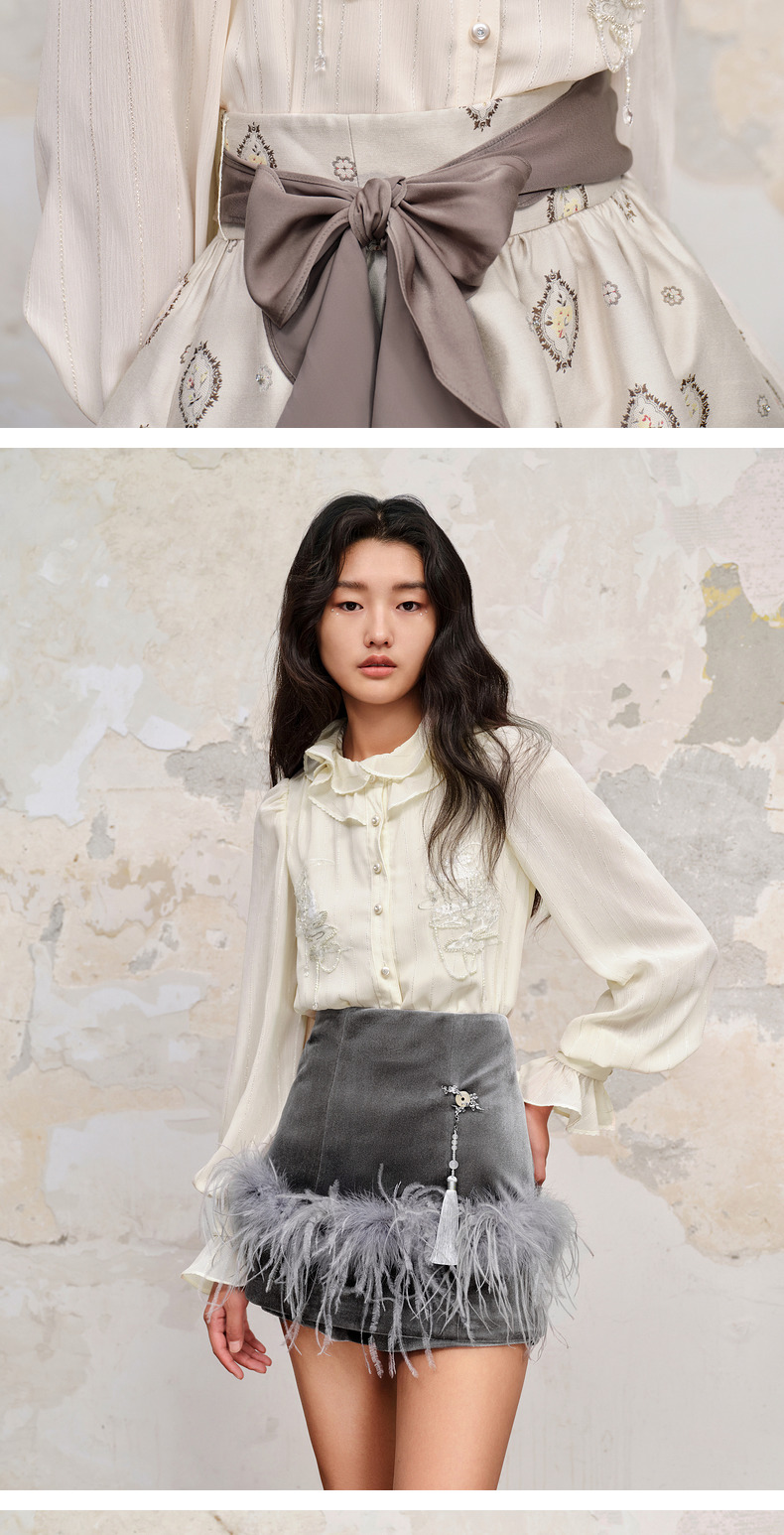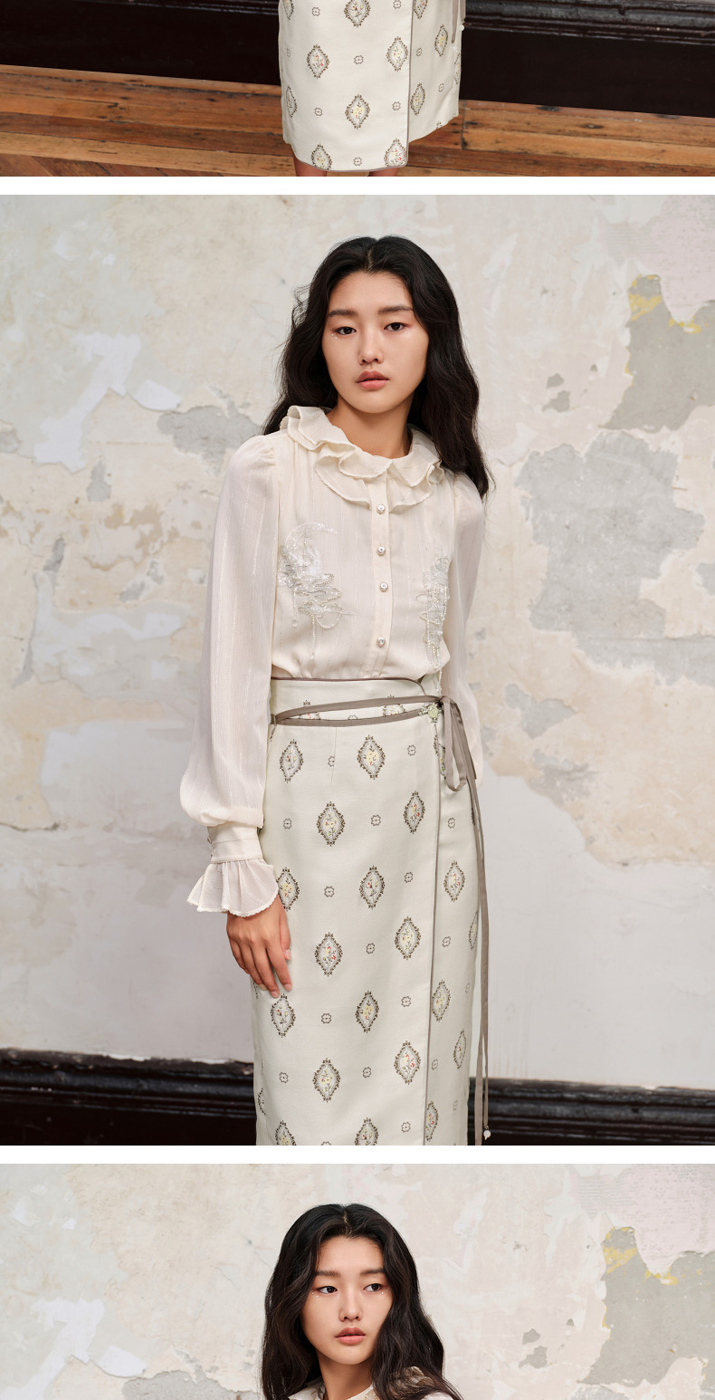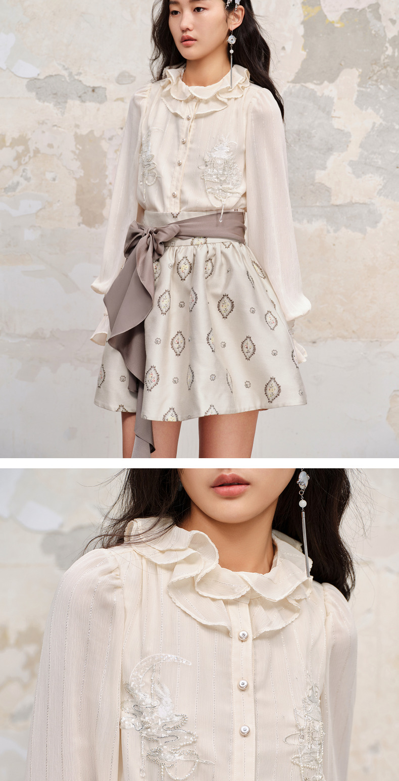 【商场同款】MAXRIENY新中式绣花长袖衬衫精致肌理感雪纺衫上衣女(货号:MC88TP515)