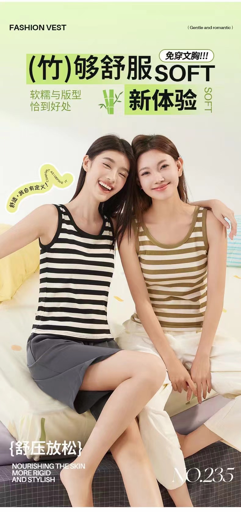 【品名】LS竹纤维女士天丝竹棉罩杯款背心235