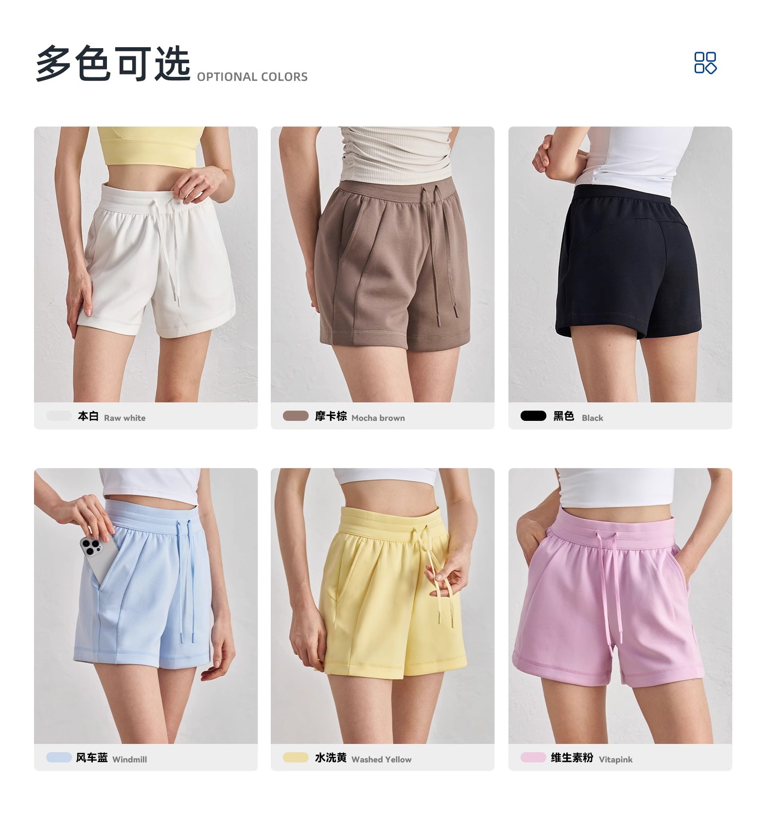 【3~5天发货】跃牌【美度空间】系列 春夏新款空气层宽松简约瑜伽短裤抽绳显瘦四分裤ADDK52025