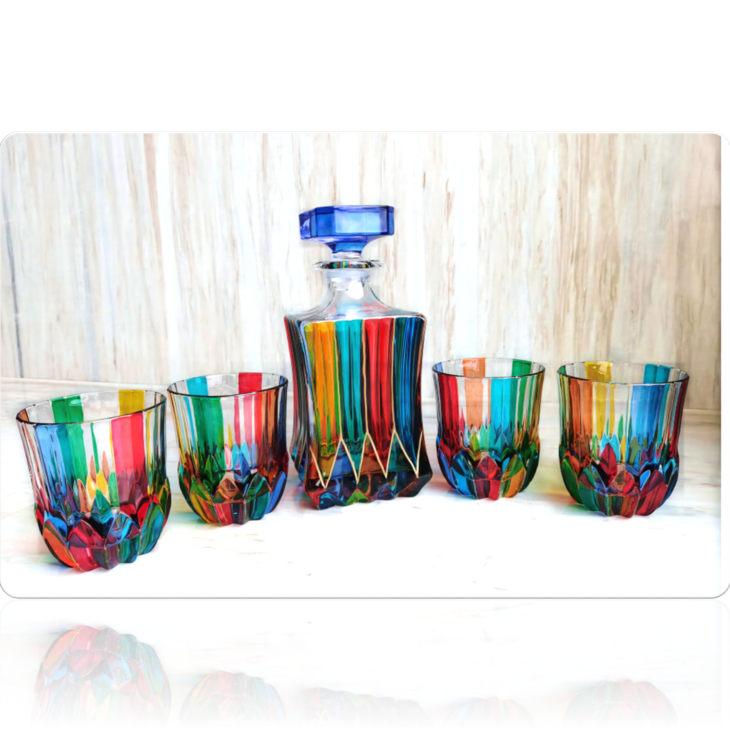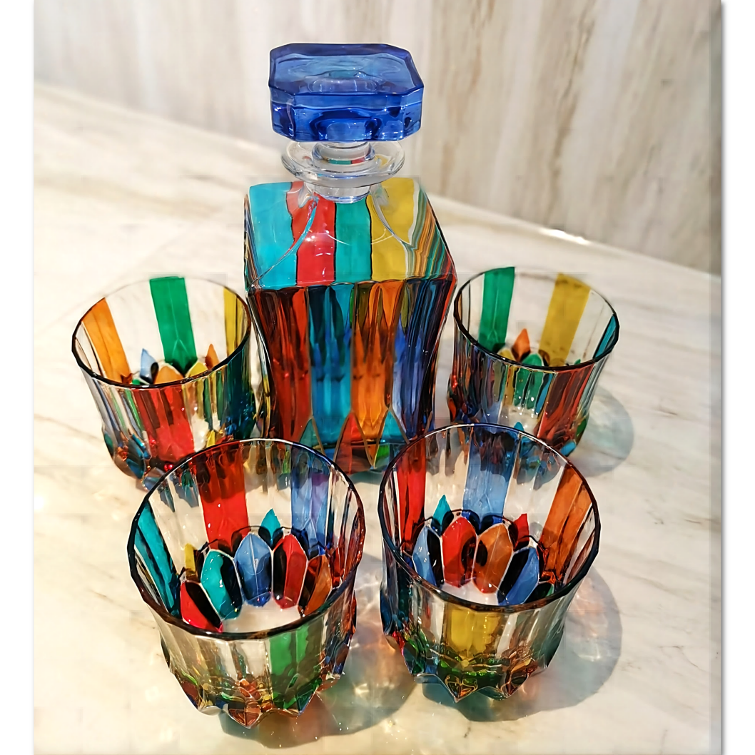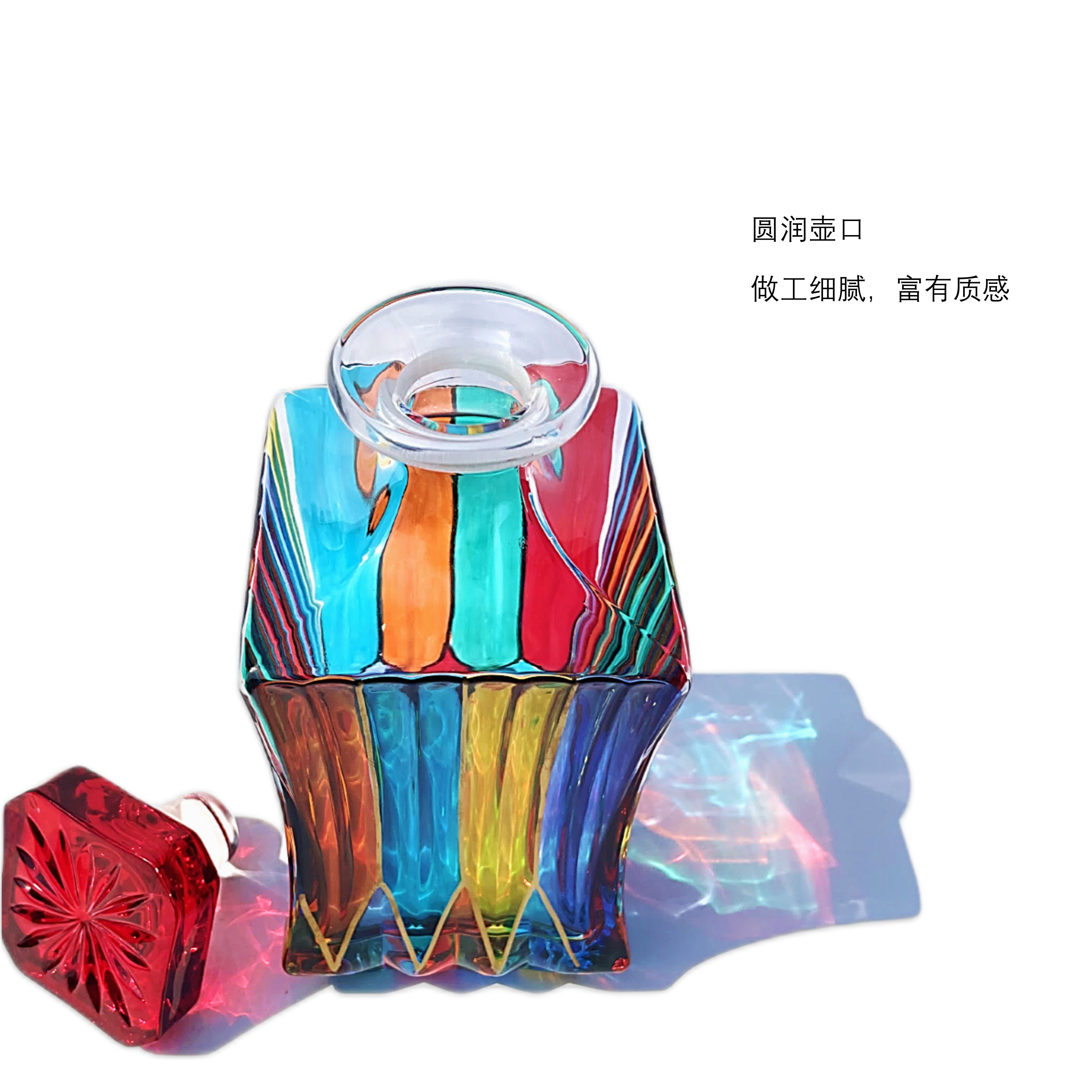 【钻石系列】新款ZECCHIN 意大利进口玫瑰钻石酒壶820ml| 彩色水晶手工玻璃杯珐琅彩酒杯酒壶