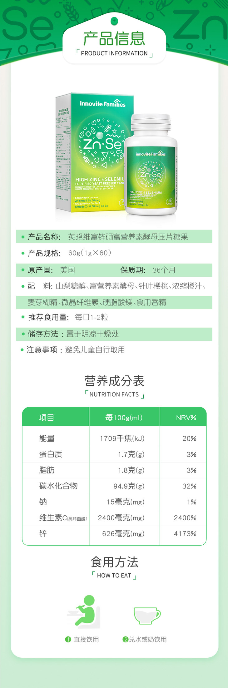 英珞维富锌硒富营养酵母压片糖果 60粒