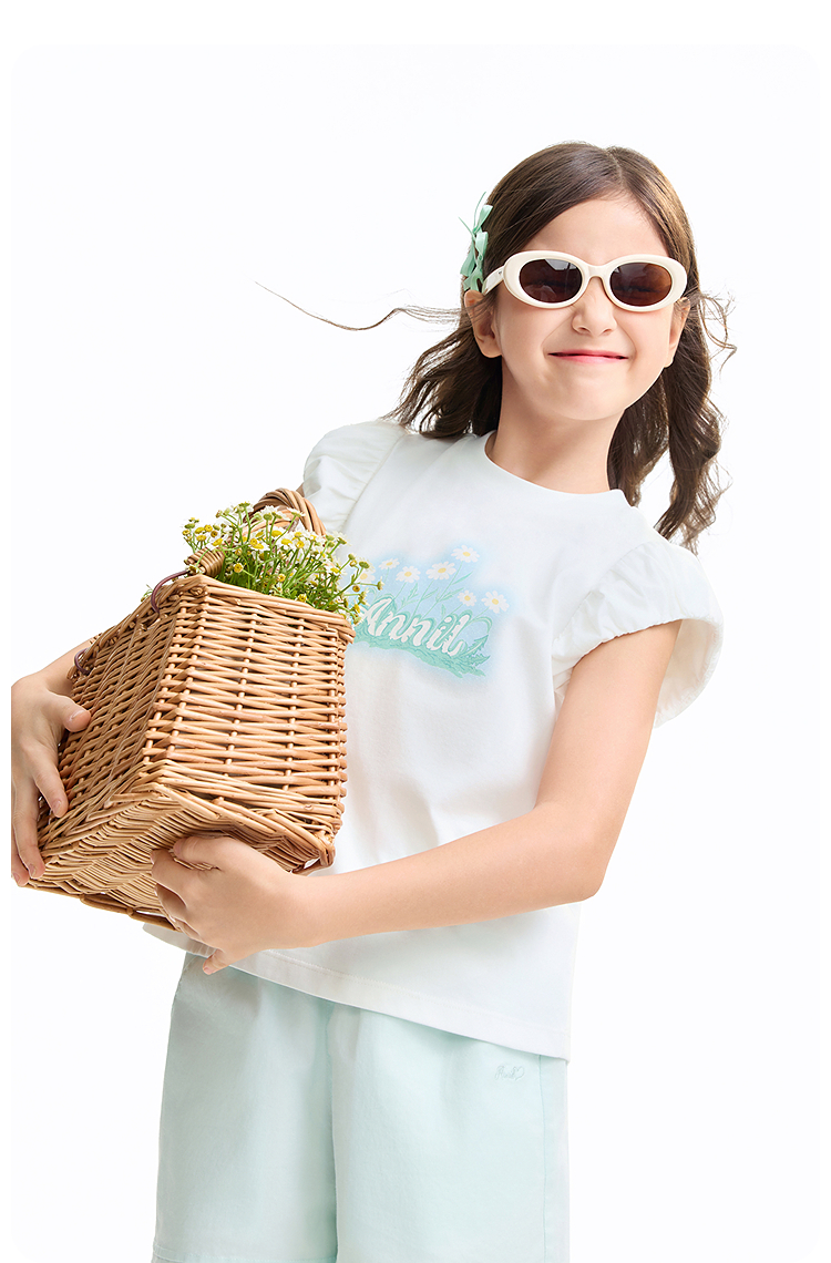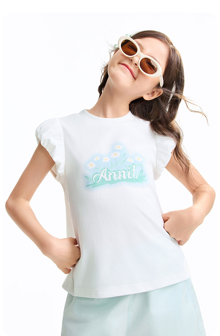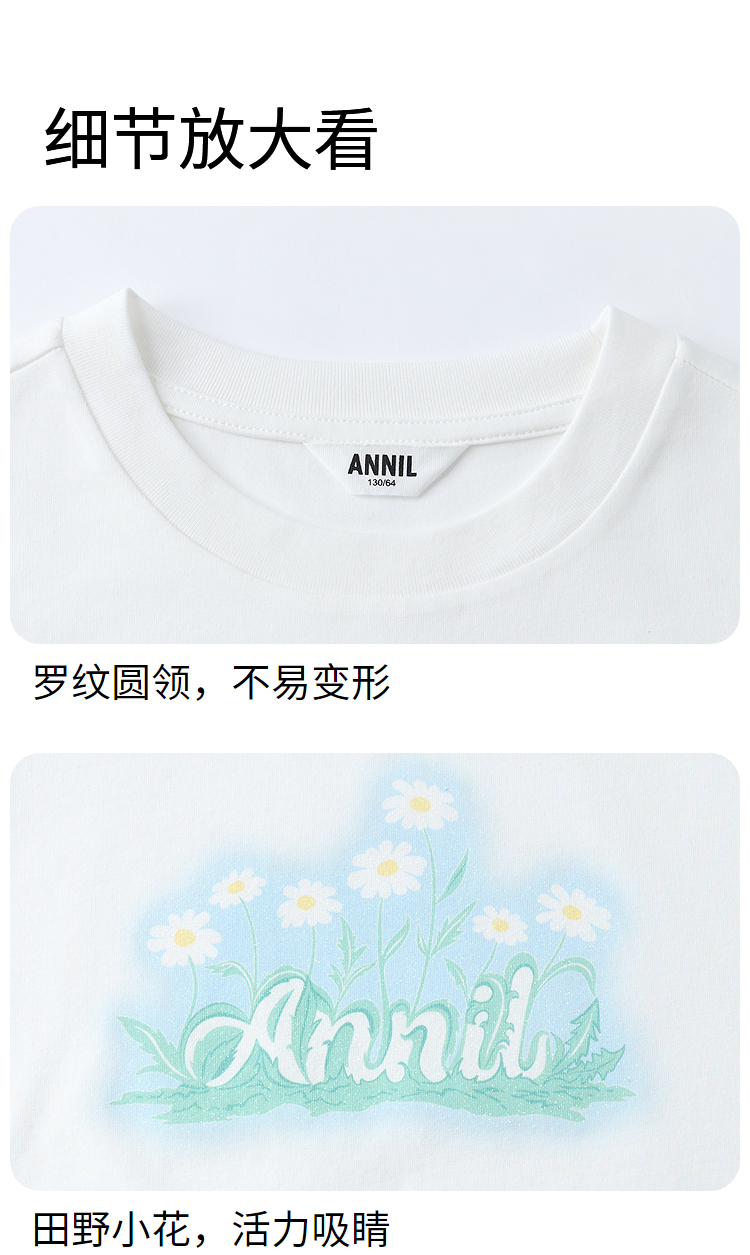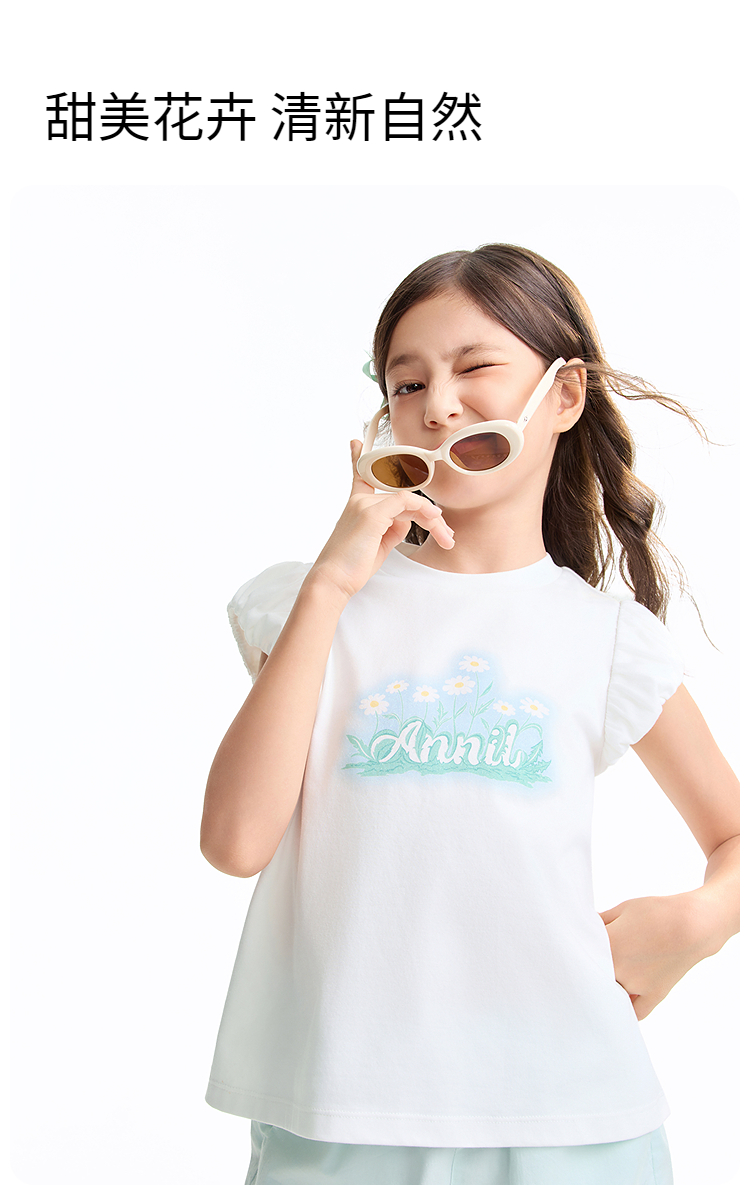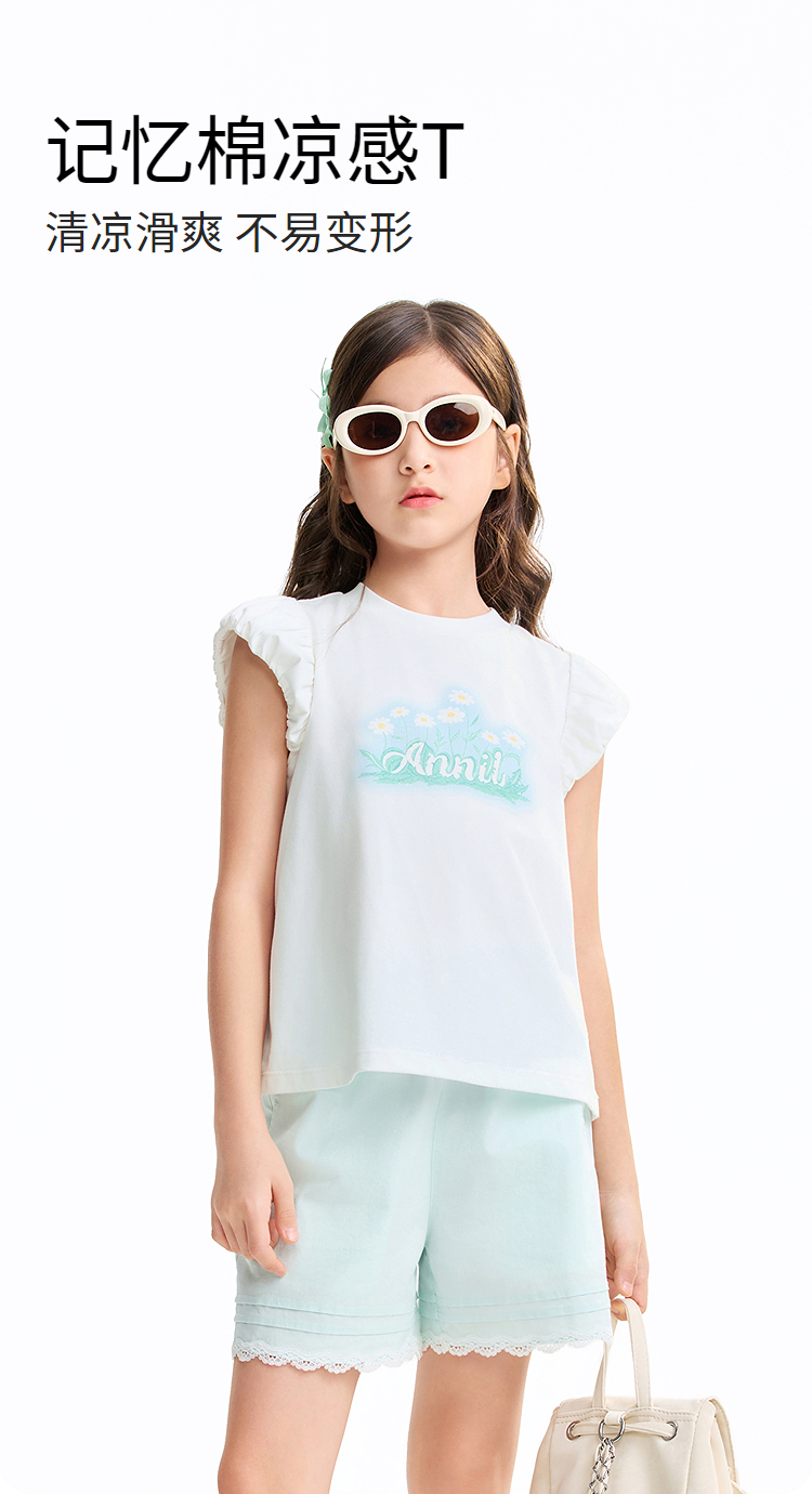 女童圆领短袖针织衫夏季新款安奈儿童装EG621636