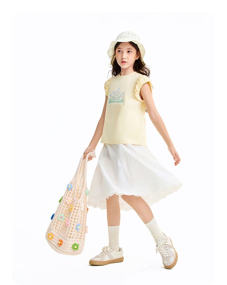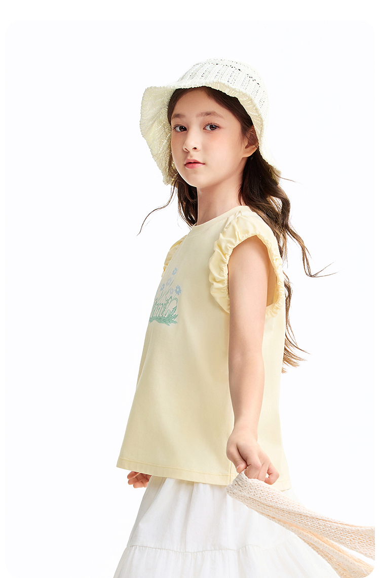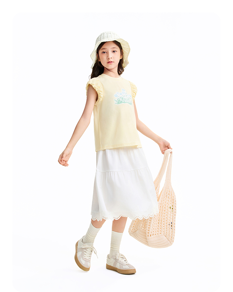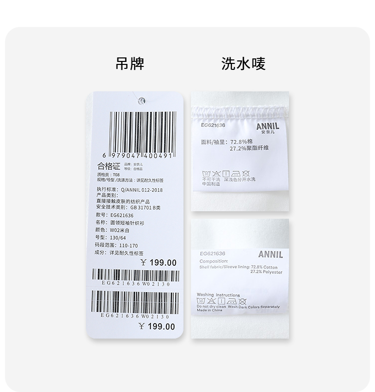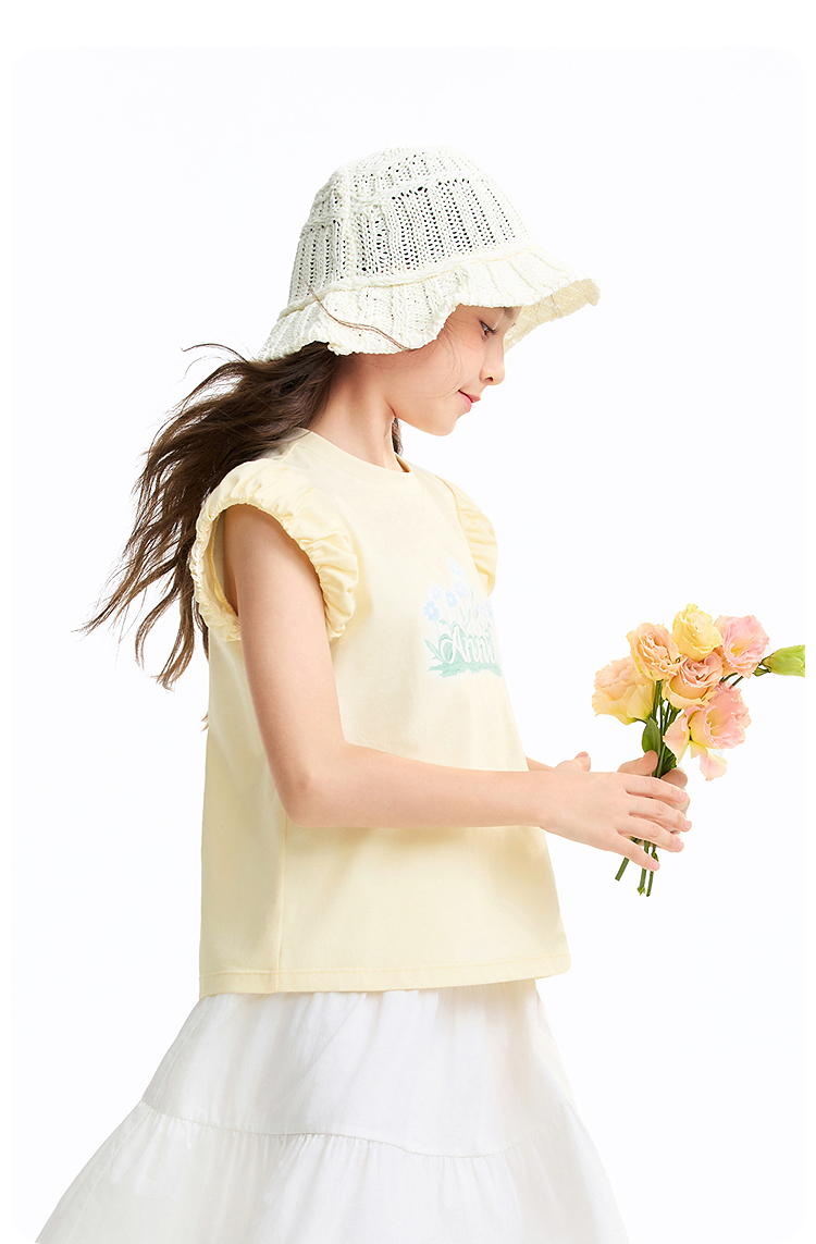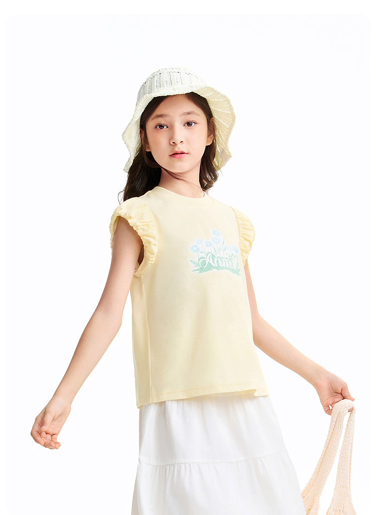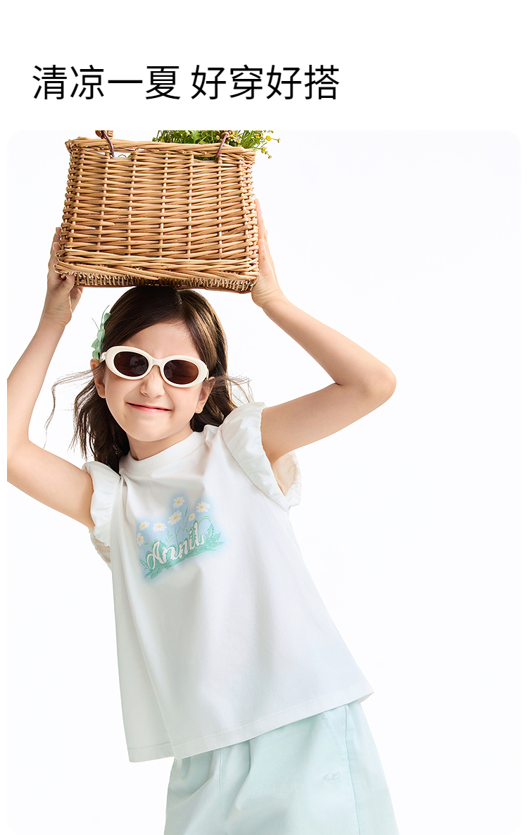 女童圆领短袖针织衫夏季新款安奈儿童装EG621636