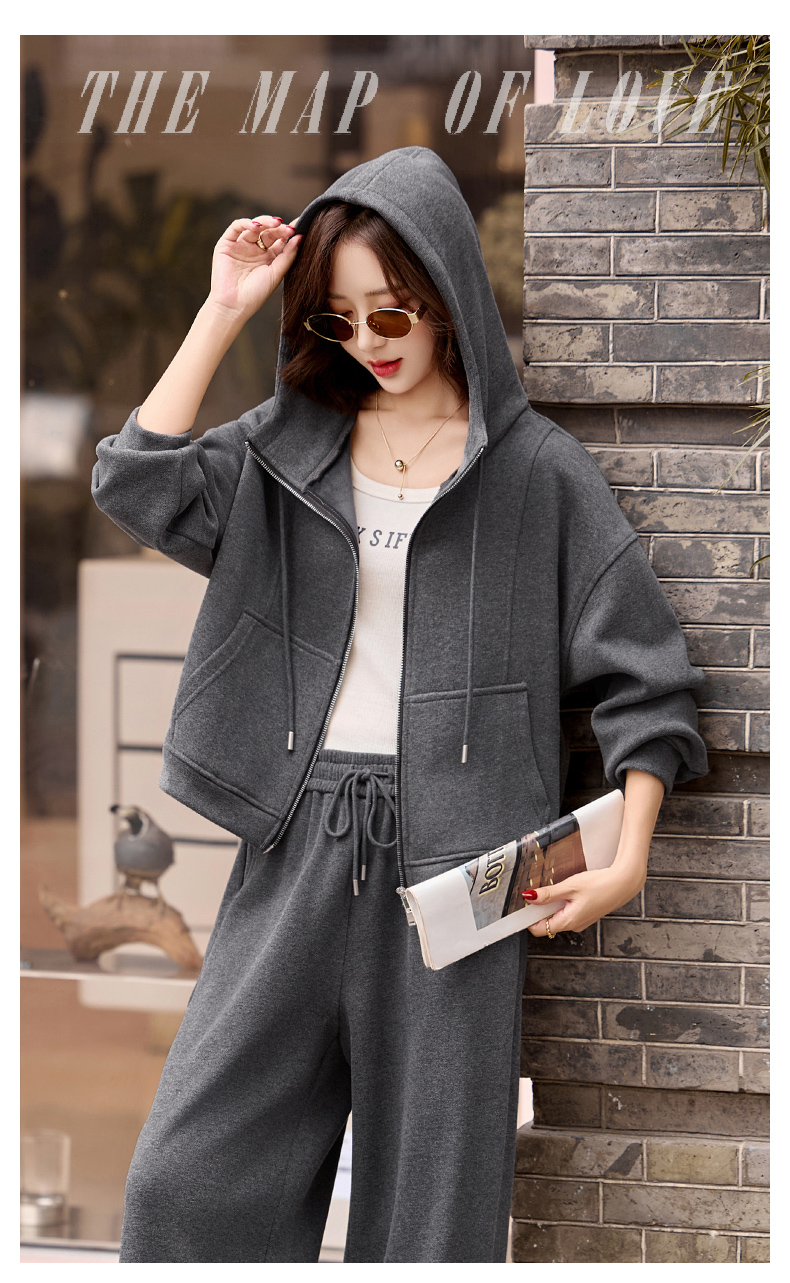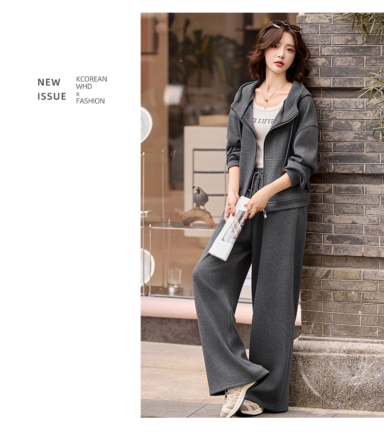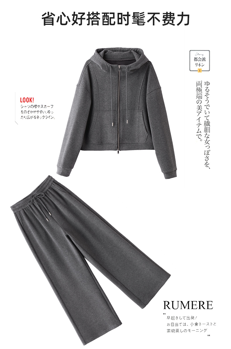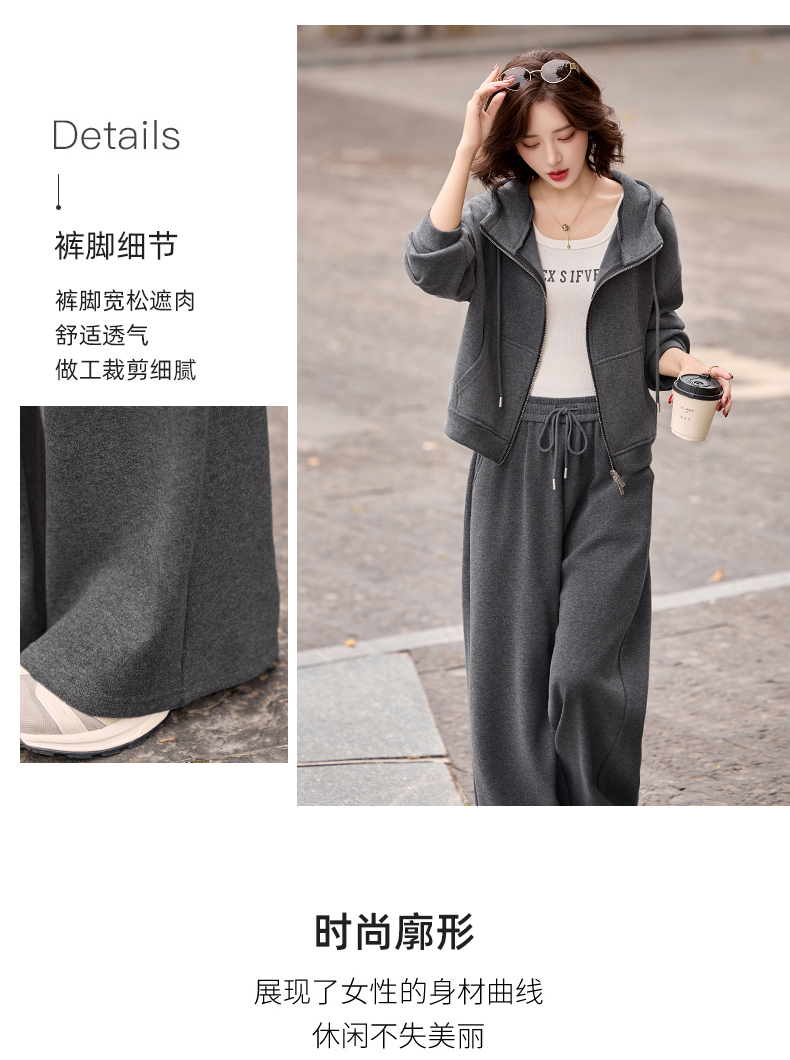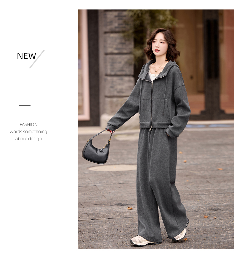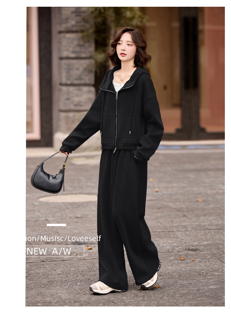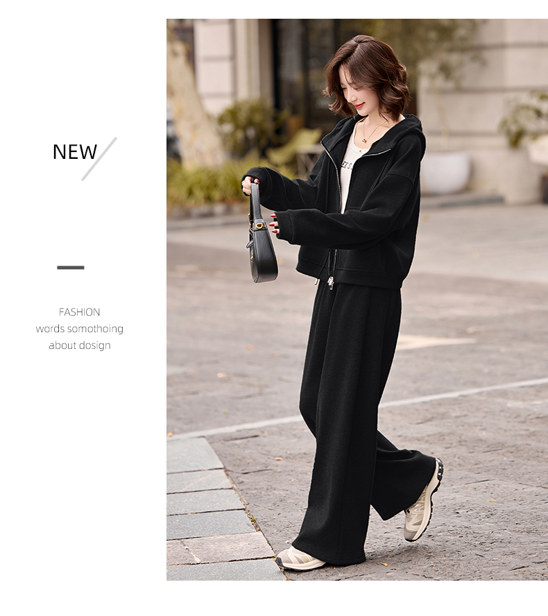 休闲时尚运动连帽卫衣套装,松弛感宽松阔腿裤两件套HR-GJC2599