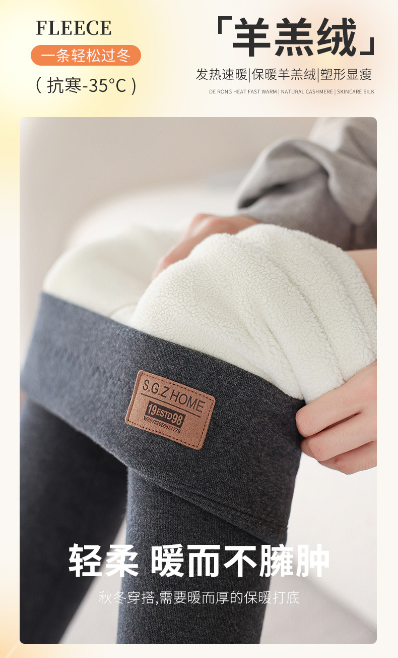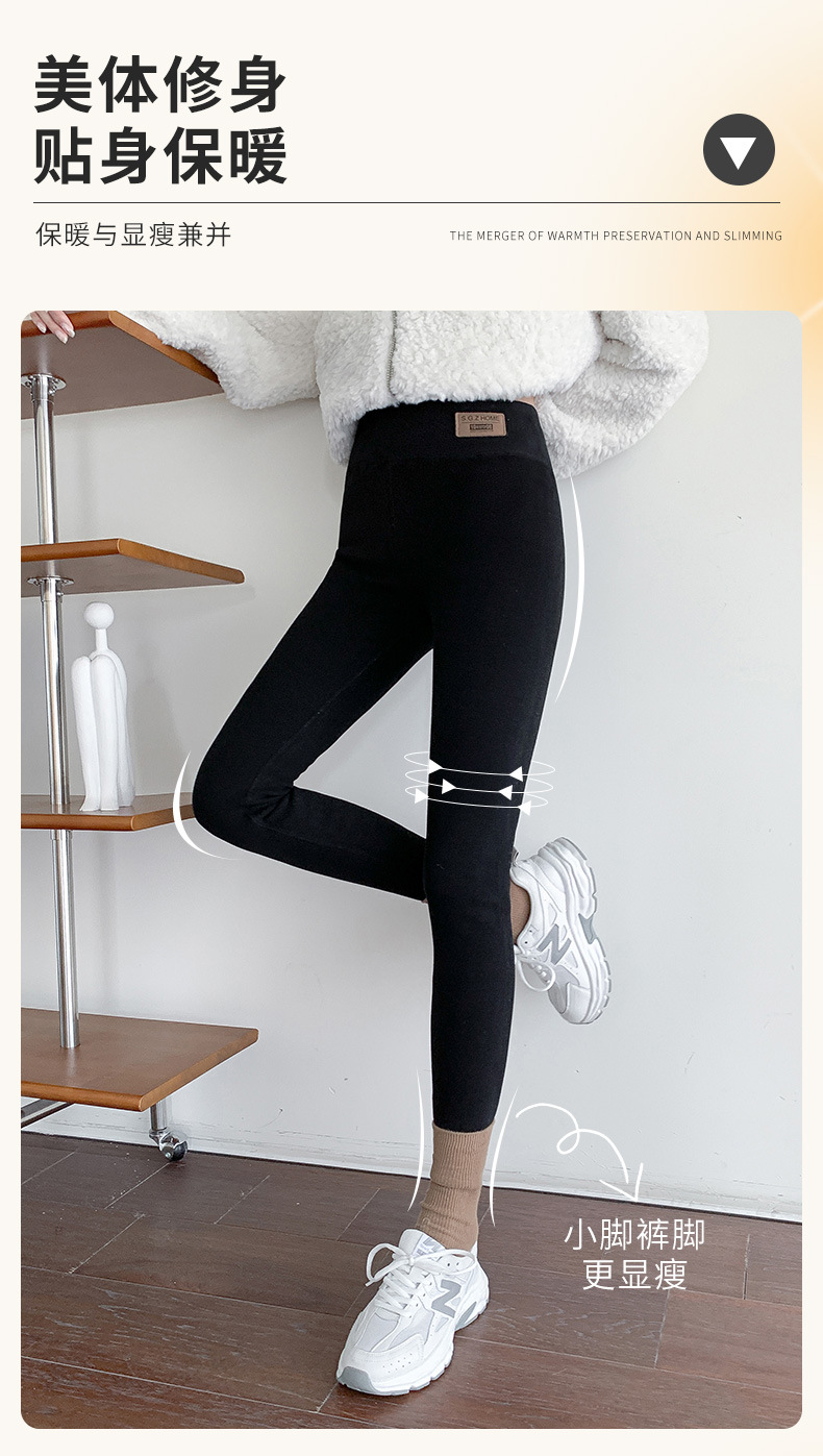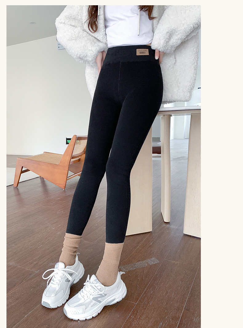 雀说长加绒加厚打底裤女秋冬外穿高腰羊羔绒大码特厚保暖纯棉裤ALK1069