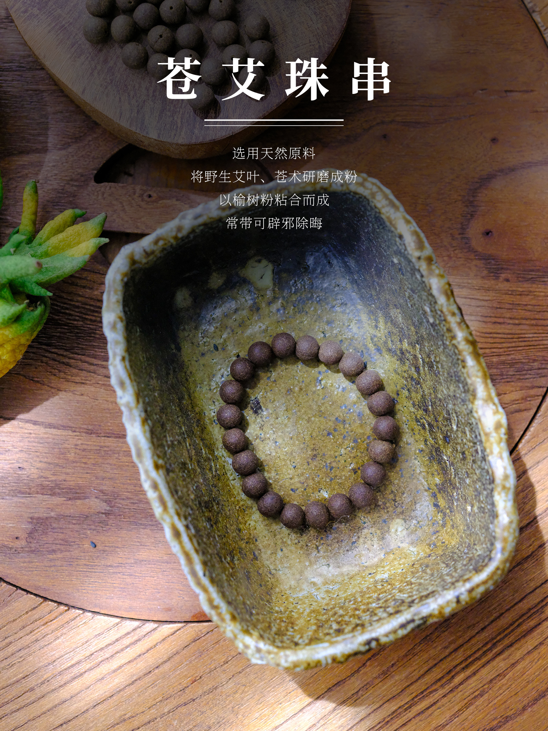 苍艾手串 | 艾草苍术研磨成粉,以榆树皮粘合而成